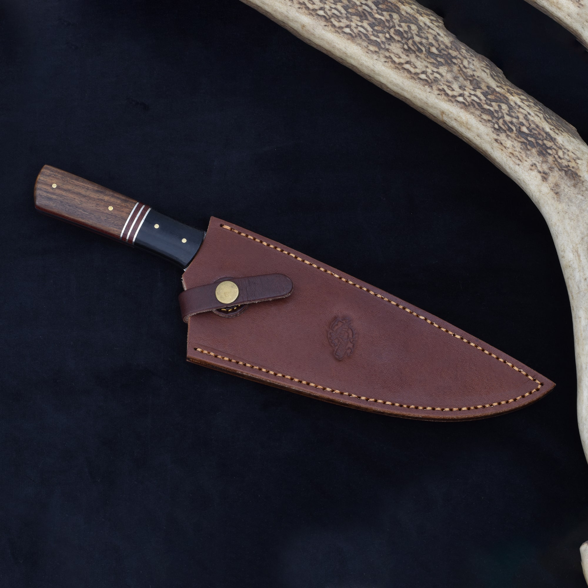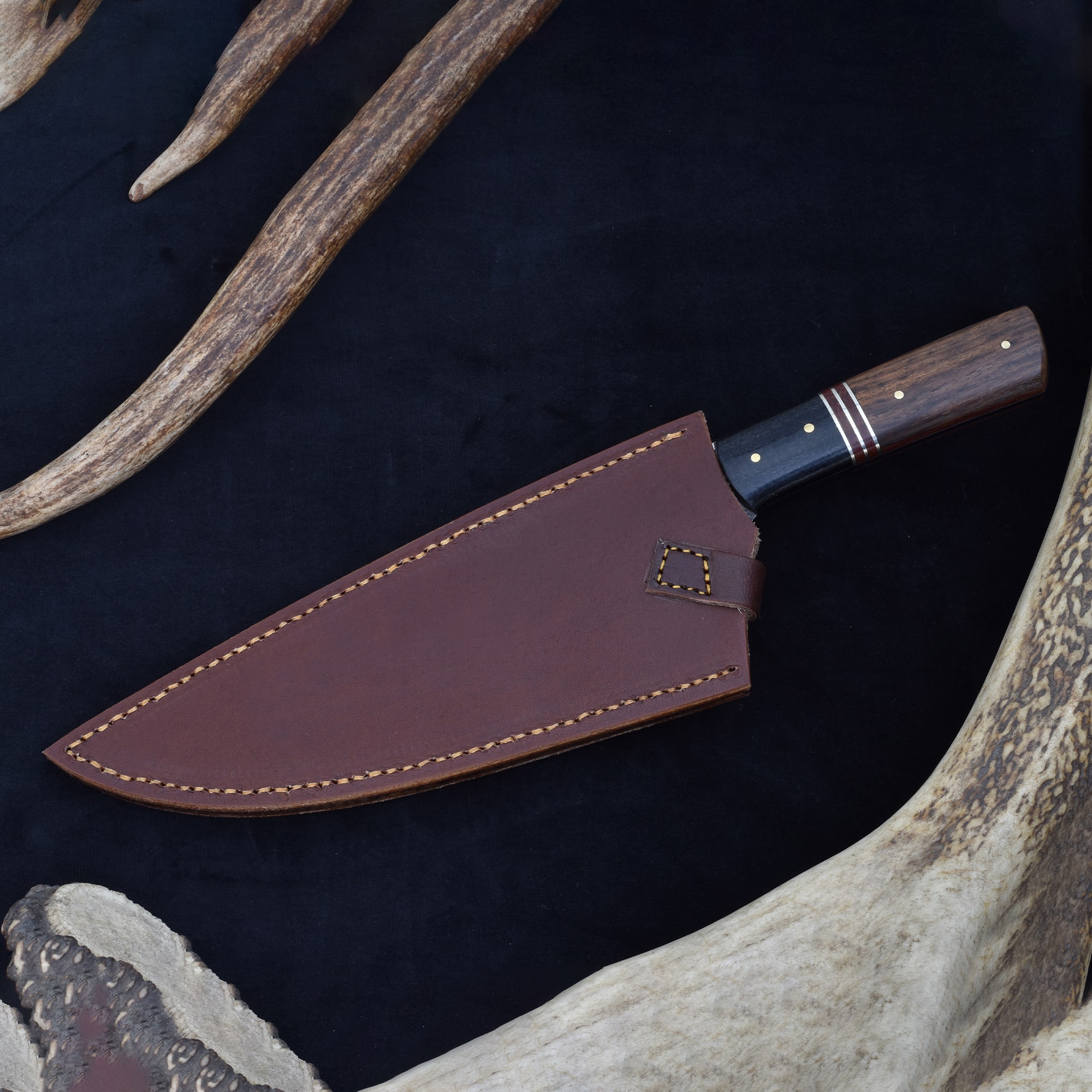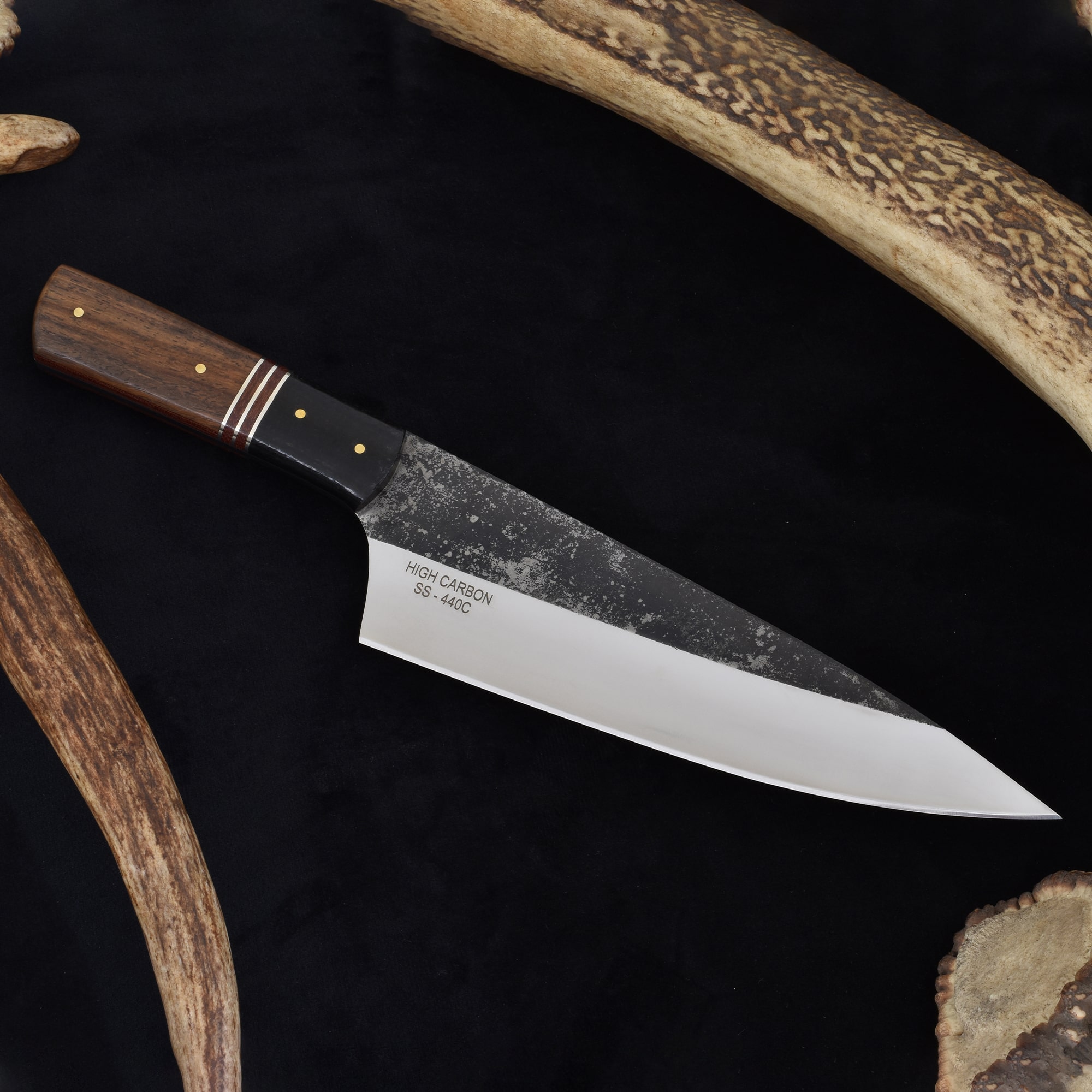 Engineered for balance and beauty, this professional stainless steel chef knife features a stabilized rosewood handle with elegant nickel silver accents. It’s ideal for chefs who demand precision and aesthetics. Whether you're prepping vegetables or carving meat, this high-carbon stainless steel kitchen knife ensures every cut is clean, controlled, and satisfying.