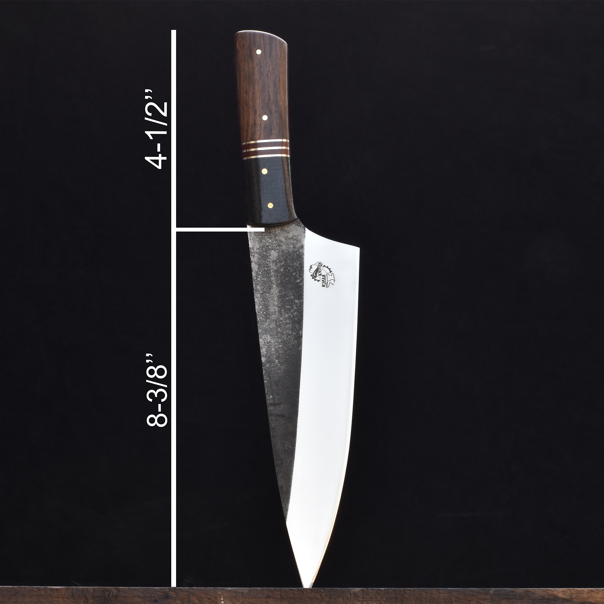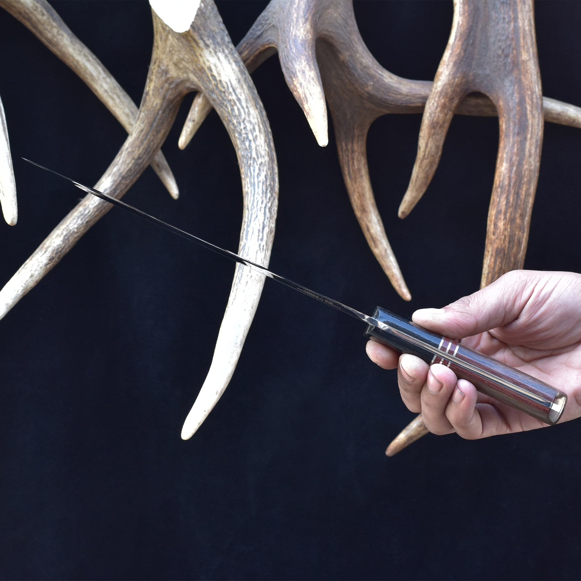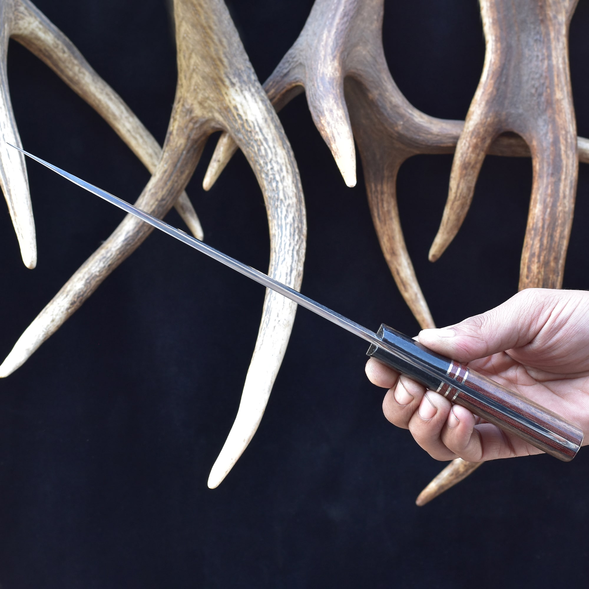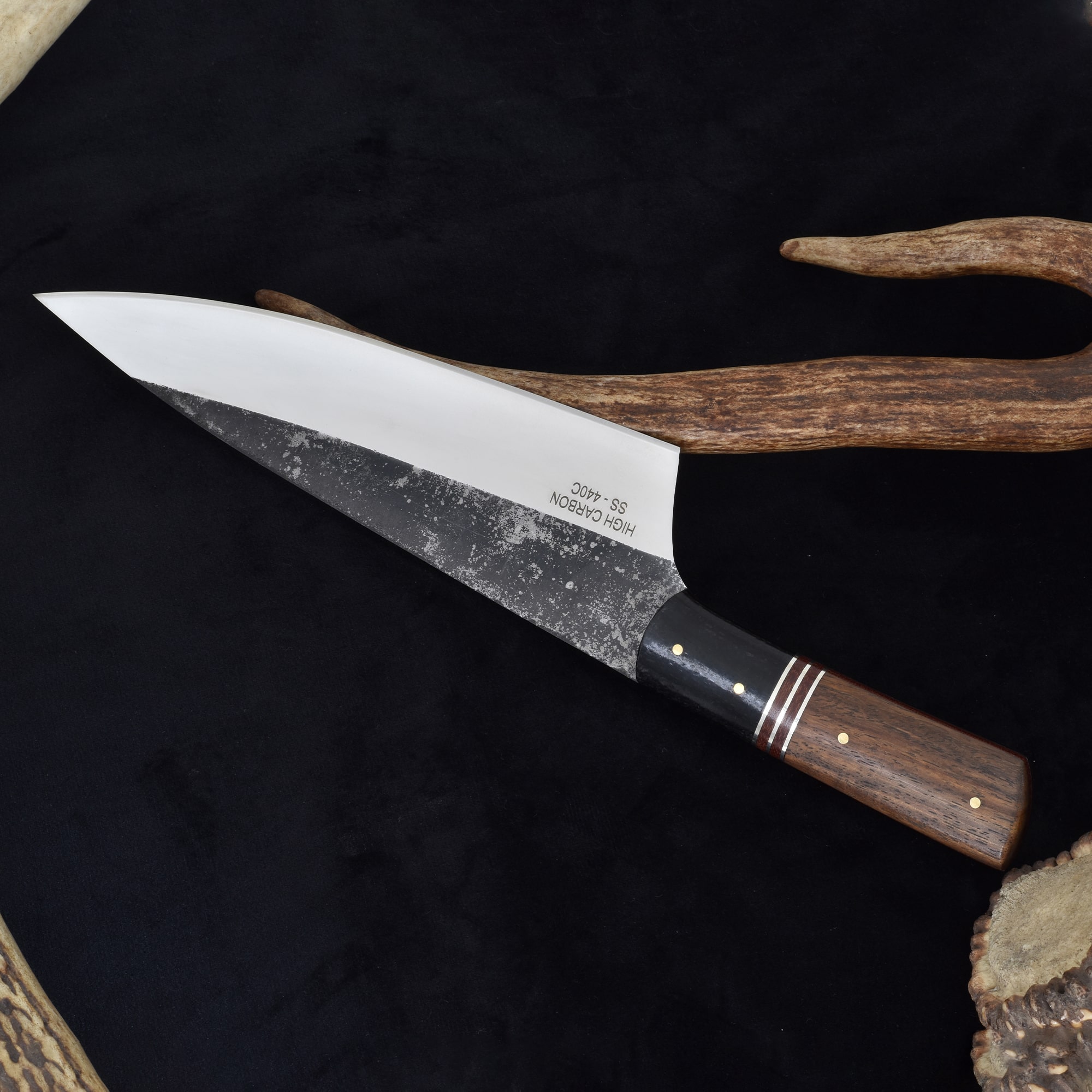 Engineered for balance and beauty, this professional stainless steel chef knife features a stabilized rosewood handle with elegant nickel silver accents. It’s ideal for chefs who demand precision and aesthetics. Whether you're prepping vegetables or carving meat, this high-carbon stainless steel kitchen knife ensures every cut is clean, controlled, and satisfying.
