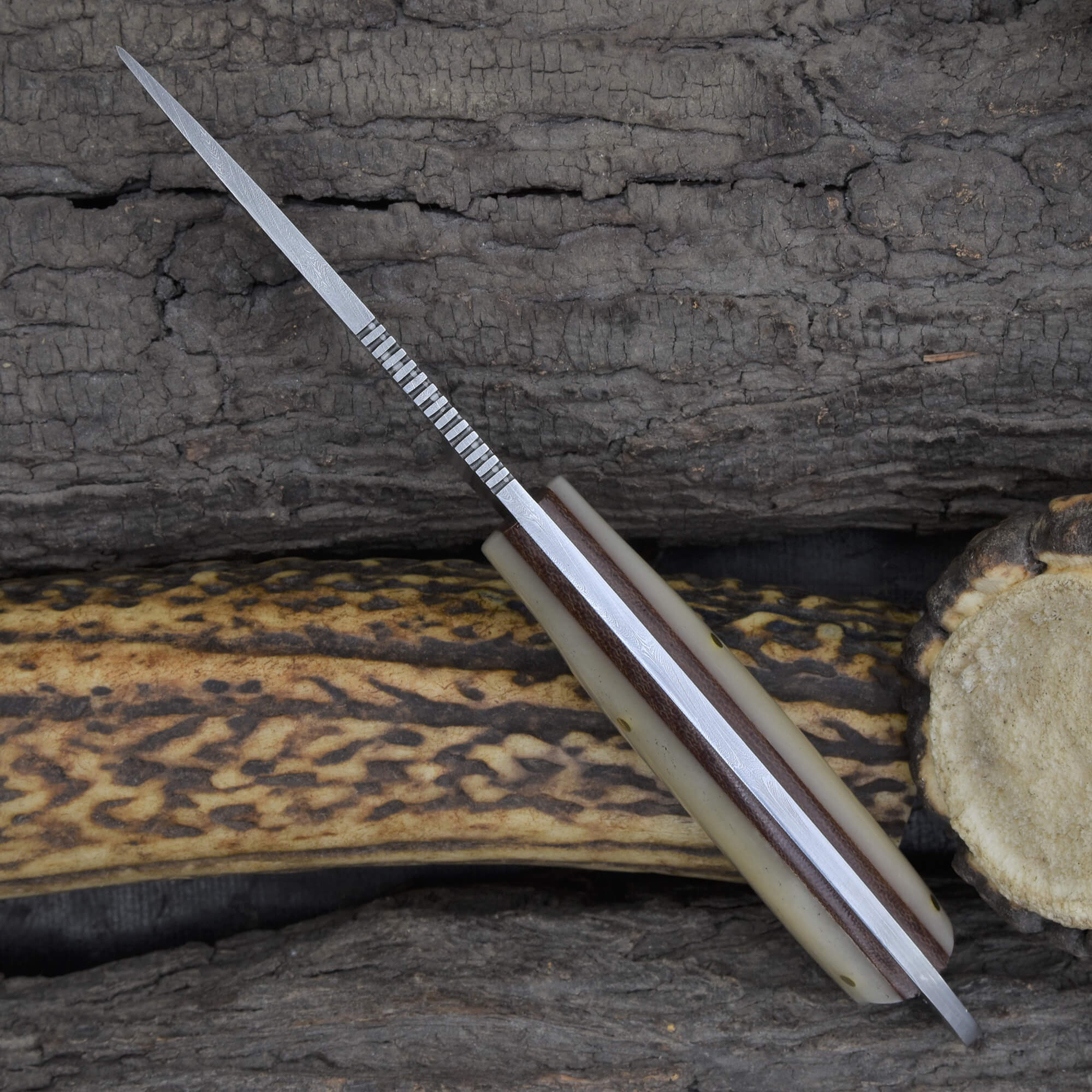 These knives are razor sharp. I have bought many, even Benchmade knives that were not as sharp right out of the box that needed sharpening. Genuine Damascus steel, over 200-240 folds/layers I believe, it’s in the descriptions. Easily the best bang for the buck. The owner personally overseas the process of production and the workers. I called the company a few times and I have only great things to say about answering my question. If you would like to spend more money you can but in the end you may but these are great ultra hi quality full tang construction knives. If you spend more on a different brand you are getting the same steel if selected wisely when you do the research. Same, same. Spending more is not getting more in this case. Unless you are looking for rare gold or silver or carbon fiber or other types of handles. Knives Ranch has lots of options. So, try one and see for yourself. Just my honest opinion, I think they are a family-owned business and they stand behind their products. If this is your first or will become part of your collection and useful high quality well-made durable crafted knife you won’t go wrong and will certainly be pleased with your purchase. I was not paid to write this review. I just noticed that there are not many on their page as they have some other venders that they sell in partnership with. Take care to read the instructions if this one is your first.