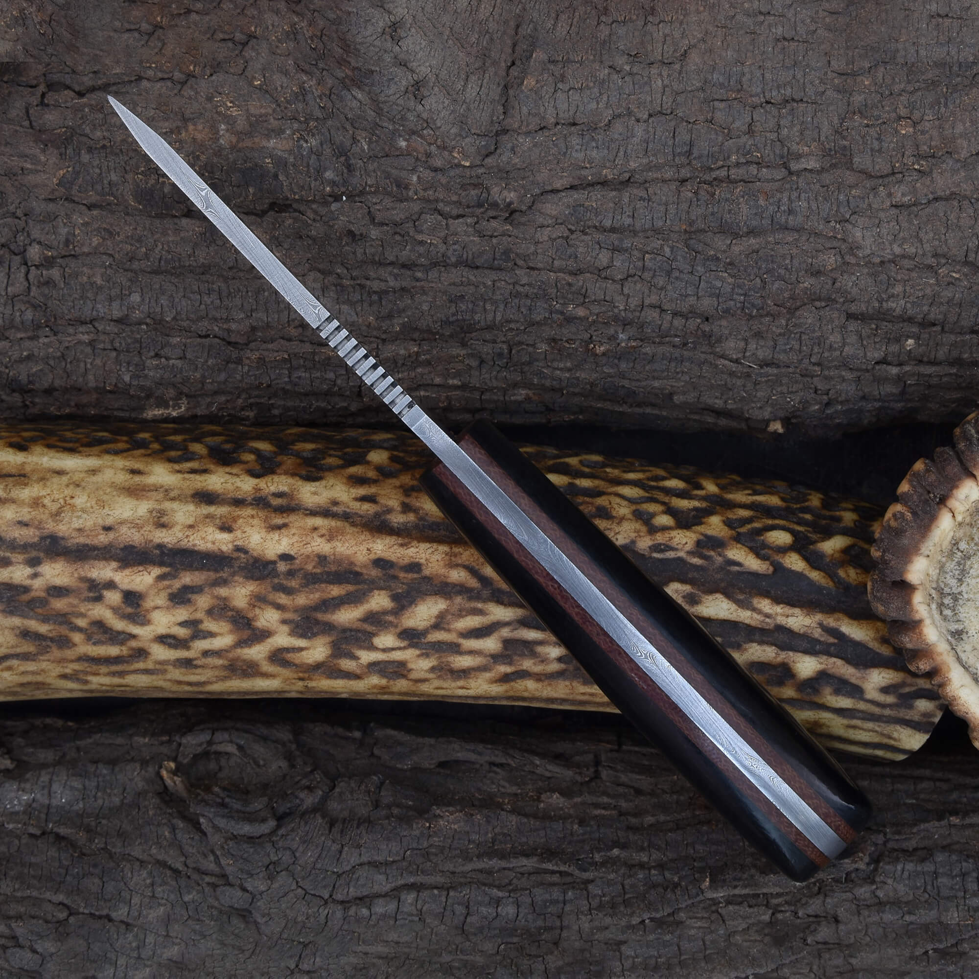 Whether you're slicing rope or shaping wood, this Damascus Knife offers control and comfort in a compact profile. A great addition to any toolkit, this Horizontal Carry Damascus EDC Knife combines traditional forging with modern utility for field-ready results.