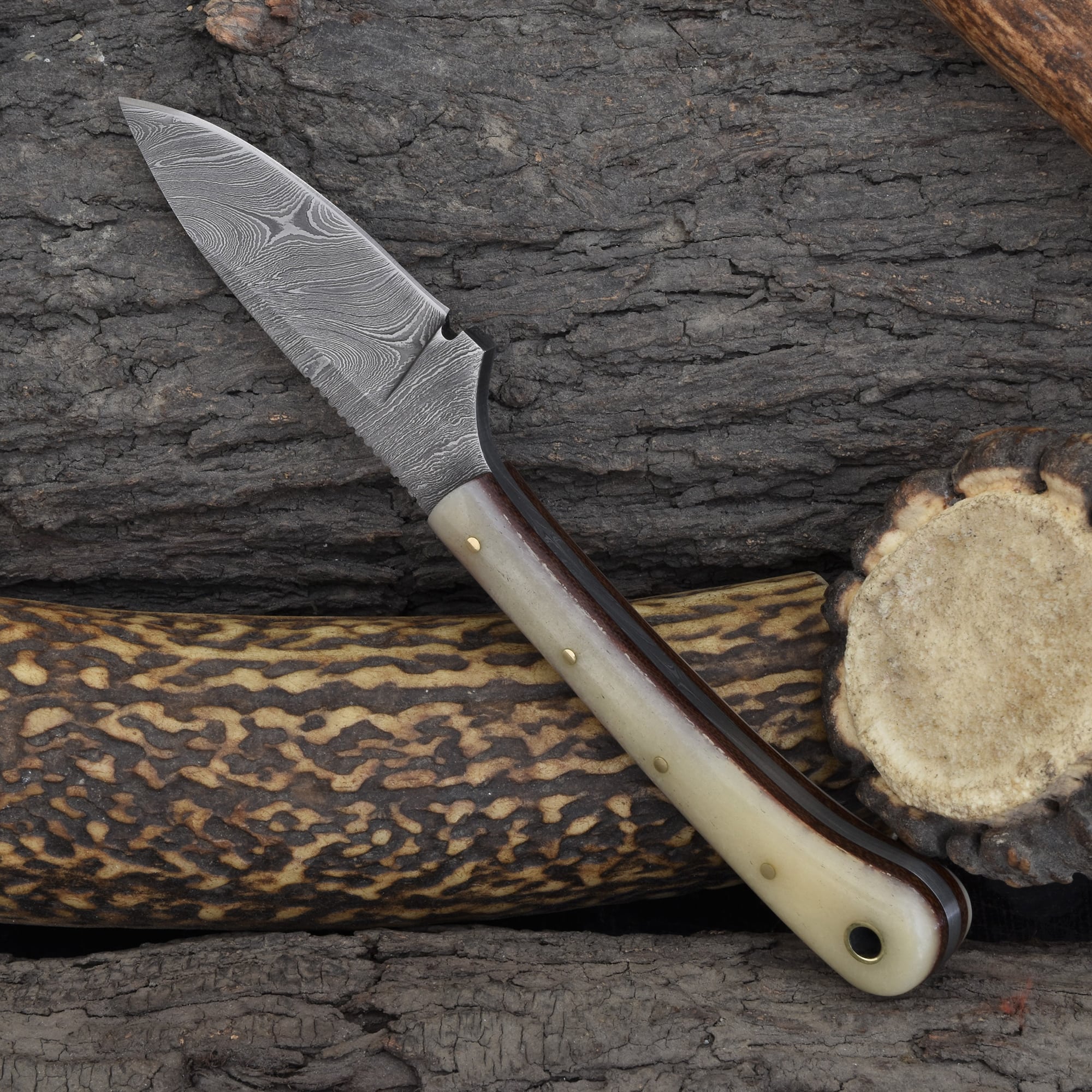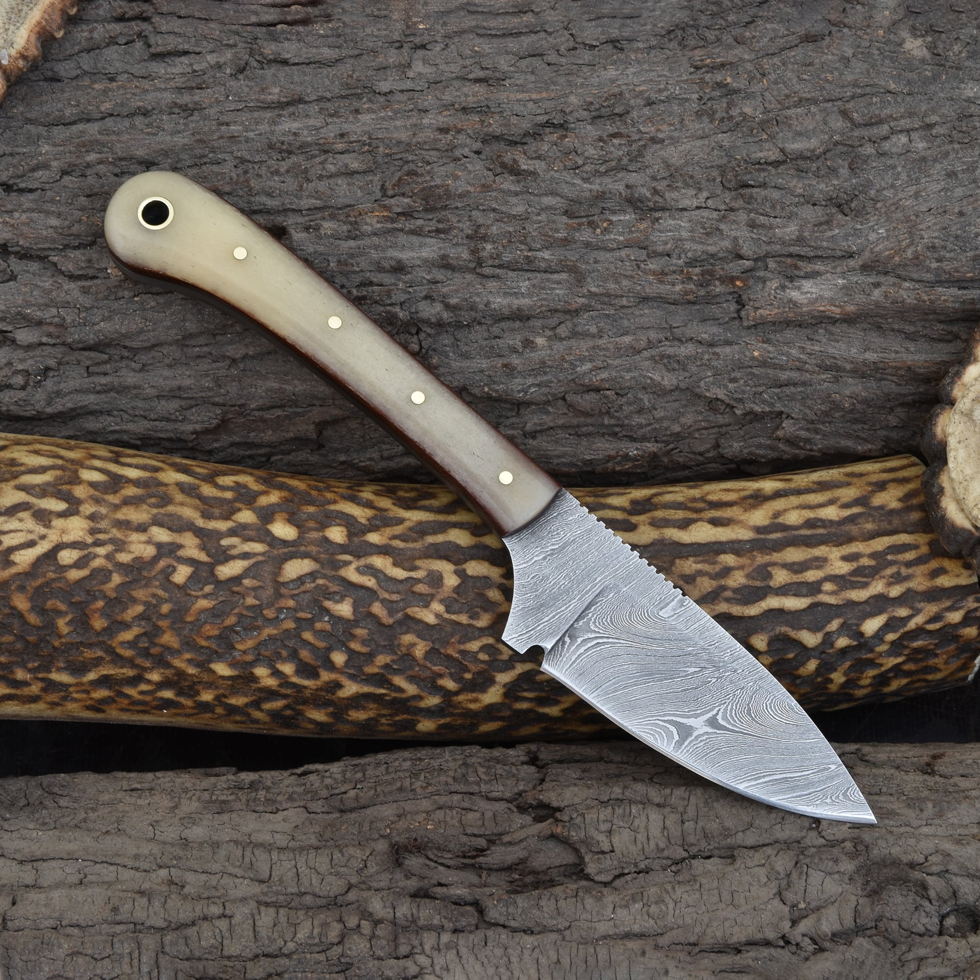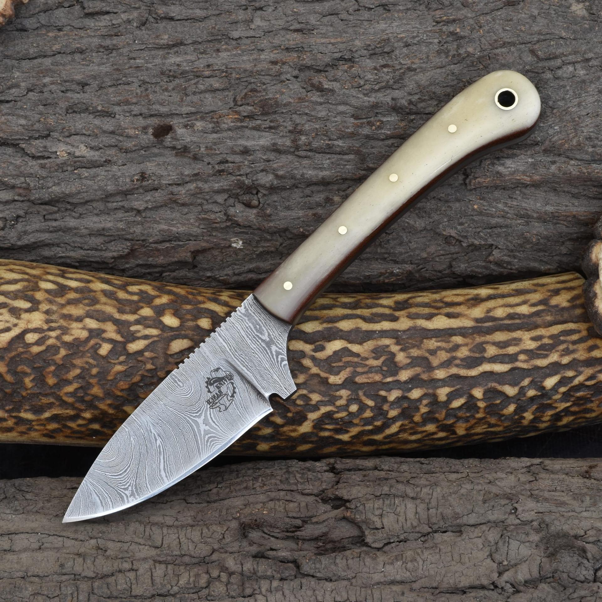Knives Ranch Compact Damascus Steel Knife with Cattle Bone Handle