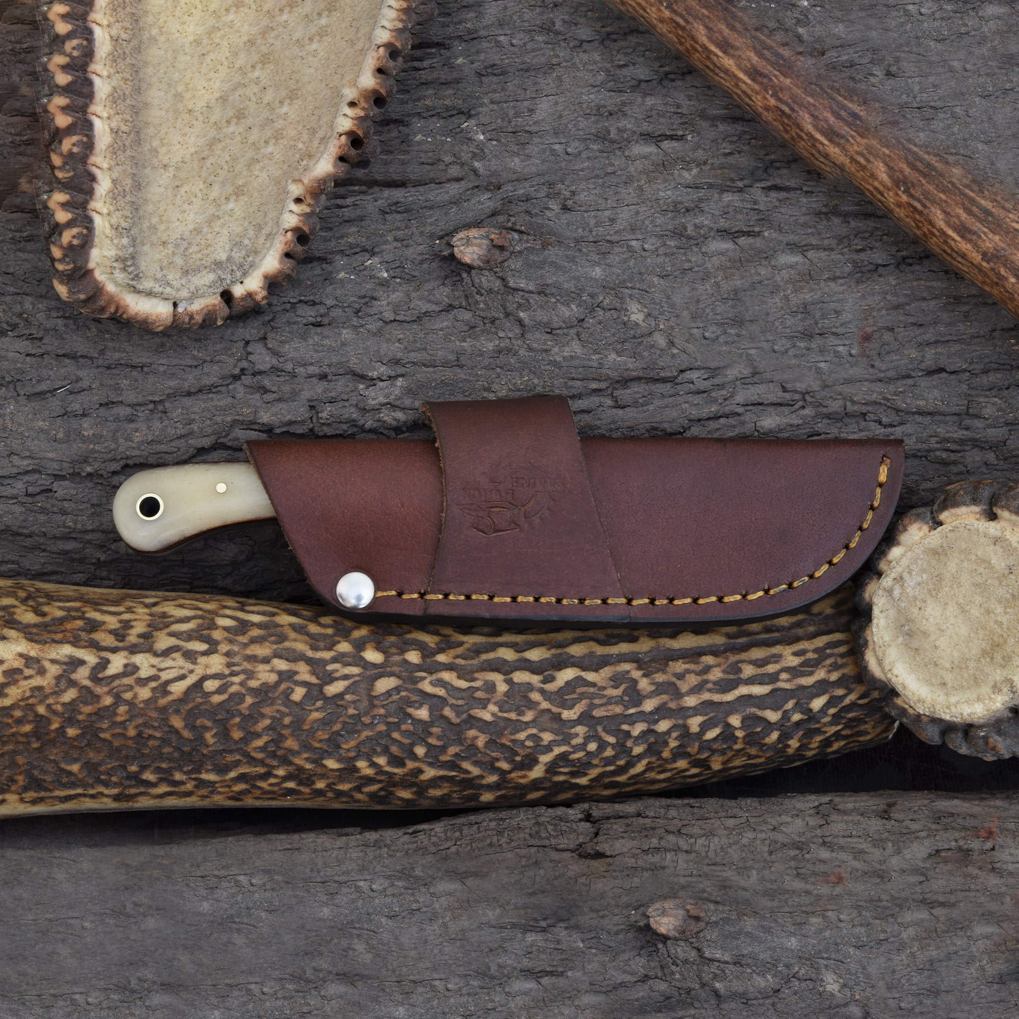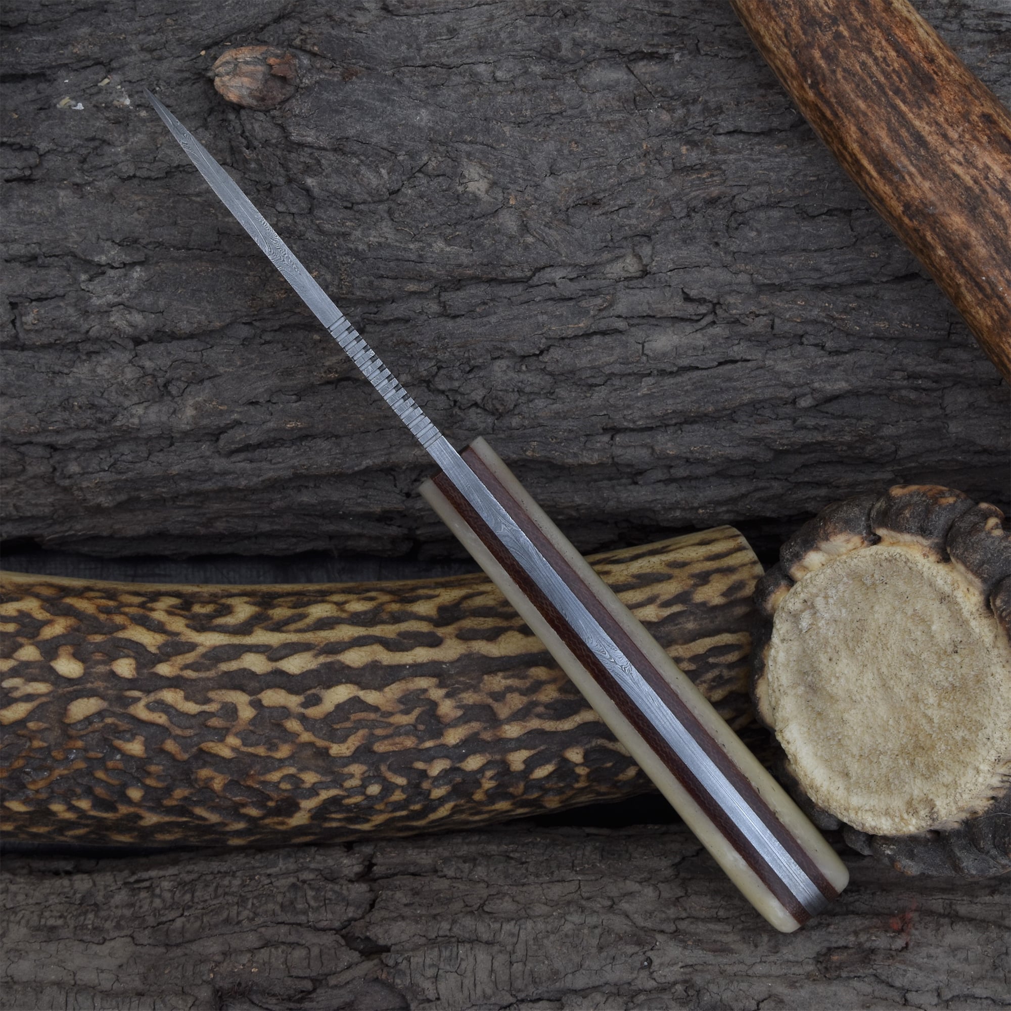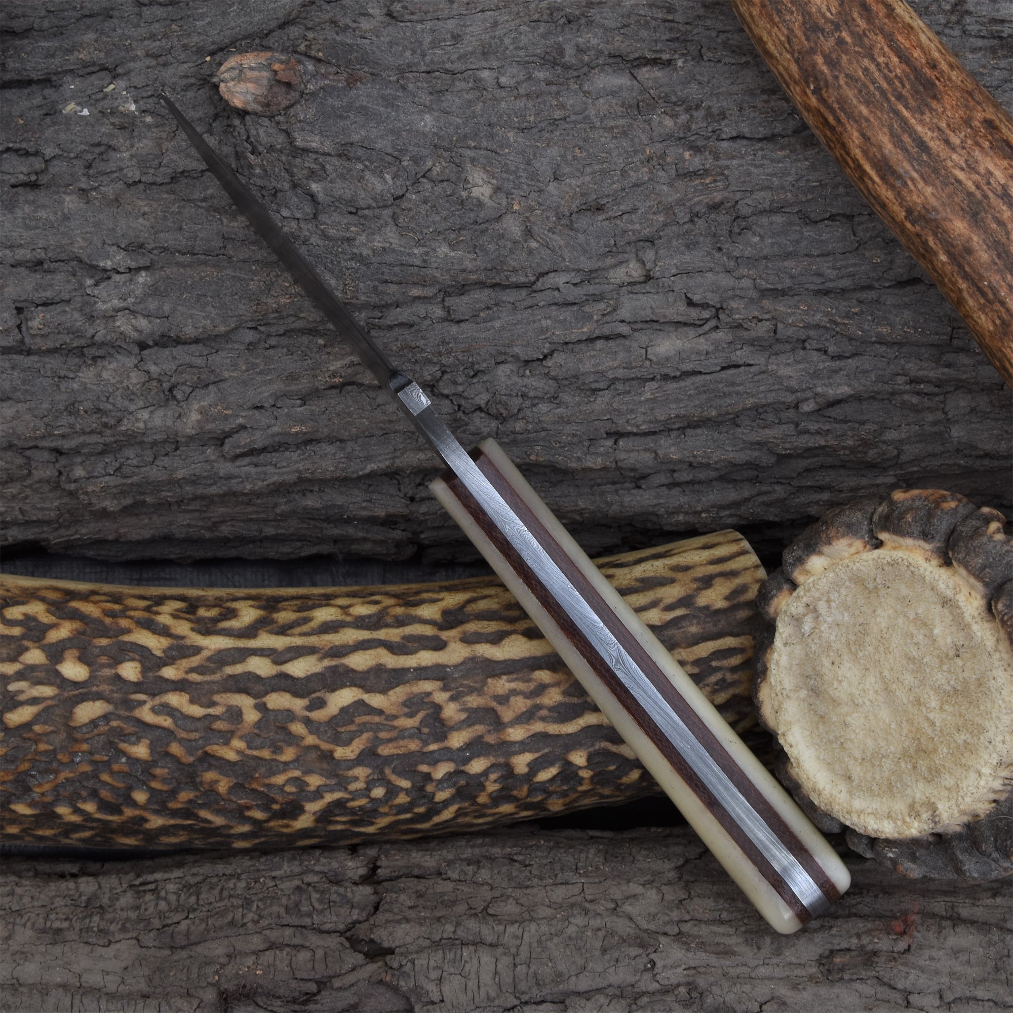 Knives Ranch Compact Damascus Steel Knife with Cattle Bone Handle