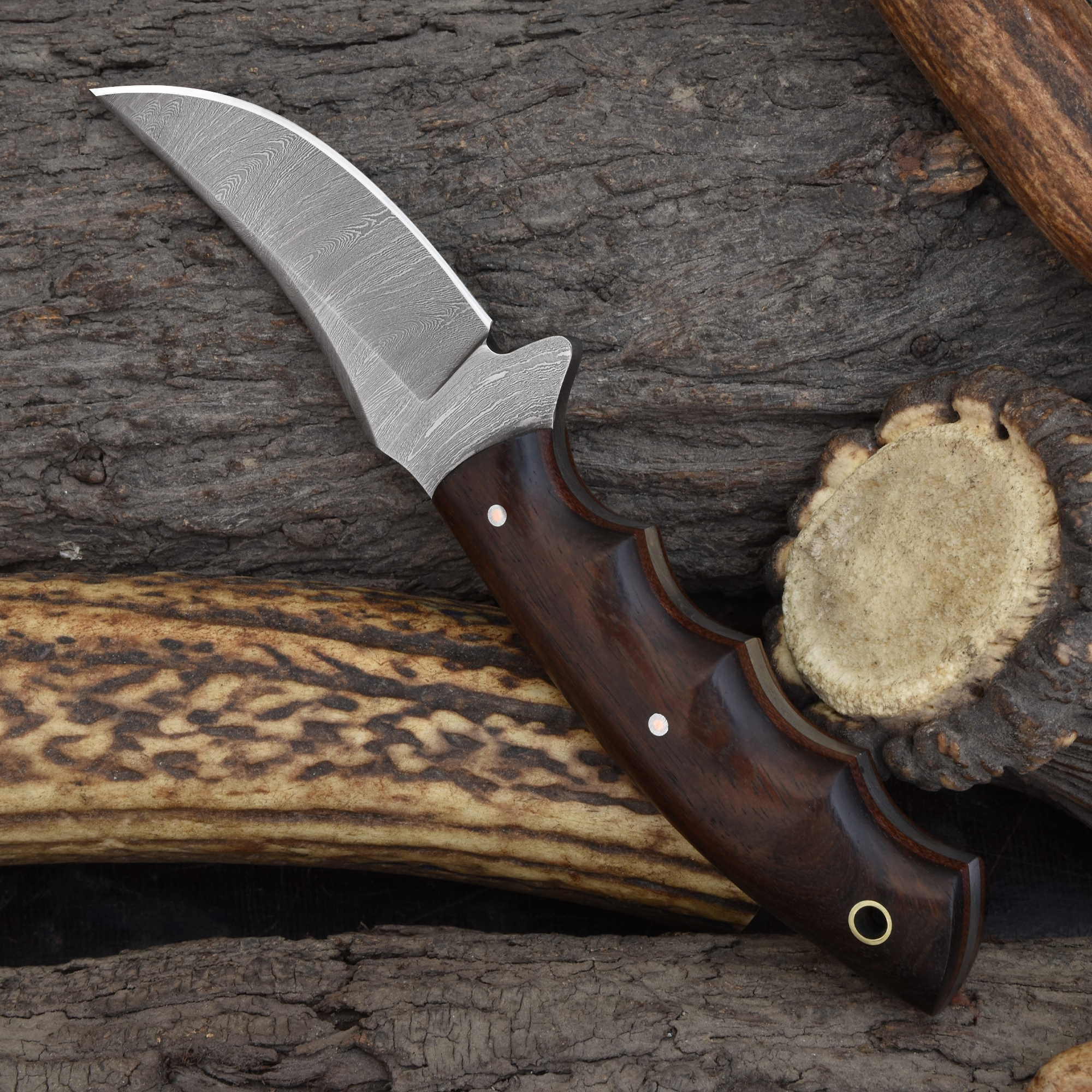 Knives Ranch Damascus Knife with Stabilized Rosewood Handle for Outdoor Use