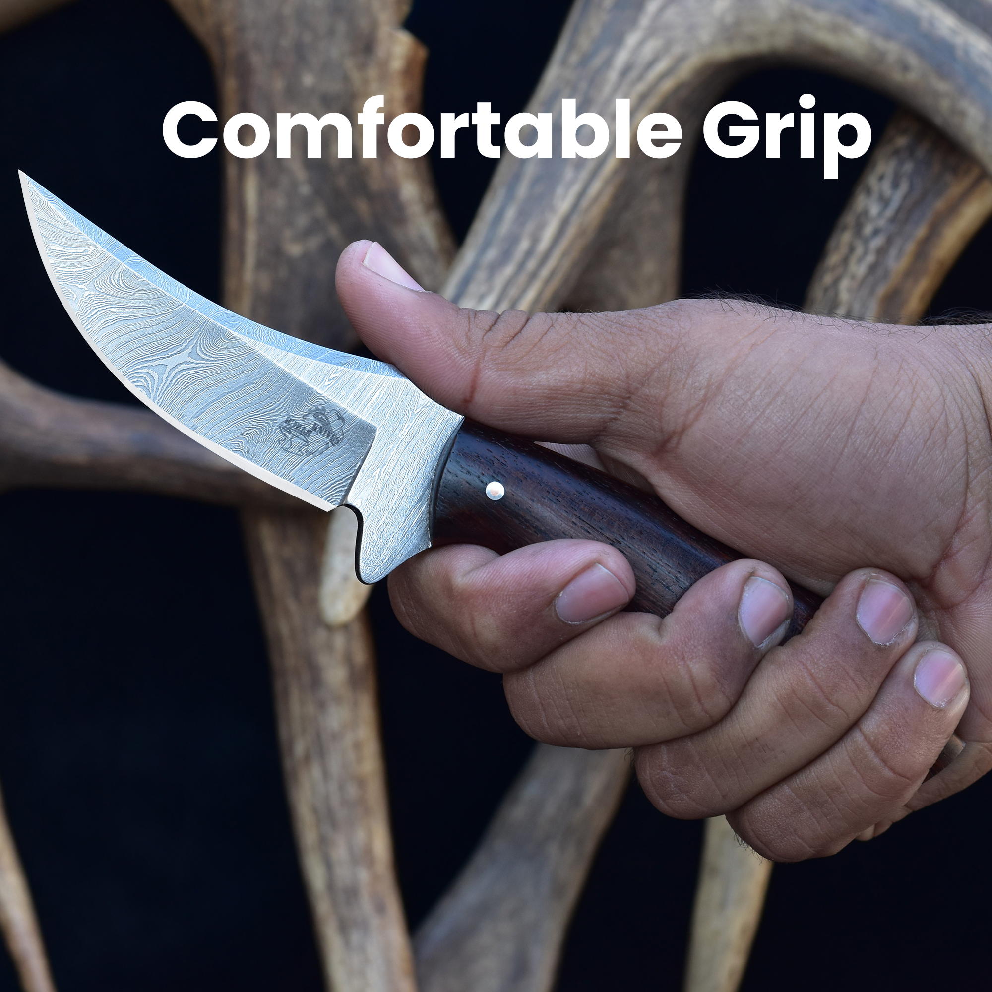 Ideal for hunters, campers, and knife collectors, this Rosewood Handle Damascus Knife offers precision cutting and ergonomic handling. The Dual Carry Damascus fixed-blade Knife is a versatile choice for both fieldwork and display.