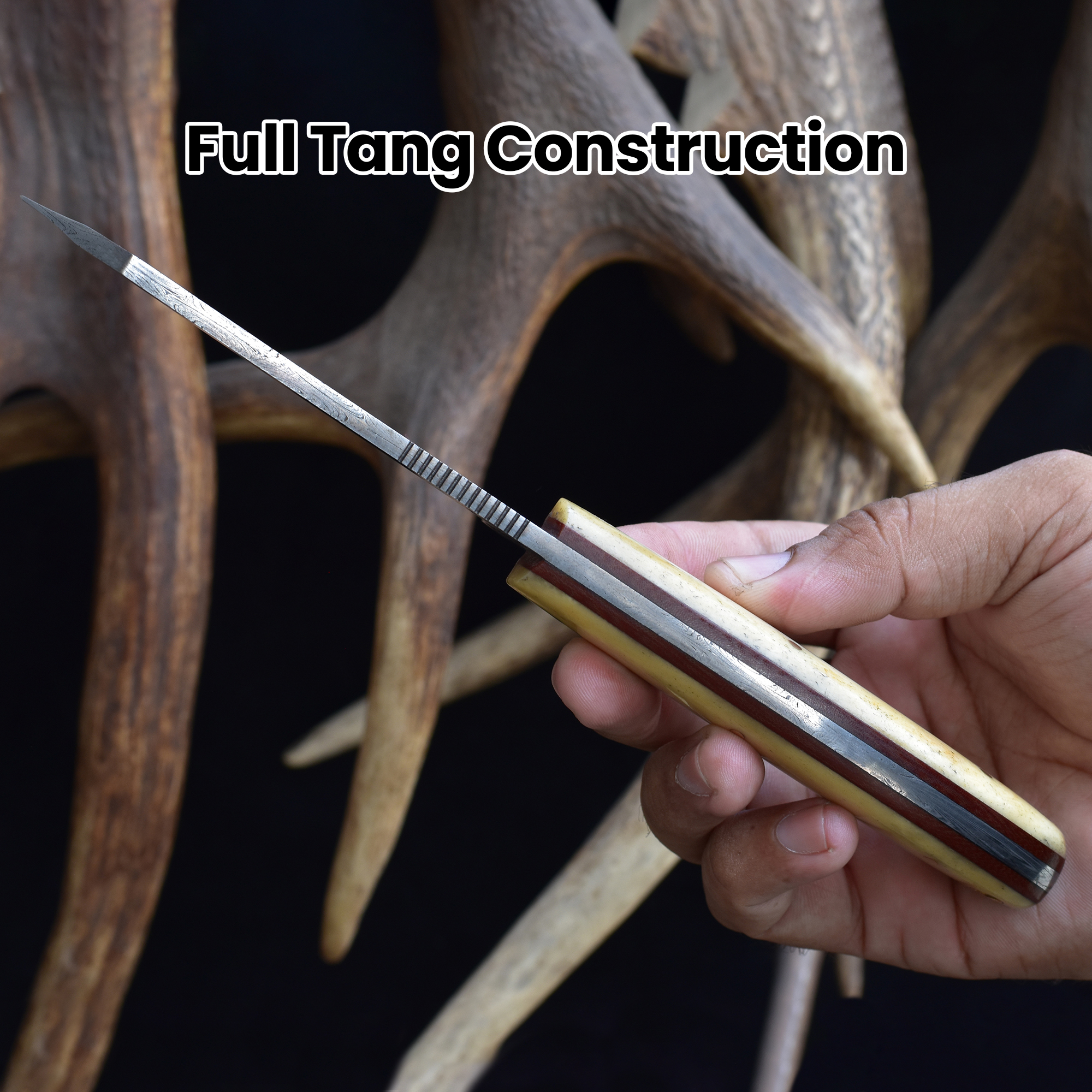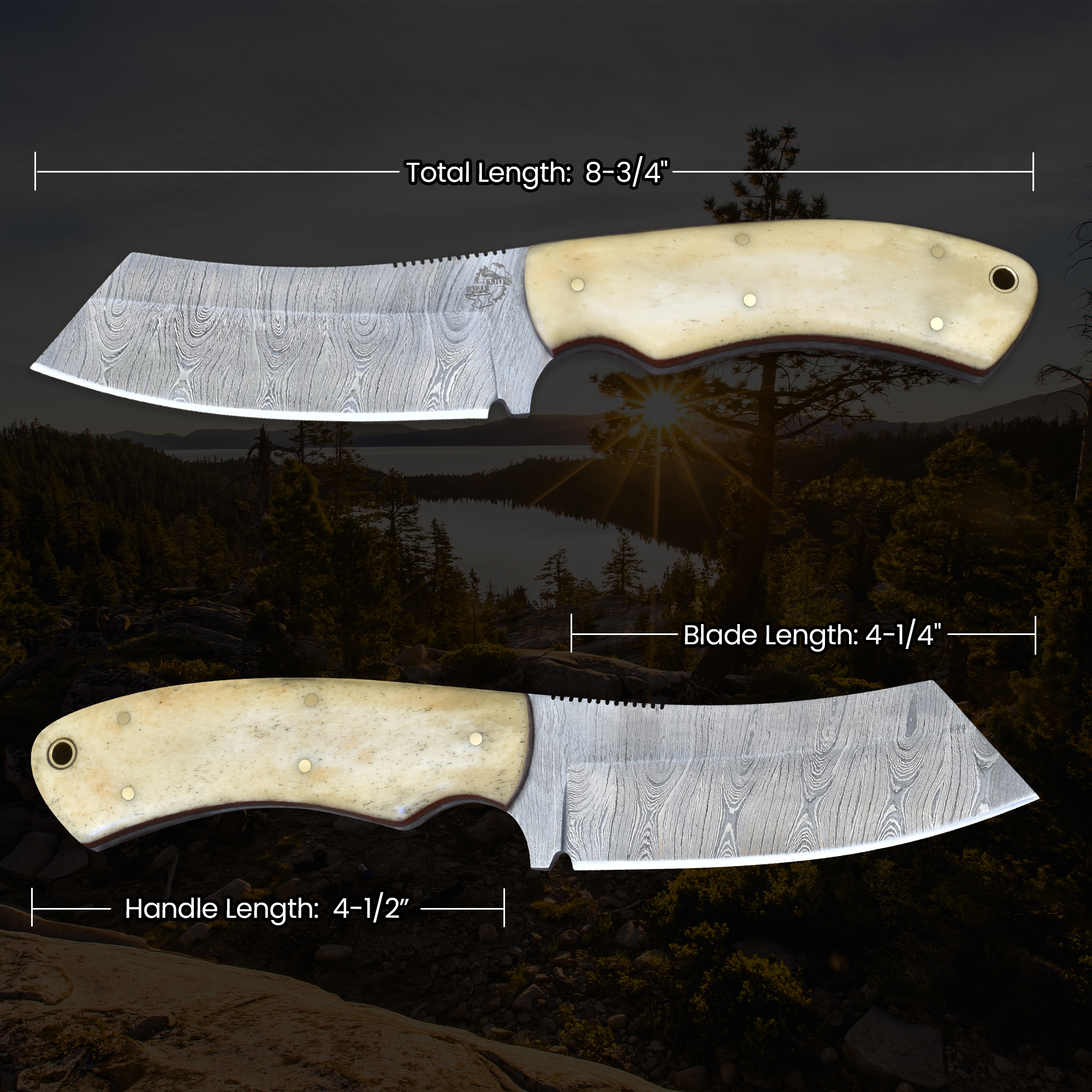 | Handle | Natural Cattle Bone with Brown Micarta Liner |