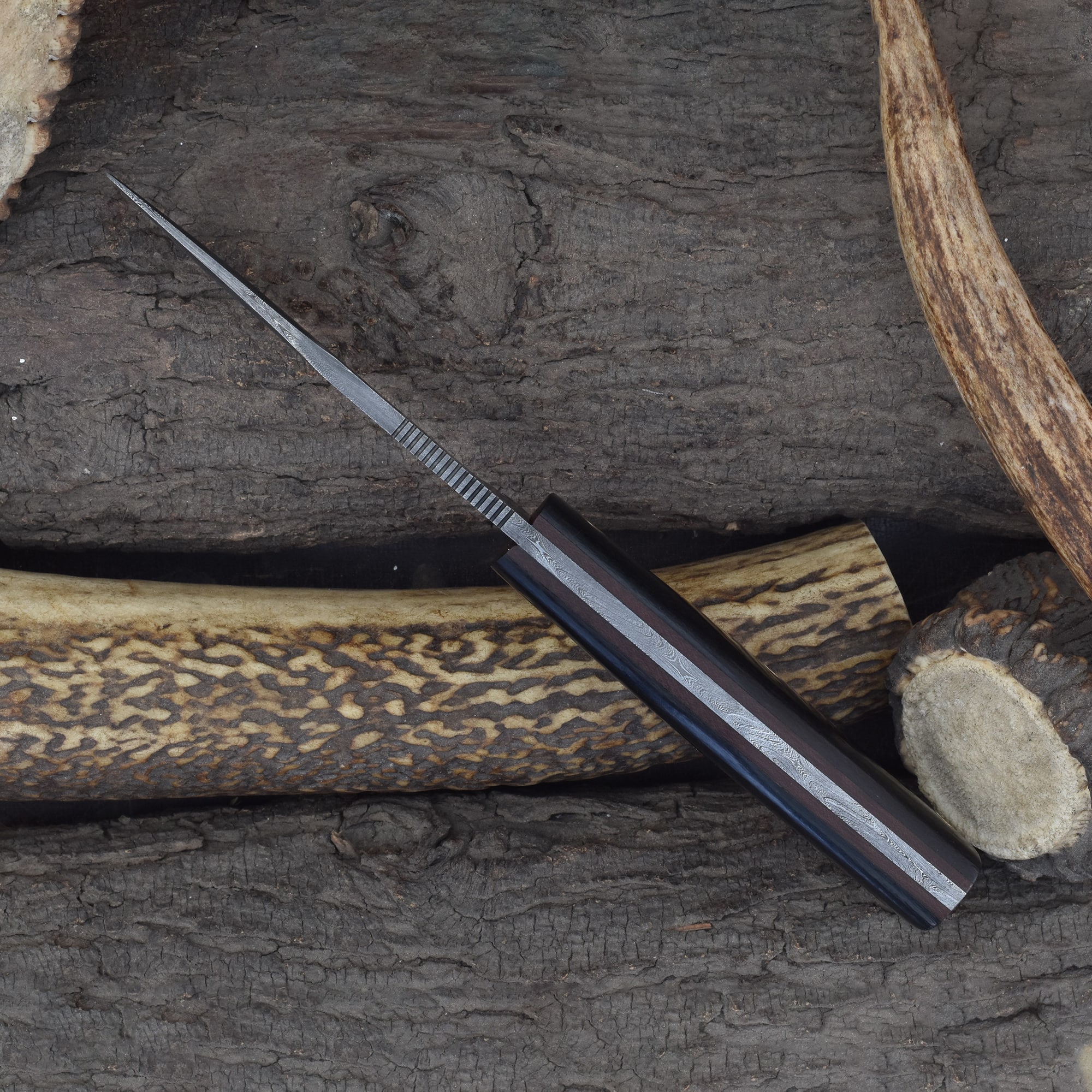 Knives Ranch Compact Damascus Steel Knife with Rosewood Handle
