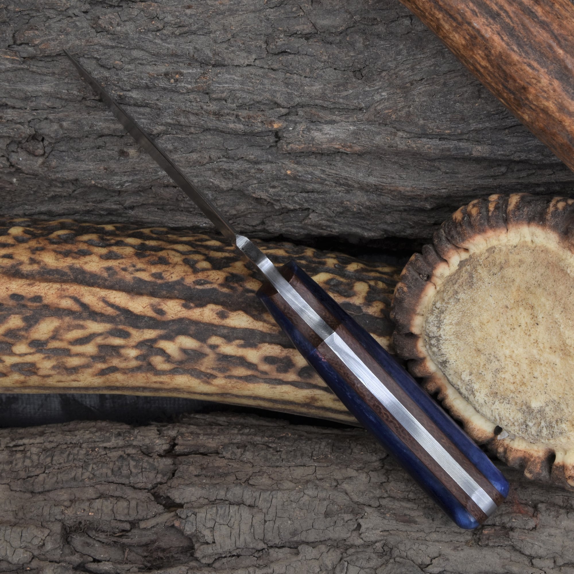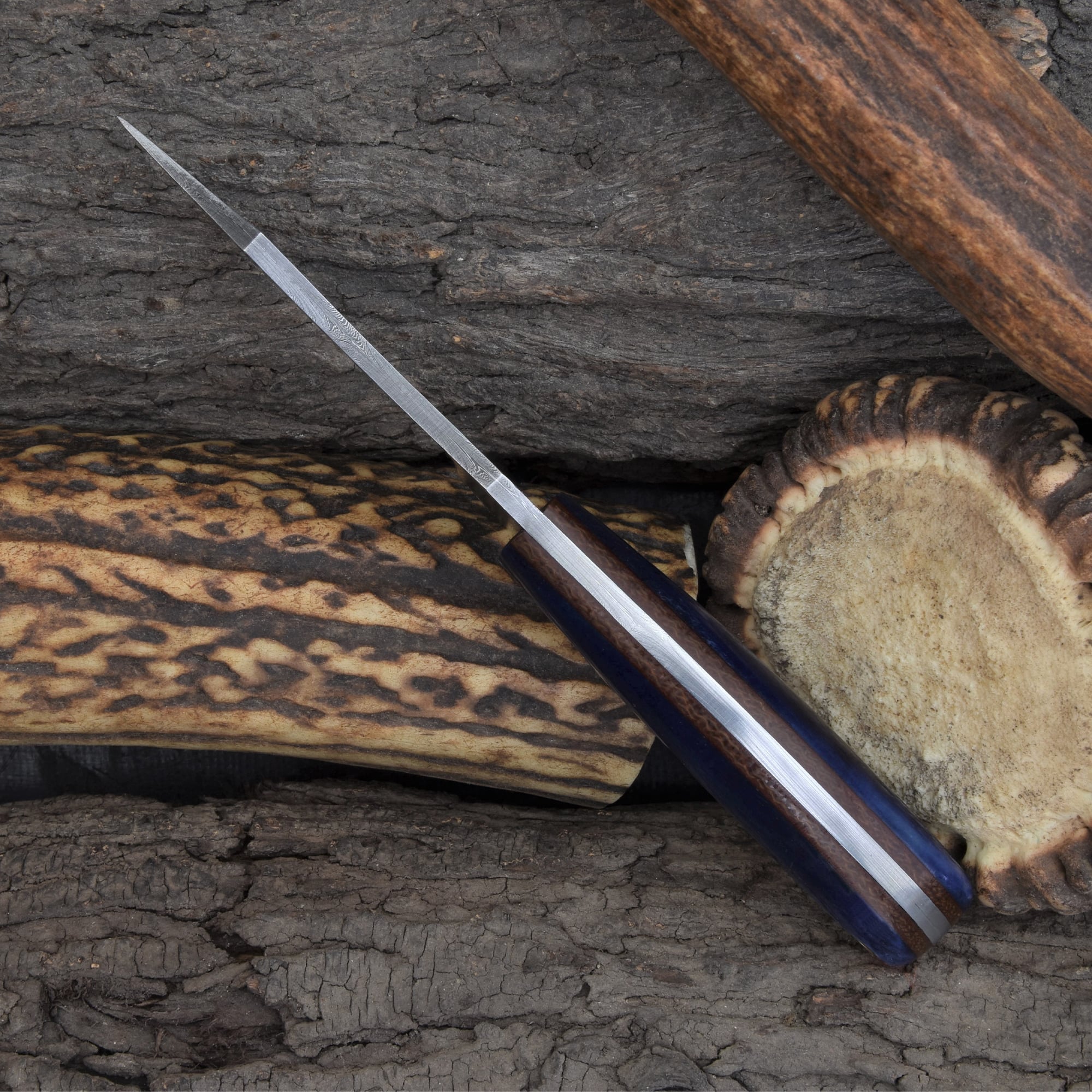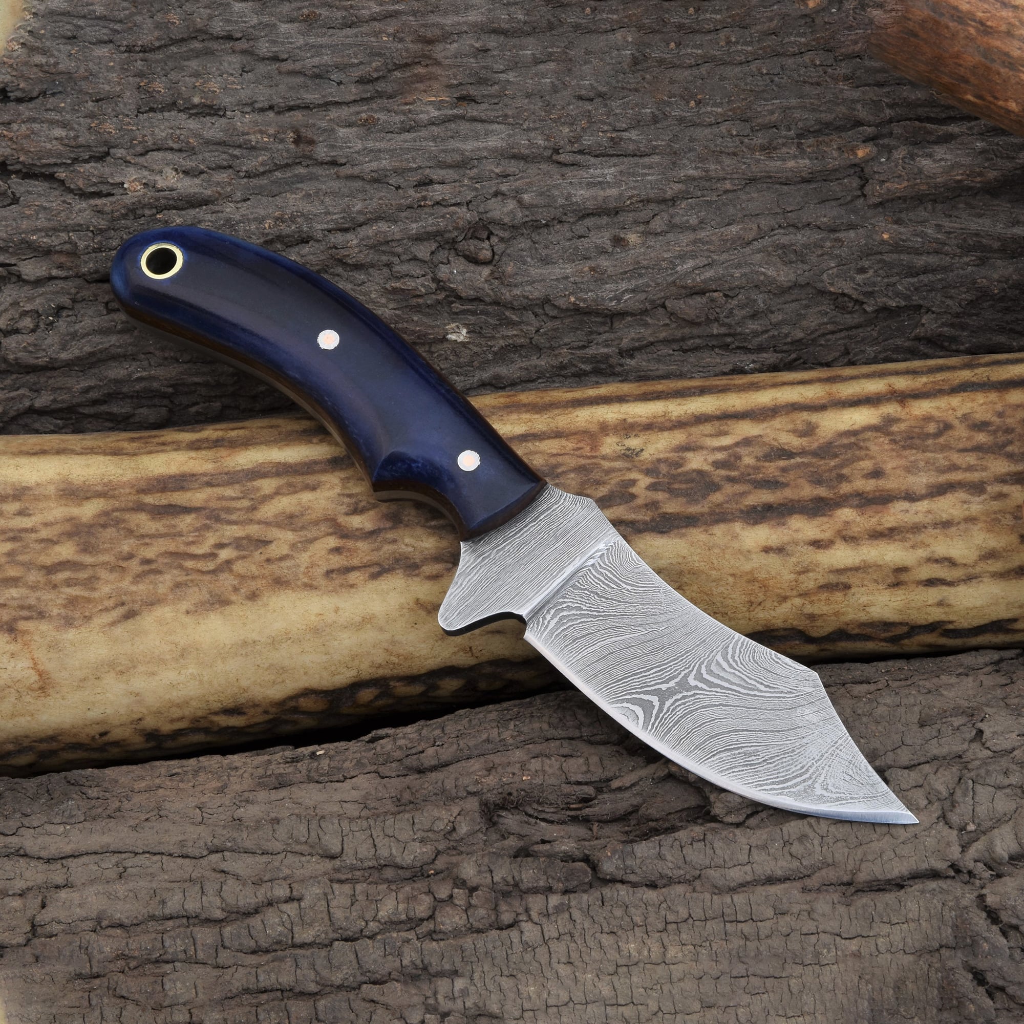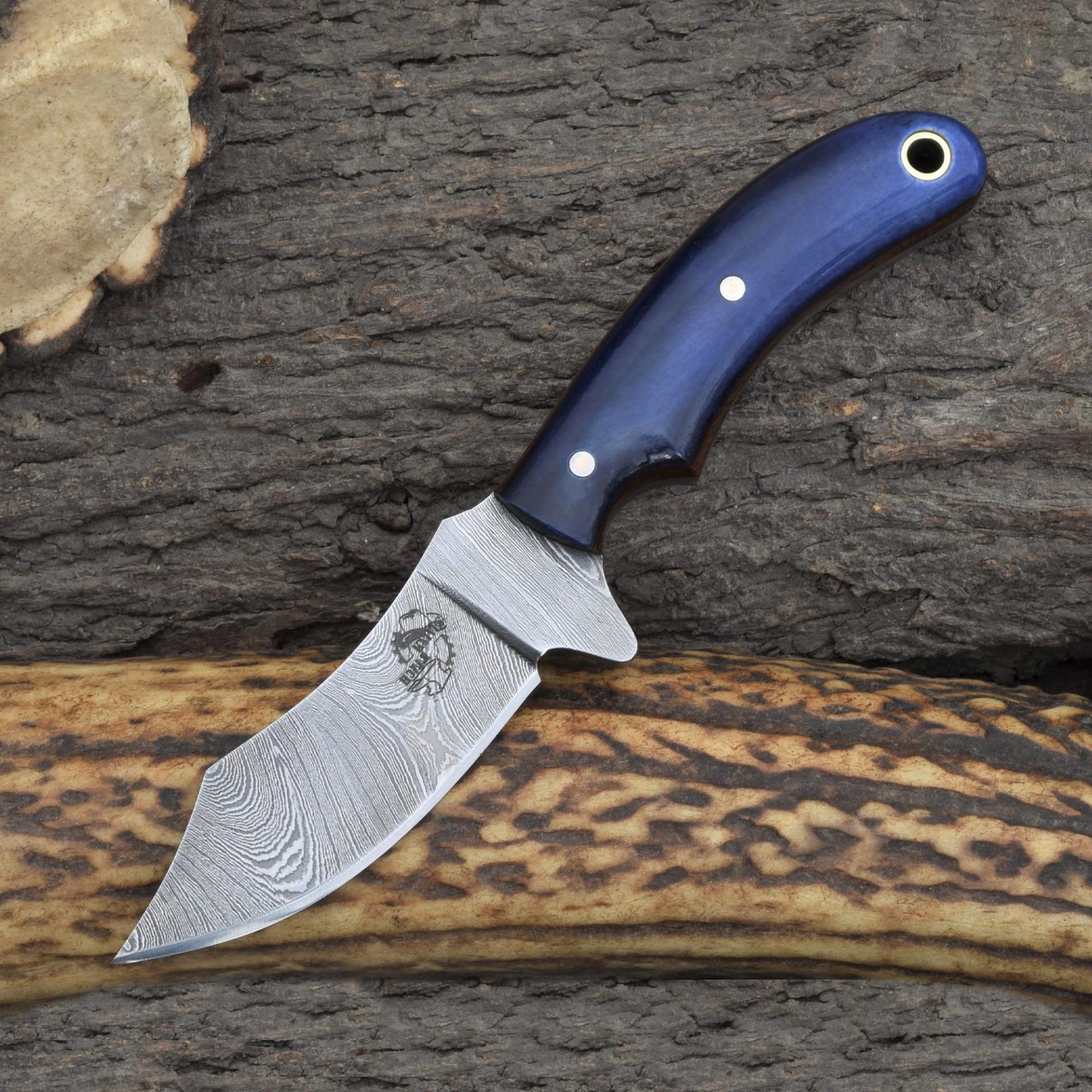 Knives Ranch Damascus Steel Knife with Blue Colored Cattle Bone Handle