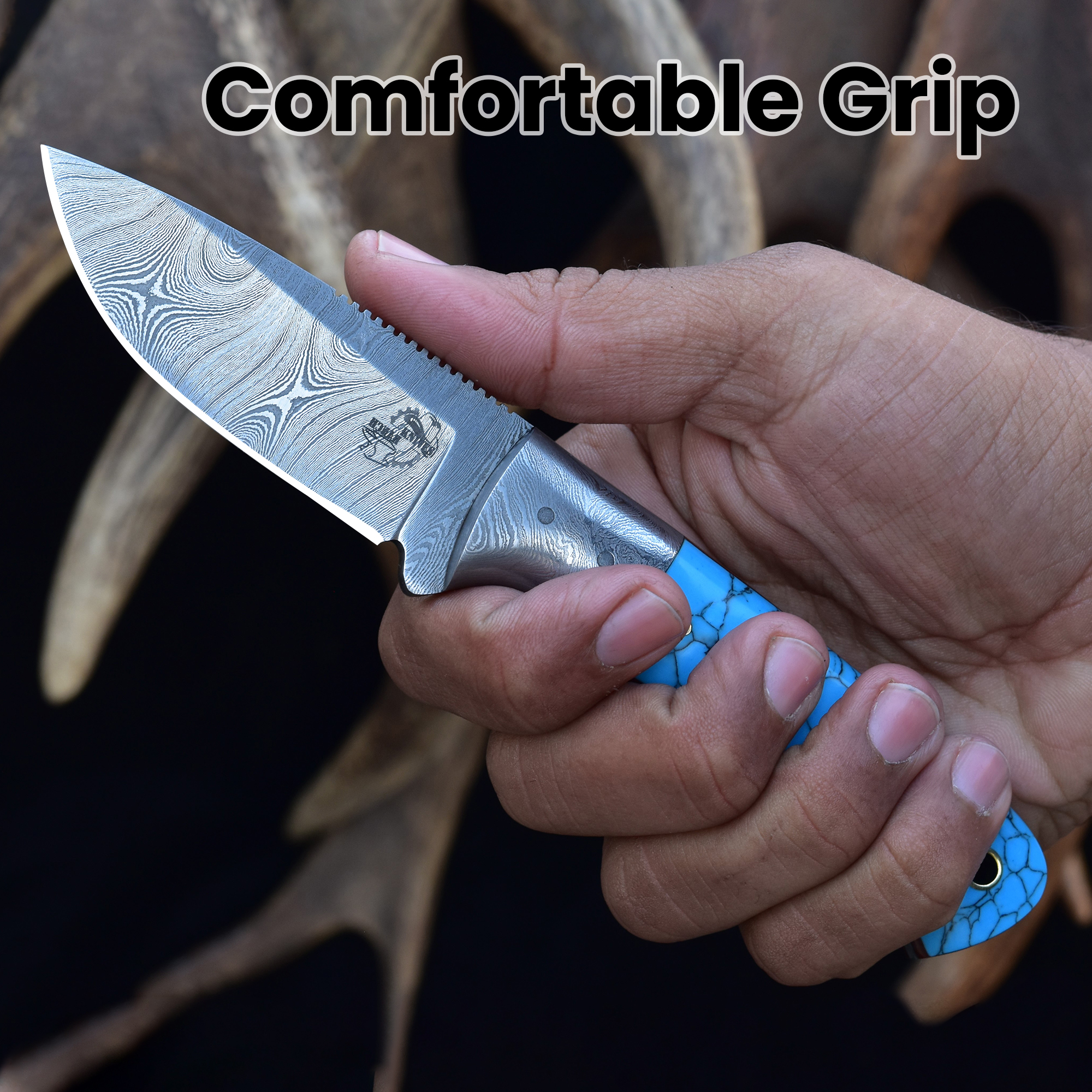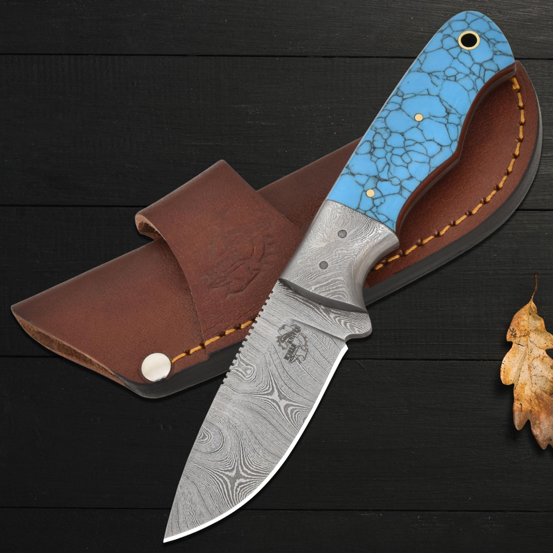 Knives Ranch Stylish Damascus Steel Knife with Faux Turquoise Handle