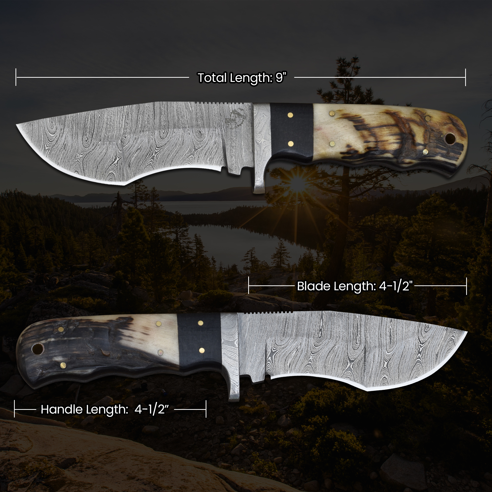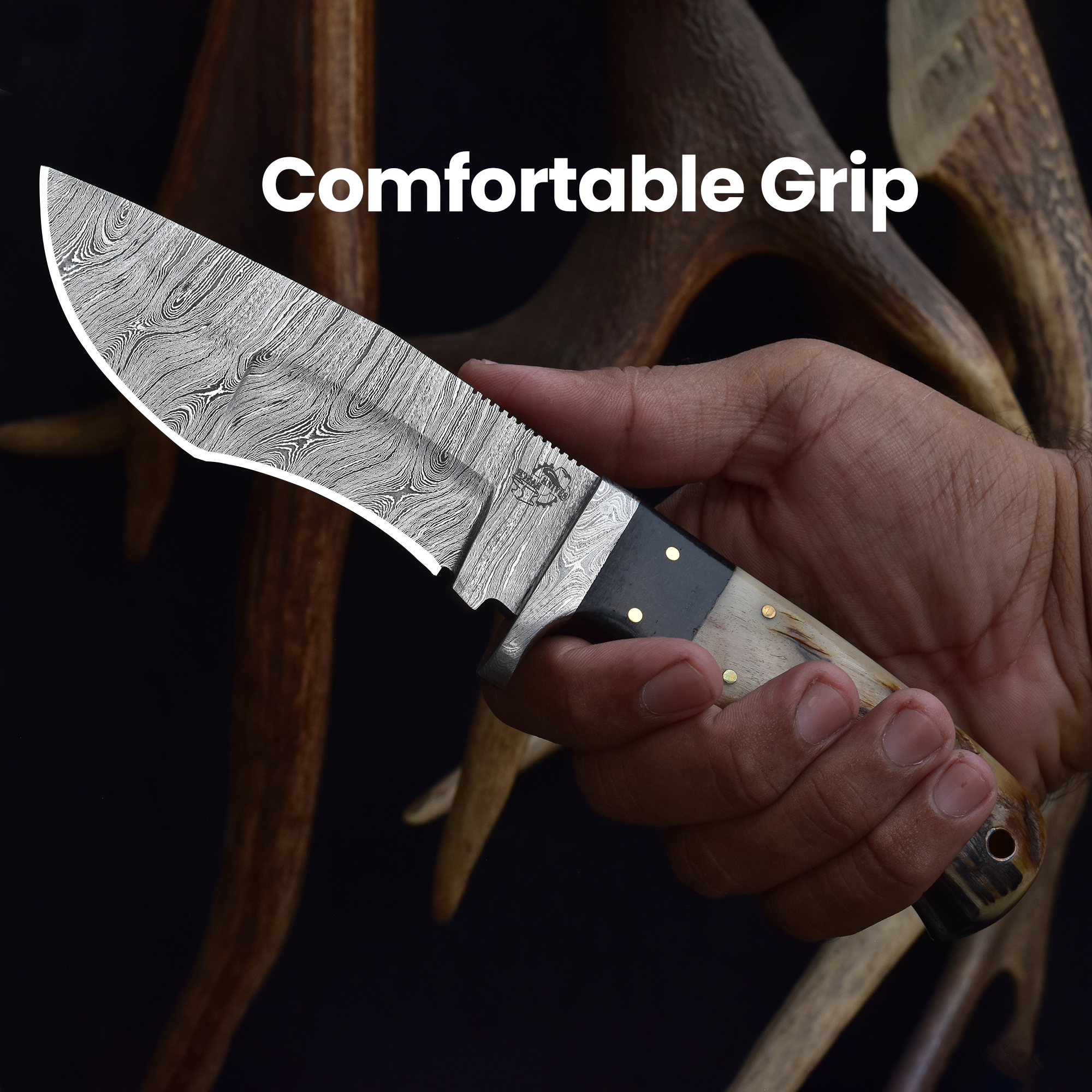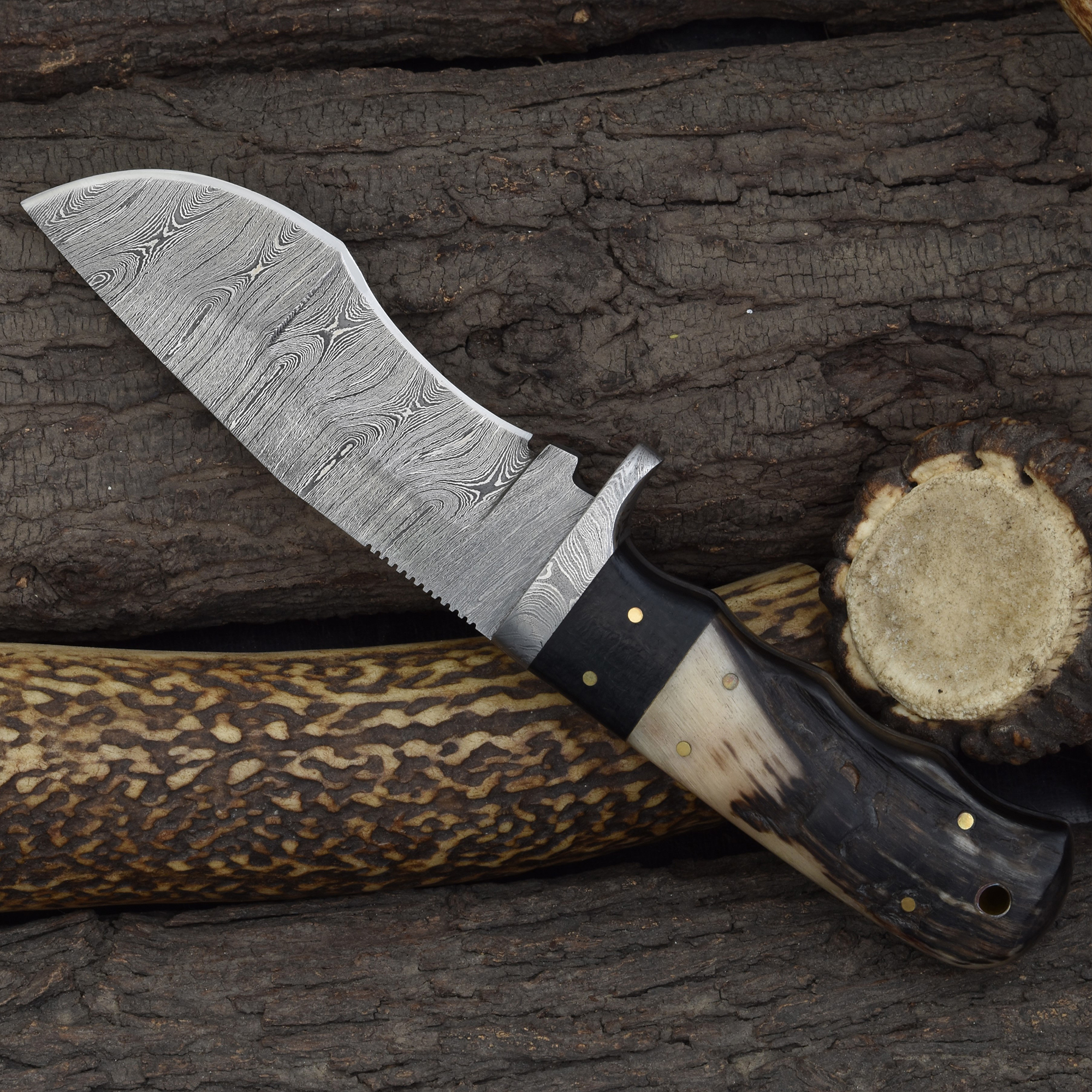 Knives Ranch Durable Damascus Steel Hunting Knife with Ramhorn Handle