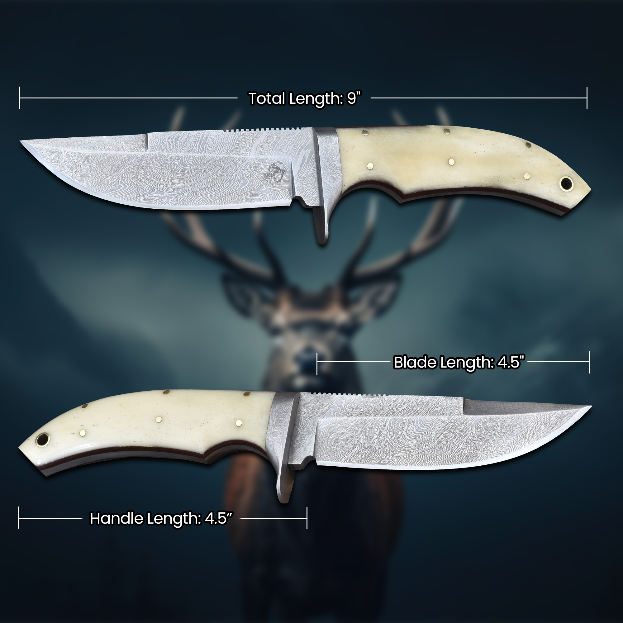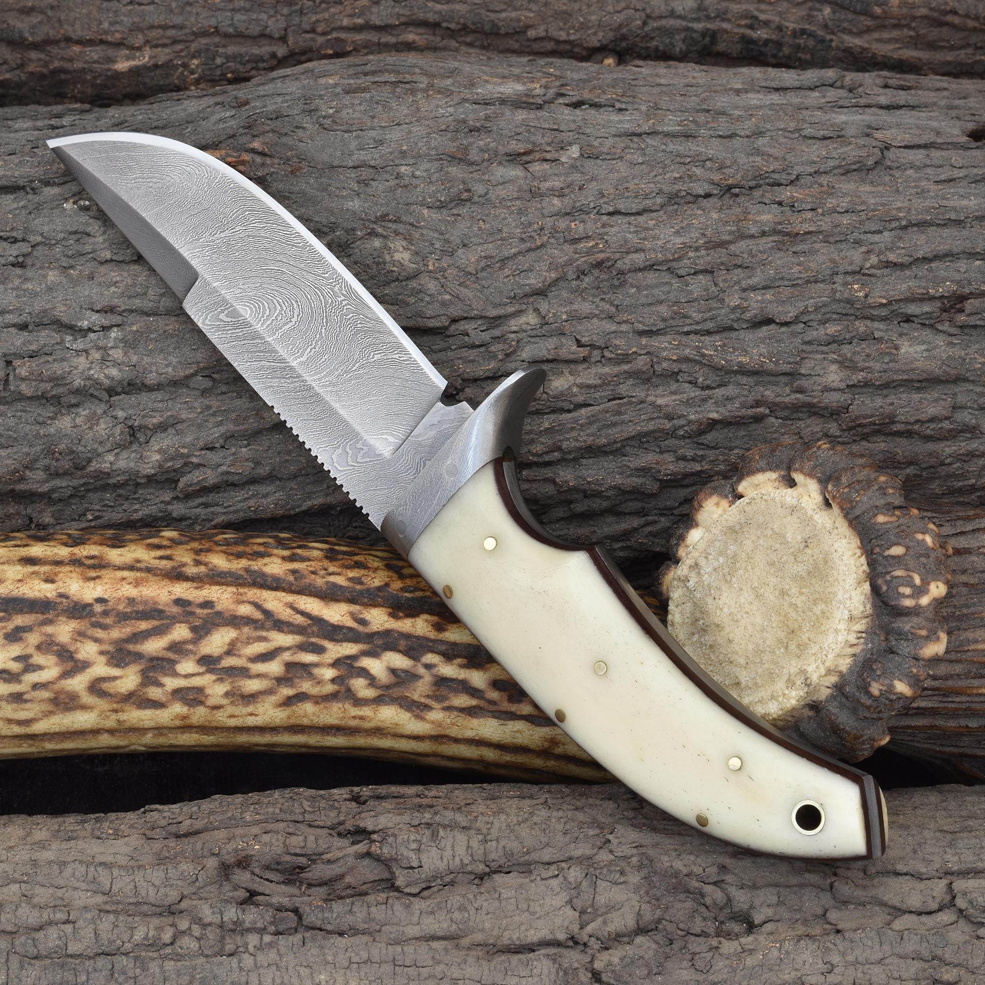 Knives Ranch Durable Damascus Steel Knife with Bone Handle