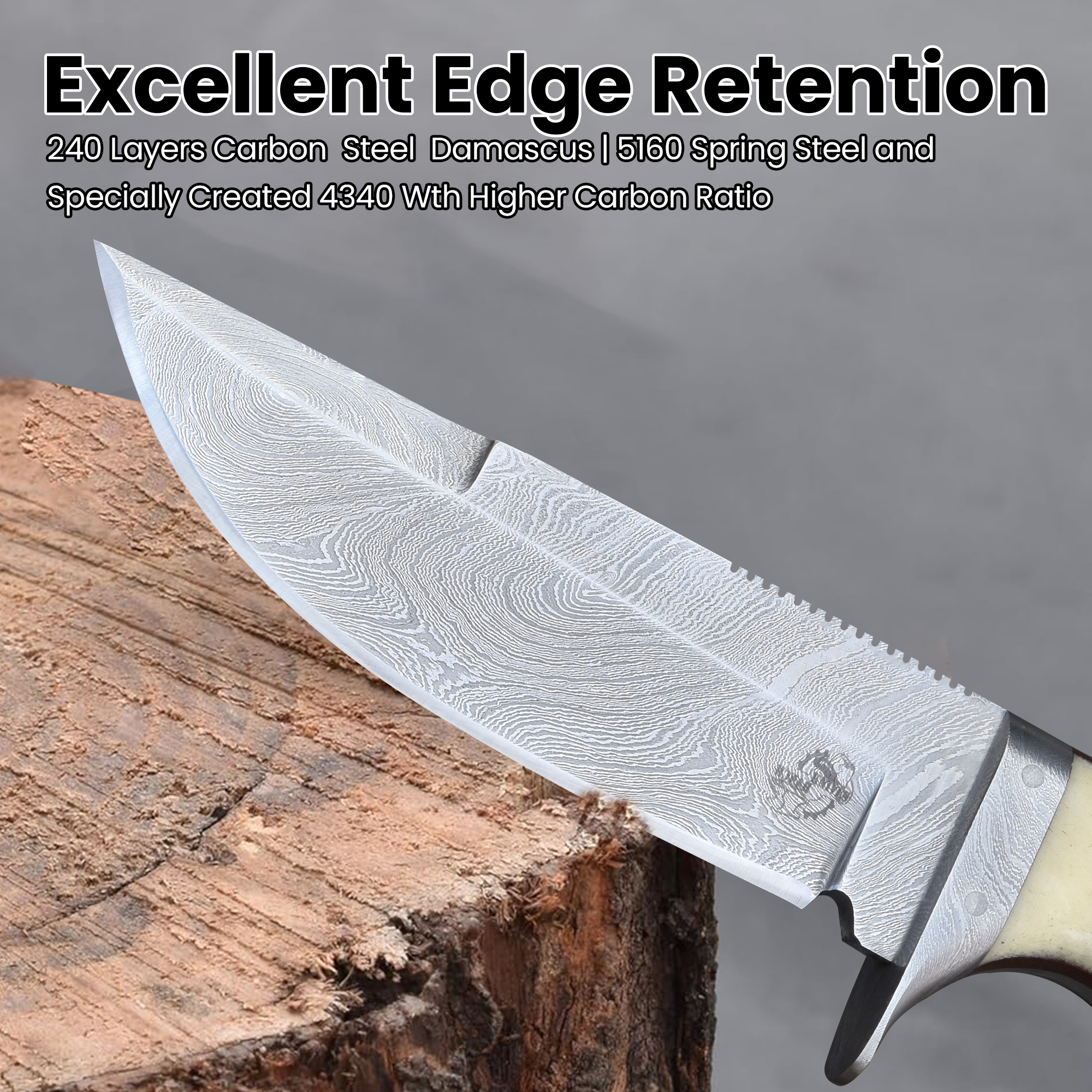 | Blade Steel | 240 Layers Forged Carbon Steel Damascus (5160/4340) |