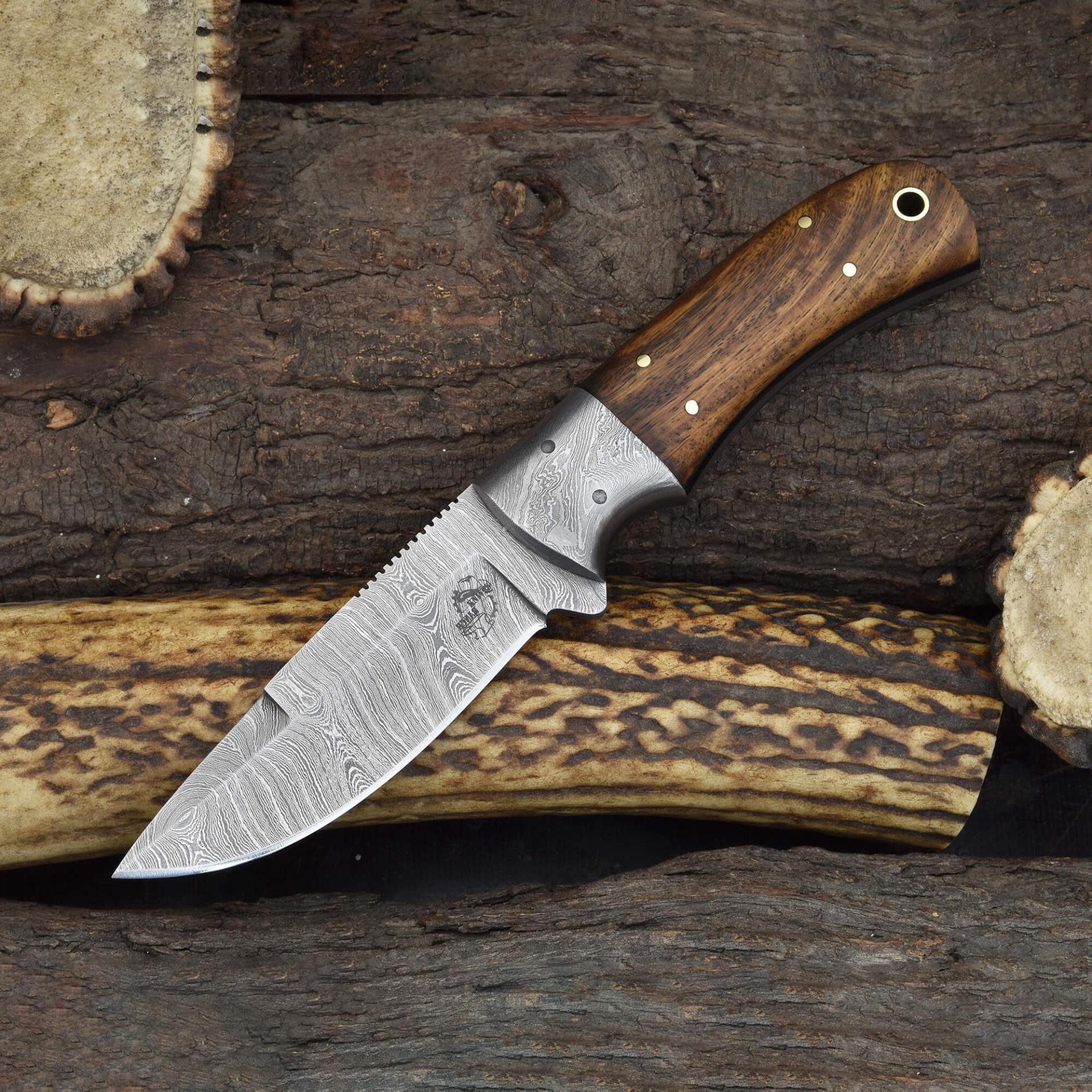Elevate your collection with this expertly crafted Knives Ranch Damascus Steel knife featuring a genuine rosewood handle design for a natural and sturdy grip. The blade delivers exceptional sharpness and durability, perfect for everyday use or display.