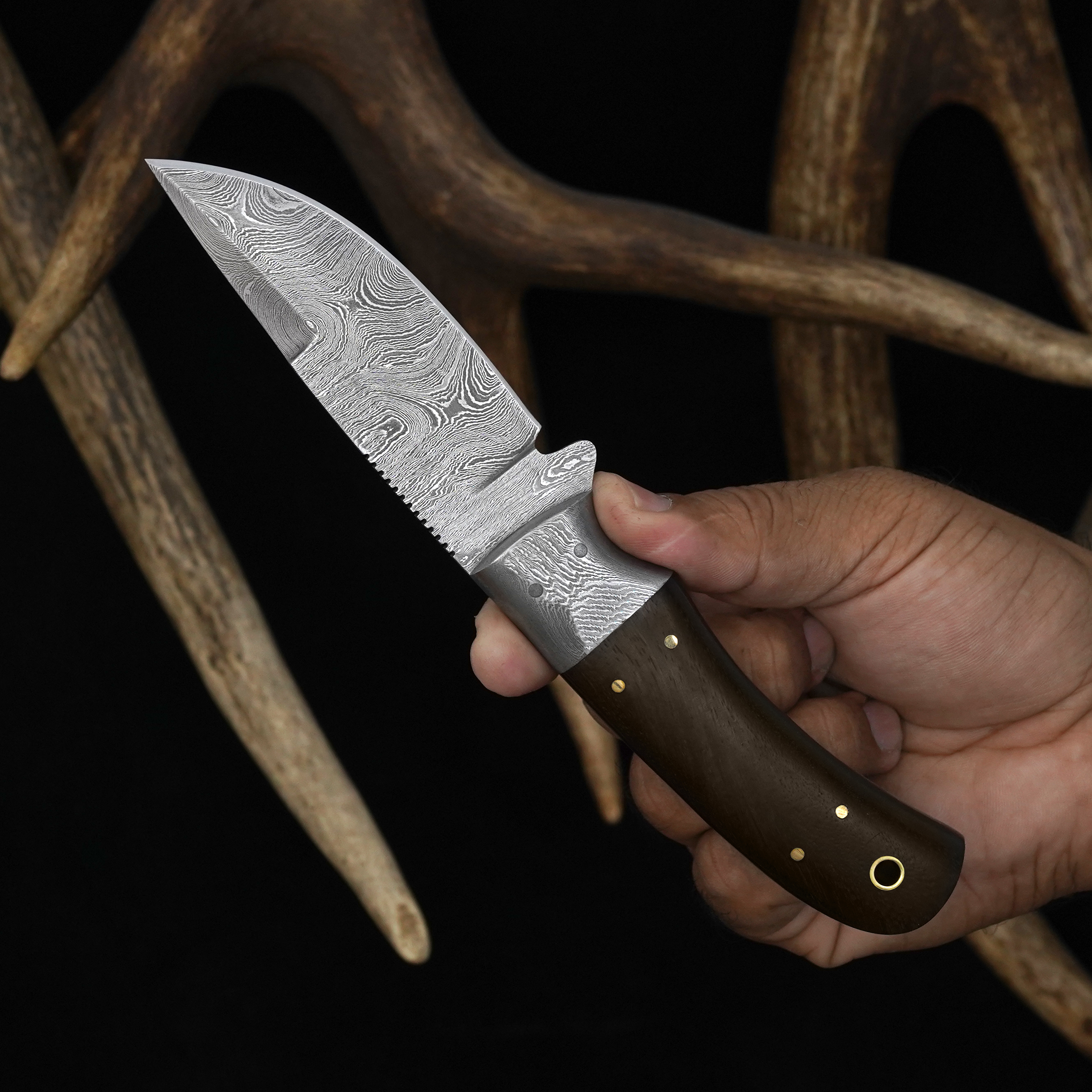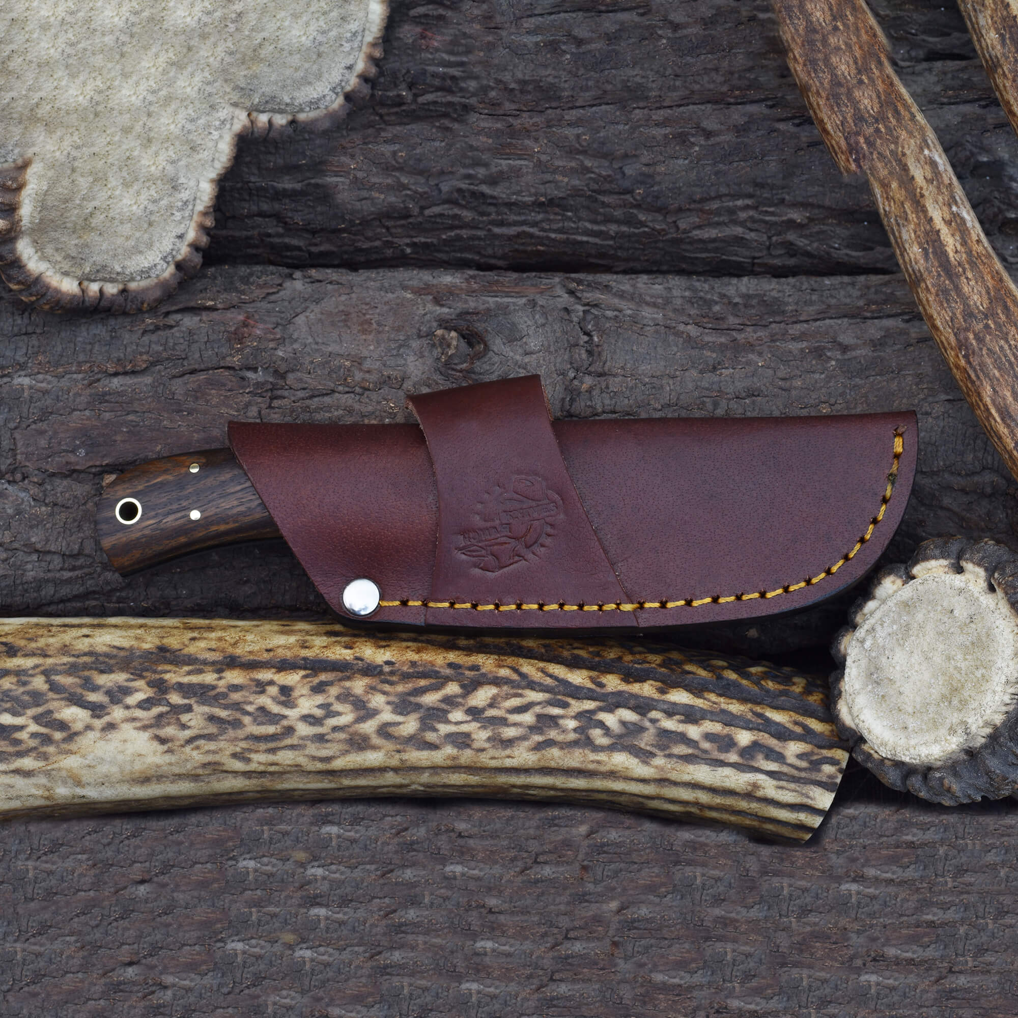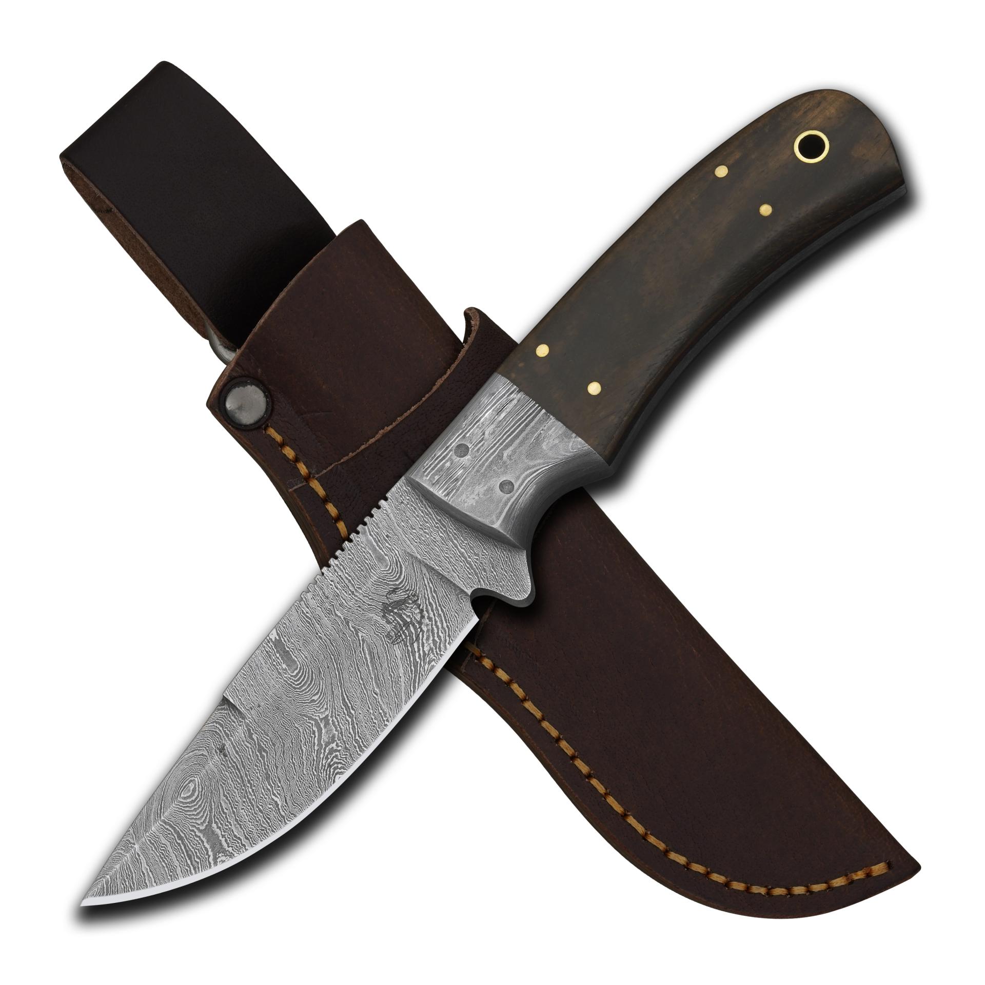 With a strong Damascus steel bolster adding balance and resilience, this knife comes with a Vegetable Tanned Leather hand side mount sheath for secure and convenient carrying. This Damascus steel rosewood knife is a perfect blend of tradition and performance. The handcrafted rosewood blade is designed to impress collectors and users alike.