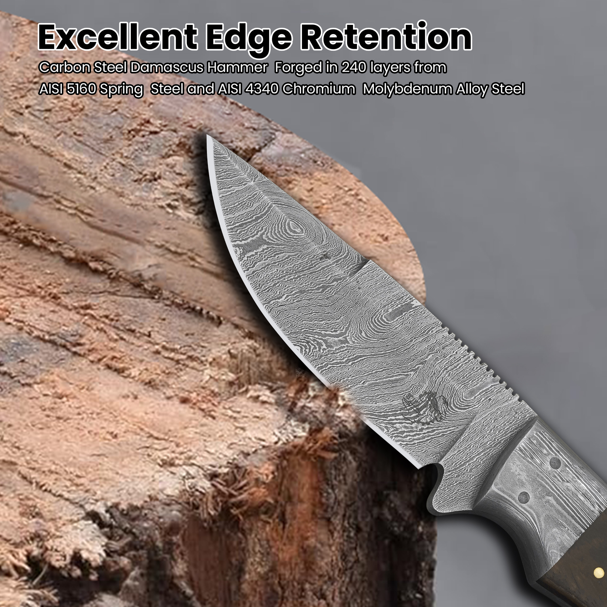 | Blade Steel | 240 Layers Hammer Forged Carbon Steel Damascus (5160/4340) | ||