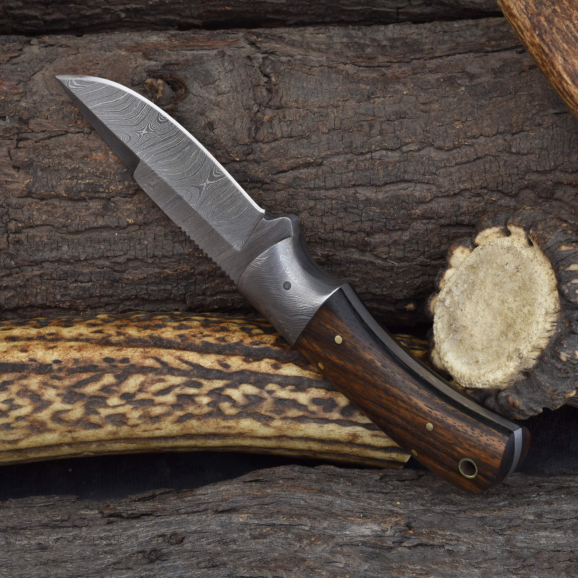 Knives Ranch Compact Damascus Steel Knife with Rosewood Handle