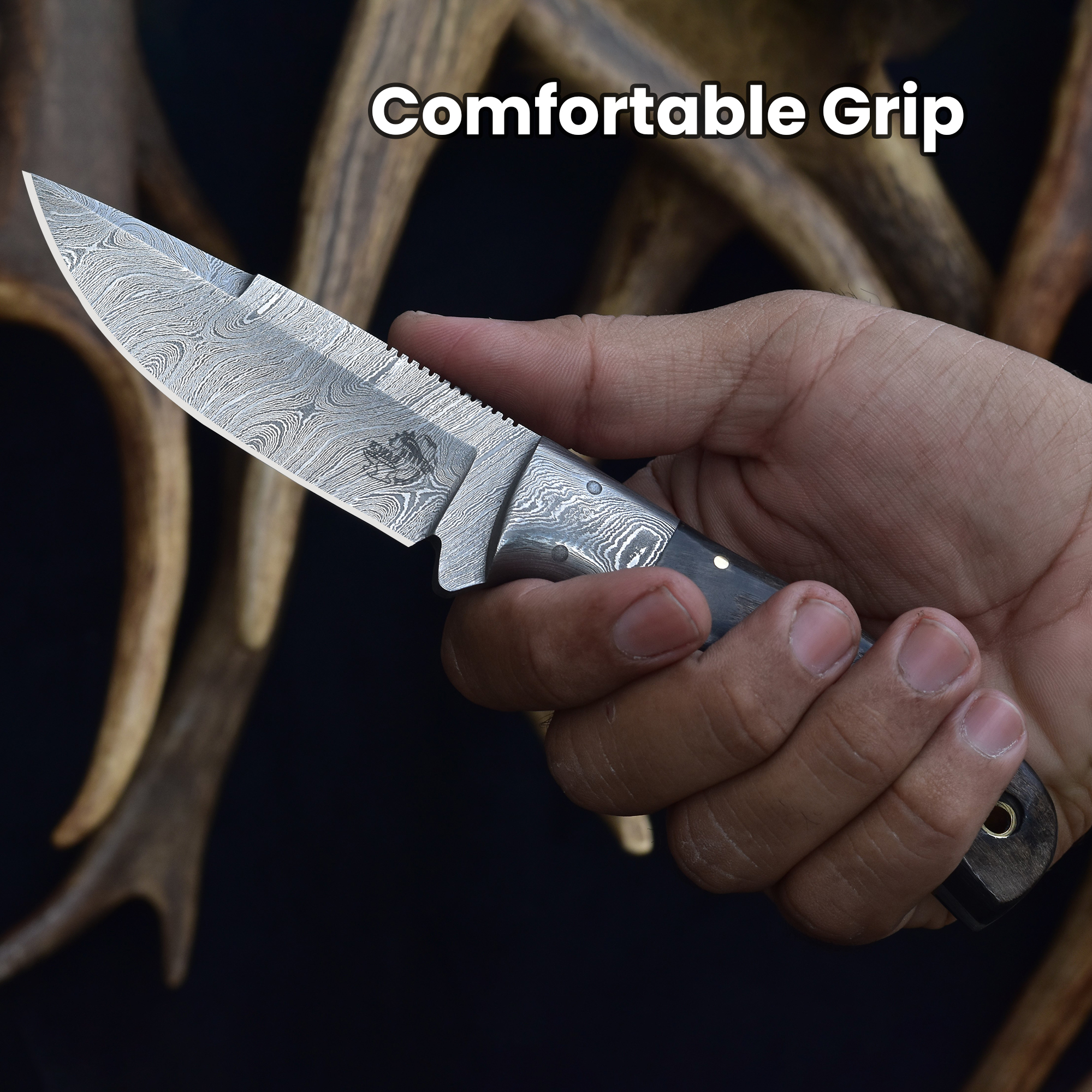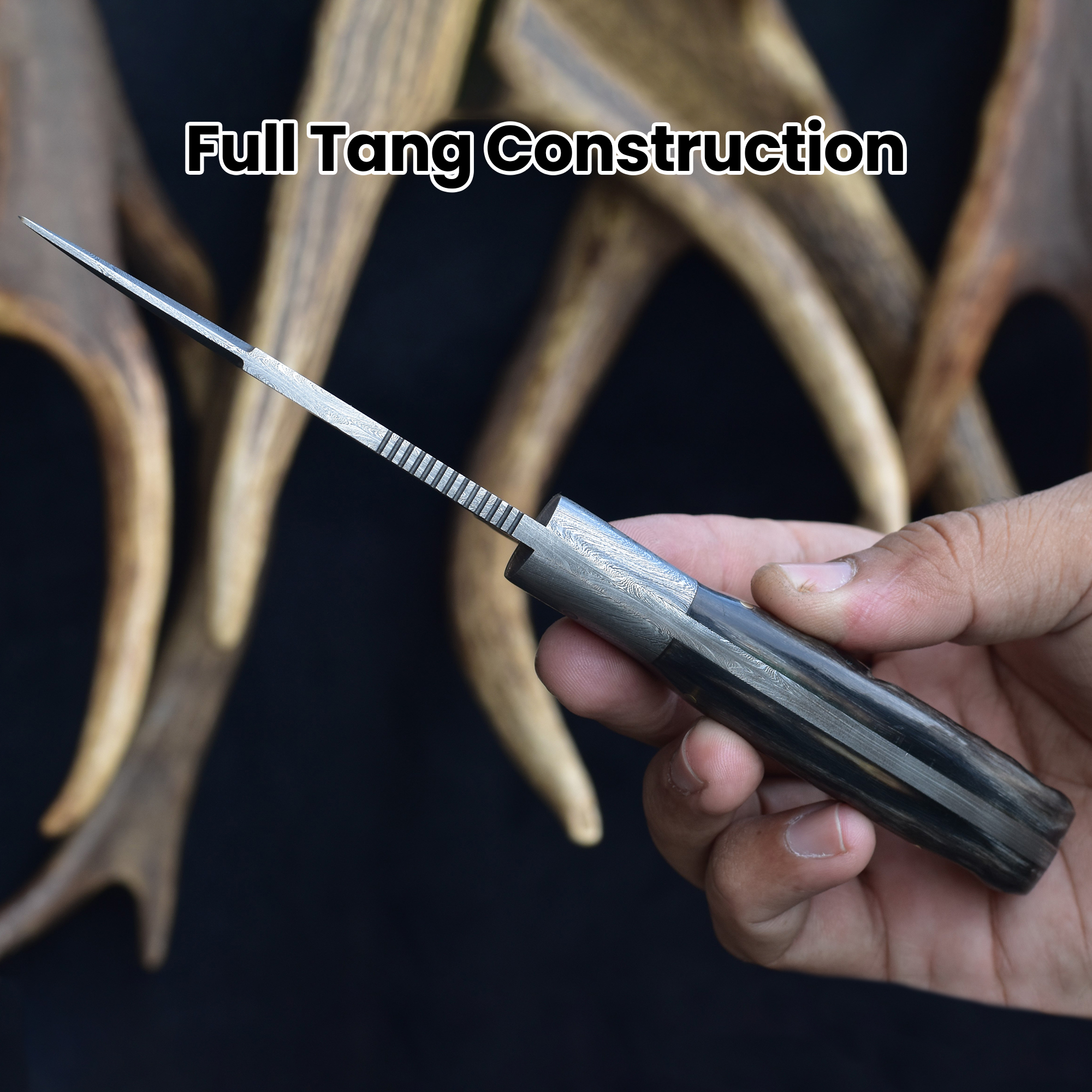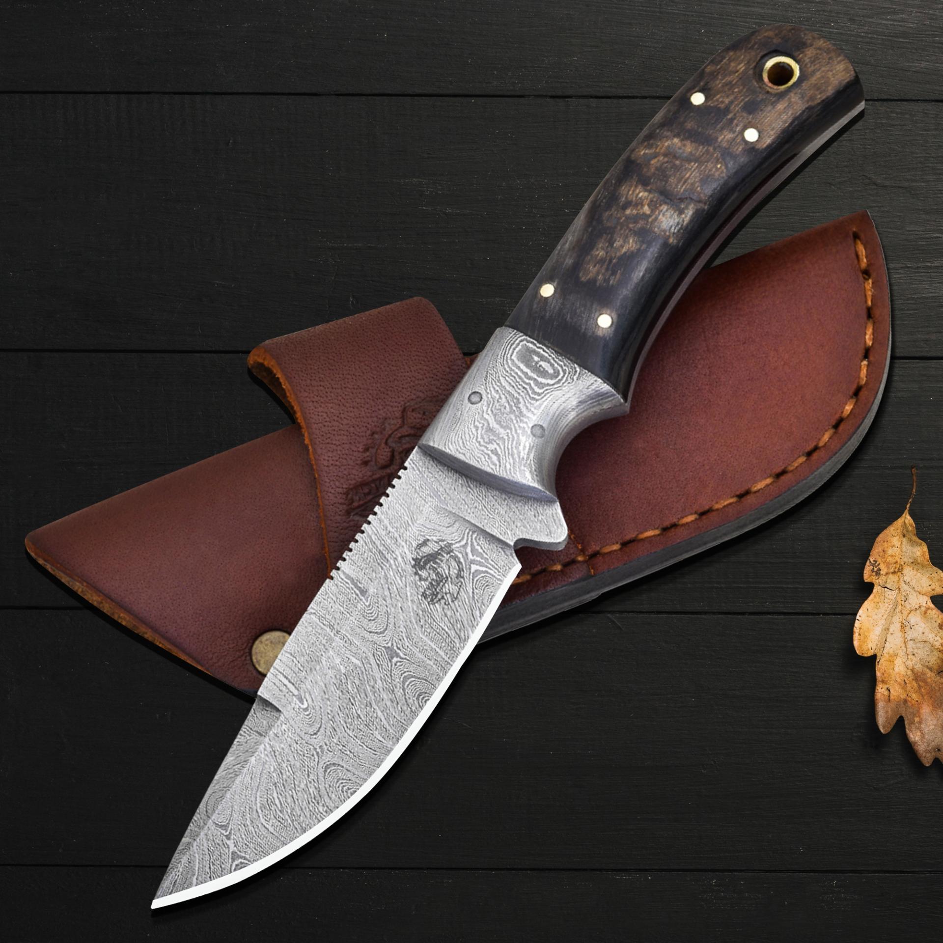 Featuring a sturdy Damascus steel bolster and a side mount sheath, this knife combines practical carrying options with excellent cutting performance. The Damascus steel ram horn knife delivers precision and durability, while the handmade ram horn blade offers timeless elegance.
