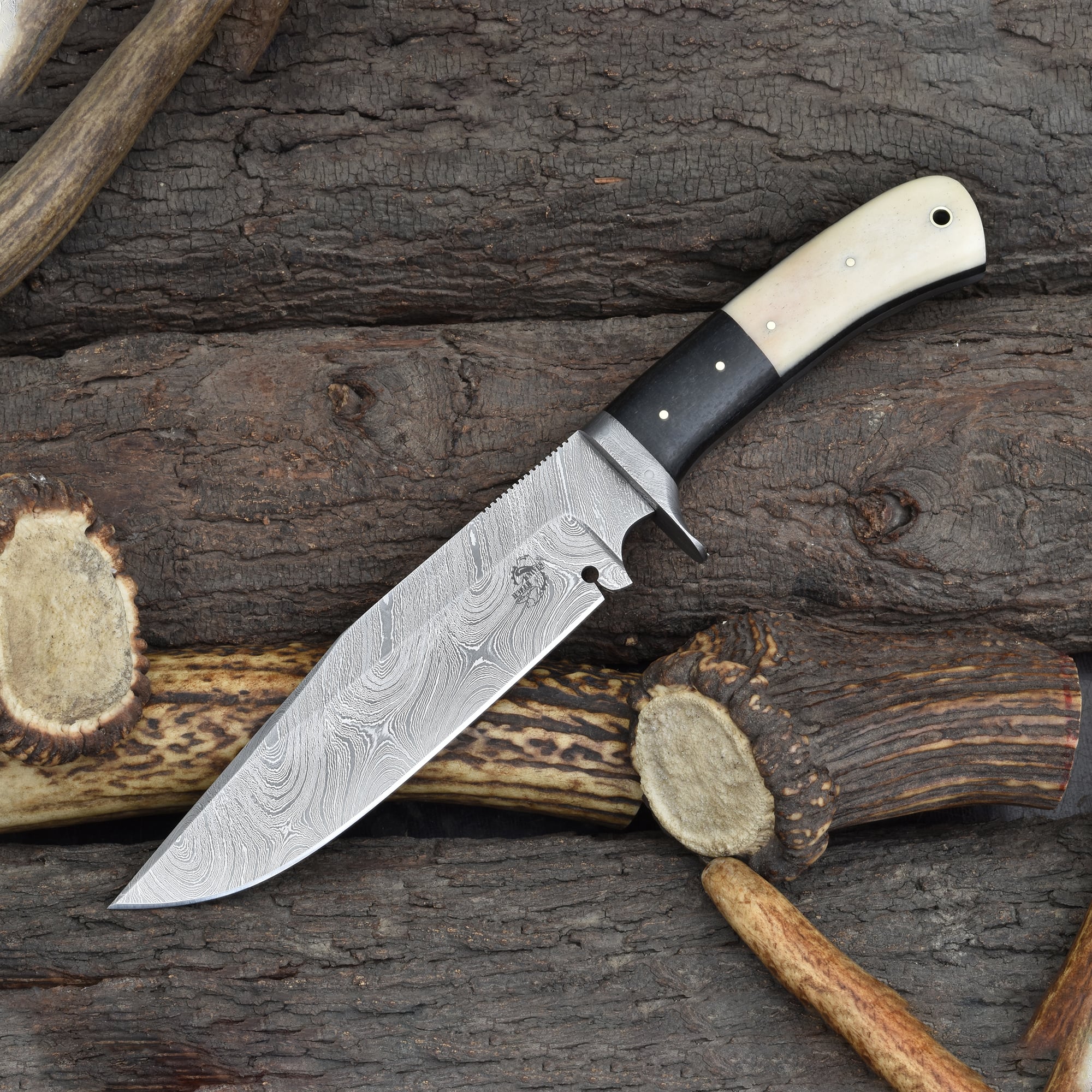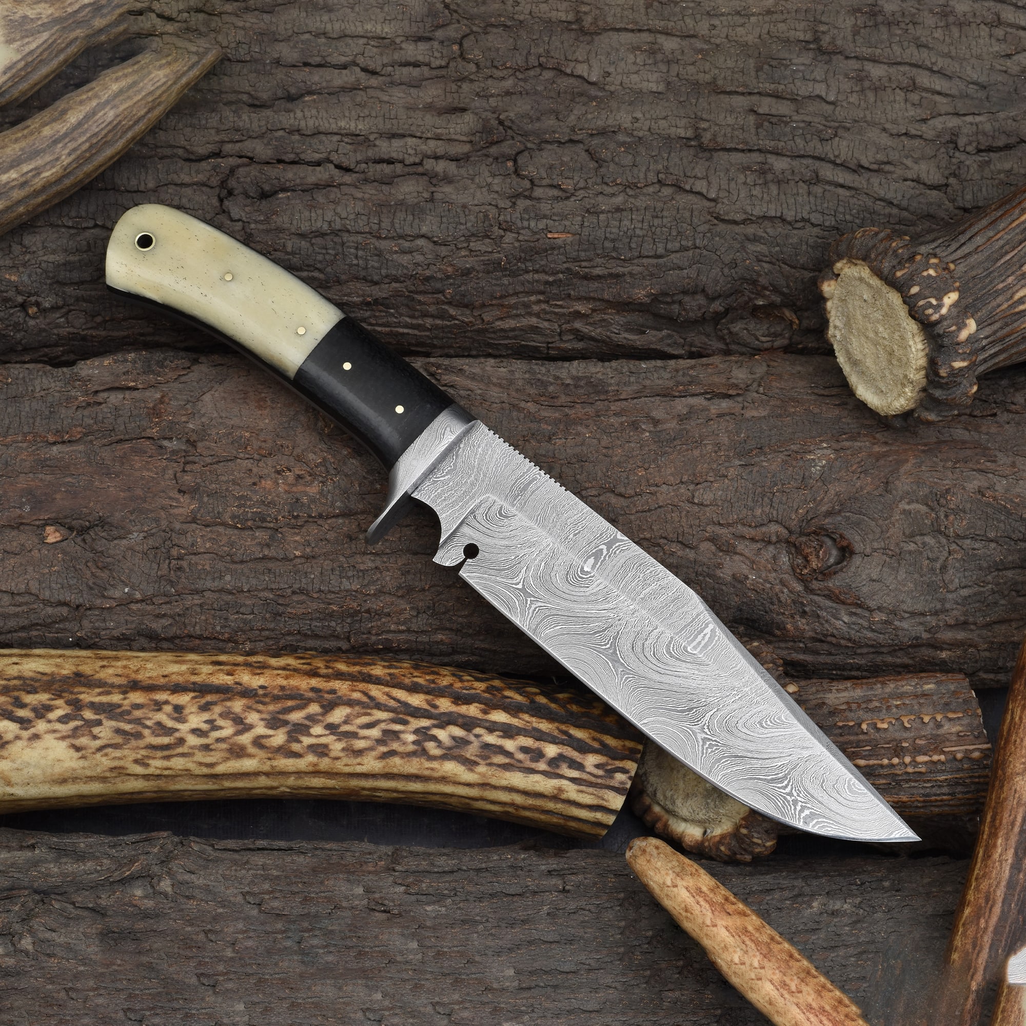Knives Ranch Damascus Bowie Knife With Bone And Micarta Handle