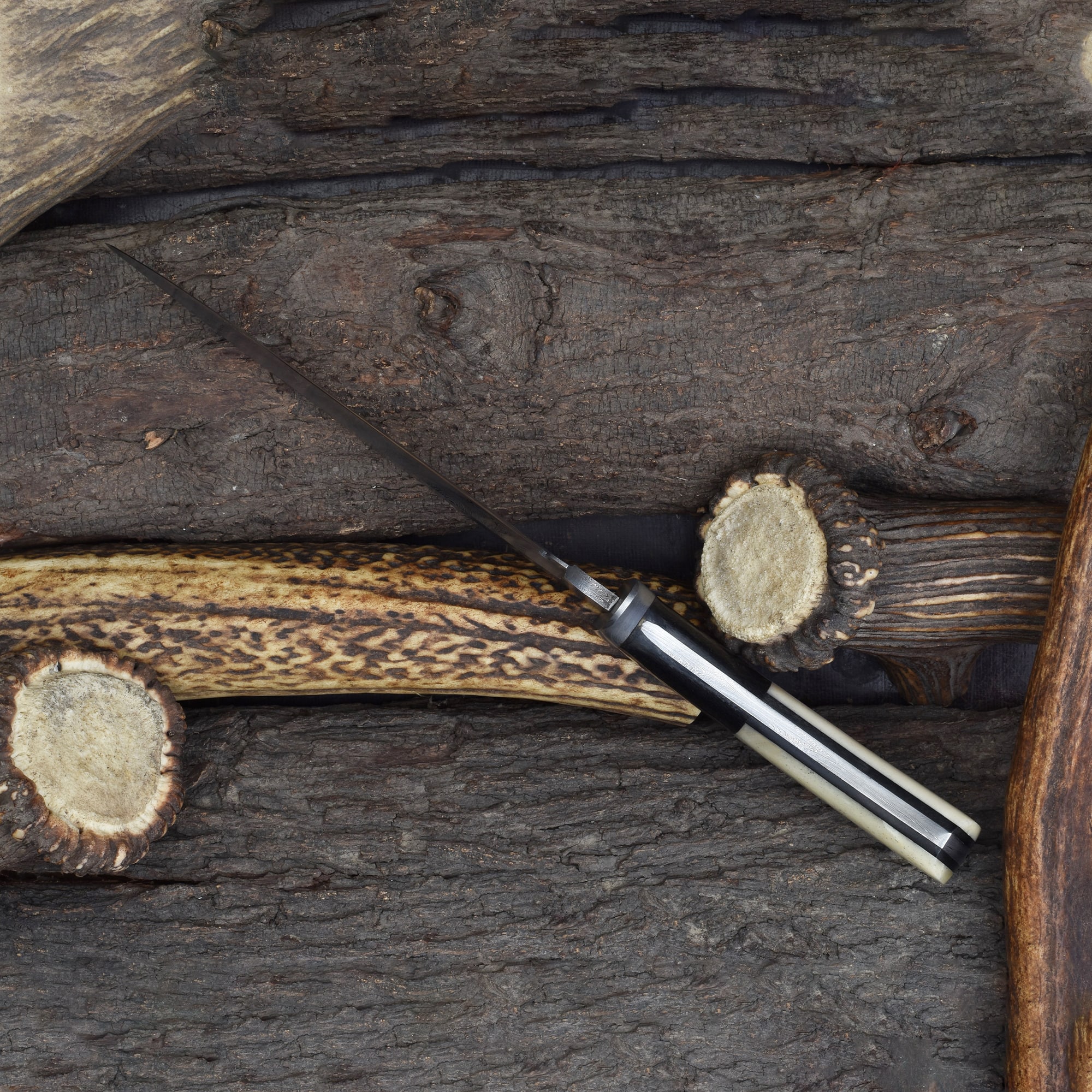 | Handle | Black Burlap Micarta + Natural Cattle Bone with Fiber Liner |