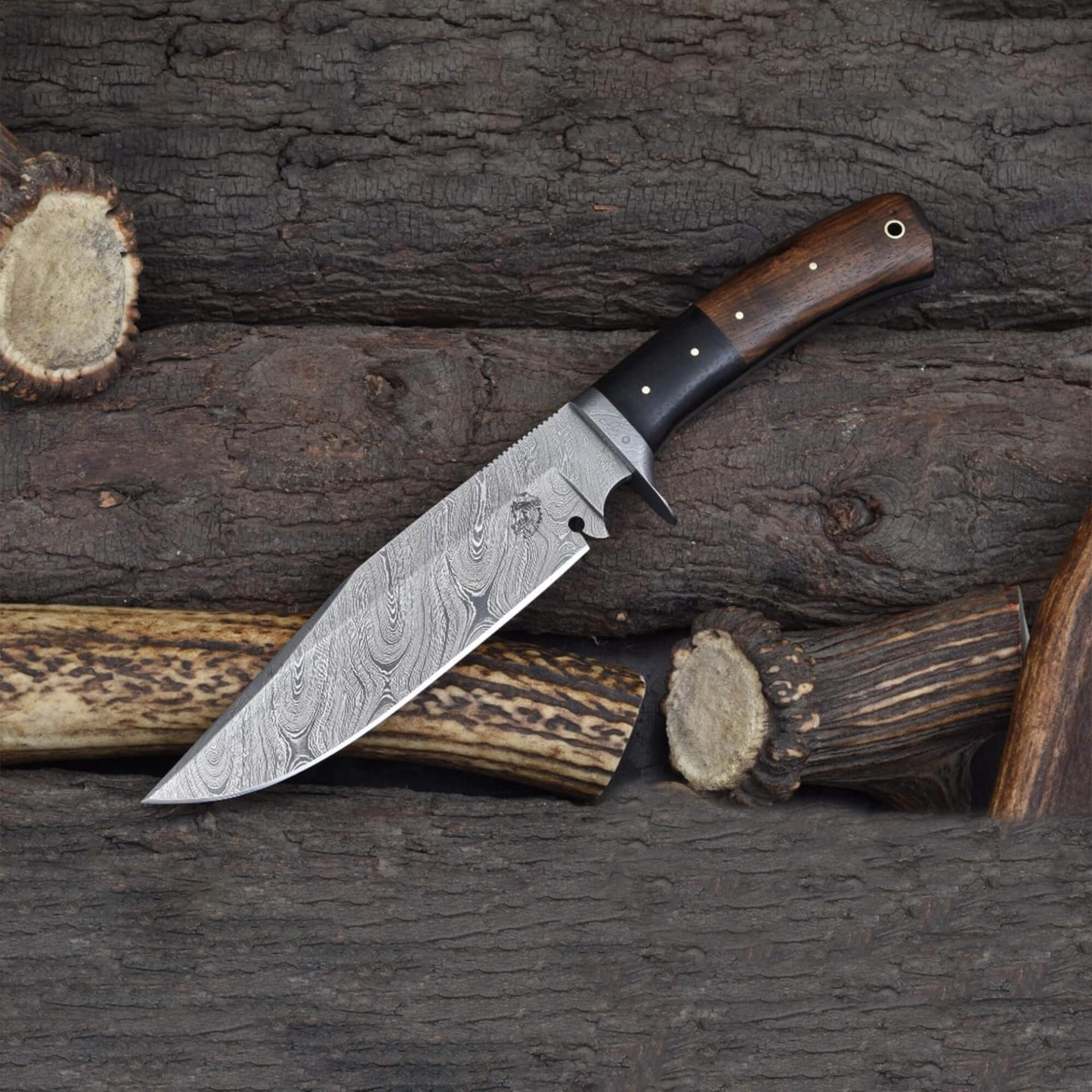 Commanding in size and craftsmanship, this Knives Ranch Bowie knife is forged from our signature hammer-forged Damascus steel (5160/4340), offering exceptional strength, sharpness, and mesmerizing layered patterns. With a 7" blade and a 12" overall length, it delivers power and precision for hunters, outdoorsmen, and collectors.