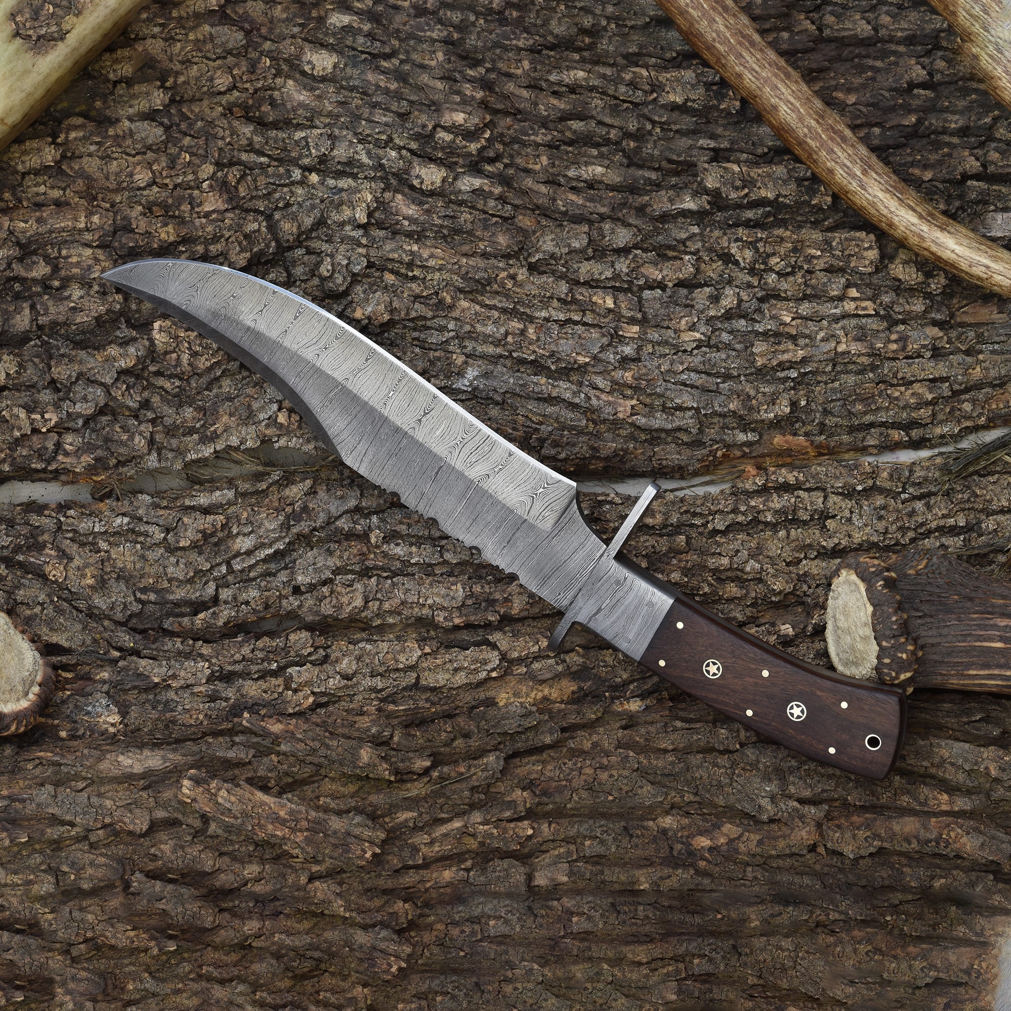 Own the Knives Ranch Damascus Bowie Knife—crafted for performance, built for a lifetime.