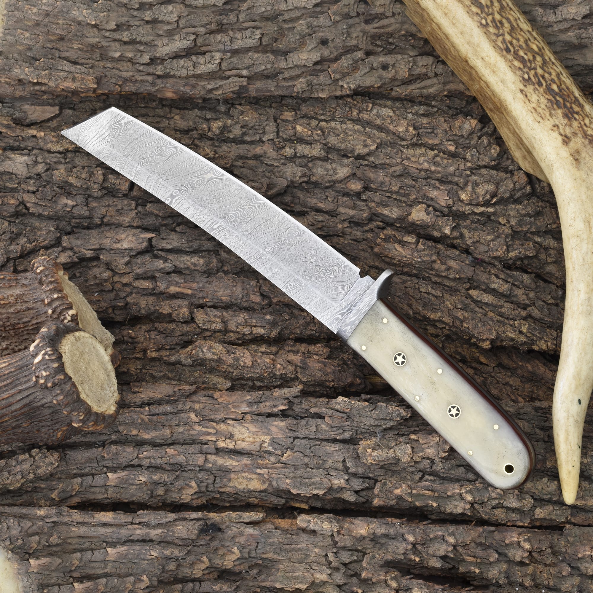 Knives Ranch Durable Damascus Steel Knife with Bone Handle