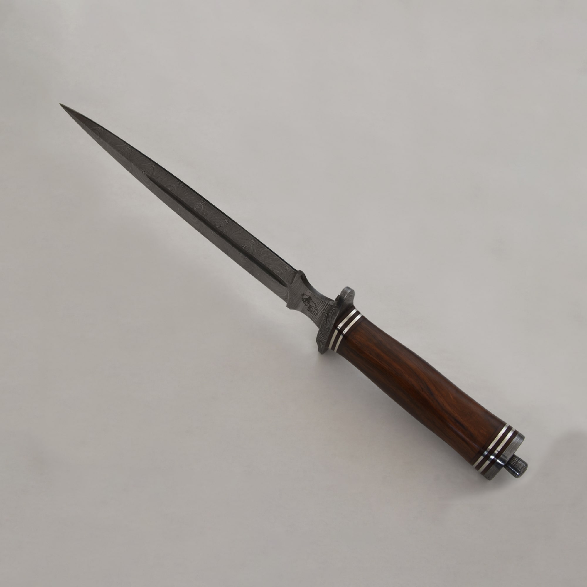 Knives Ranch Damascus Dagger with Stabilized Rosewood Handle and Damascus Bolster