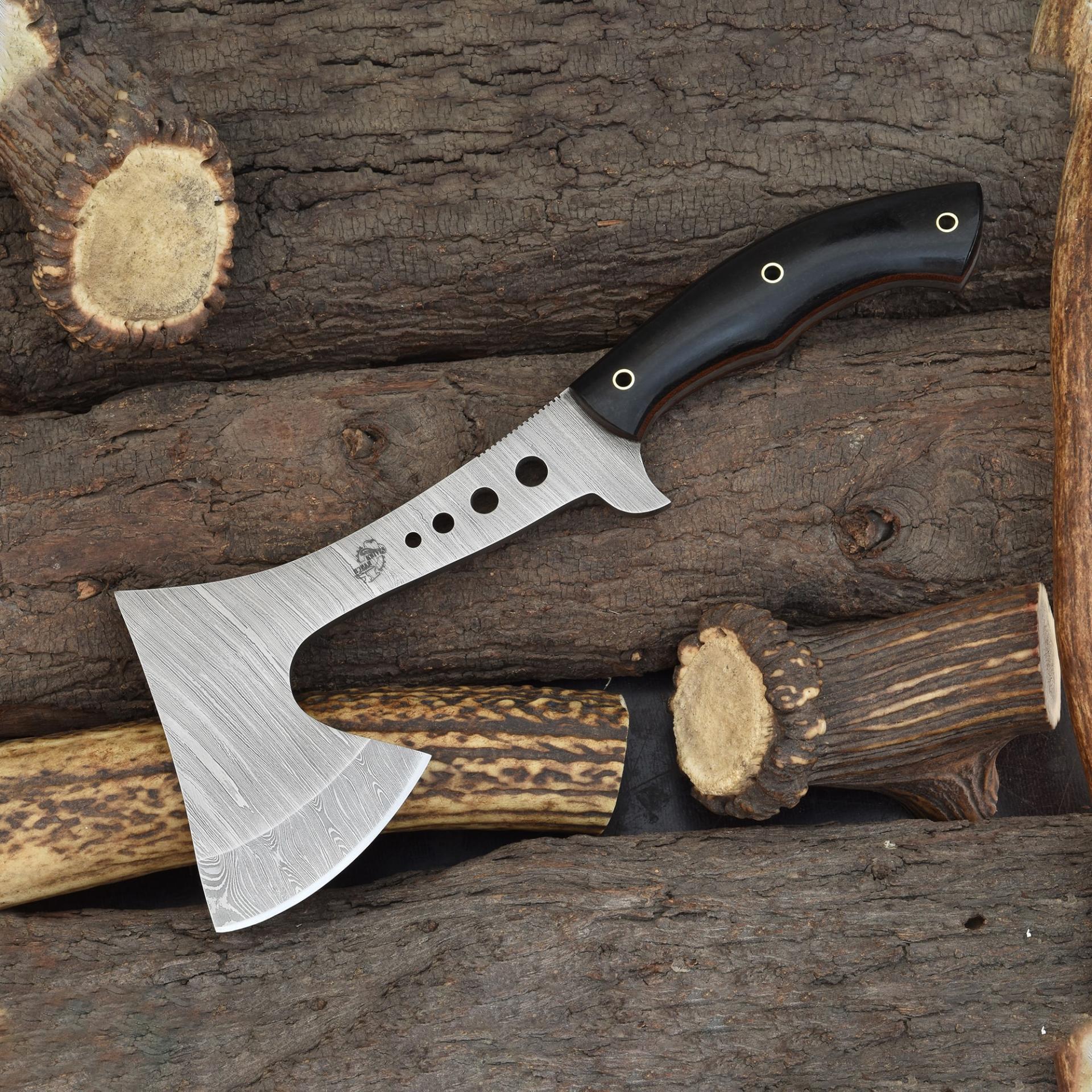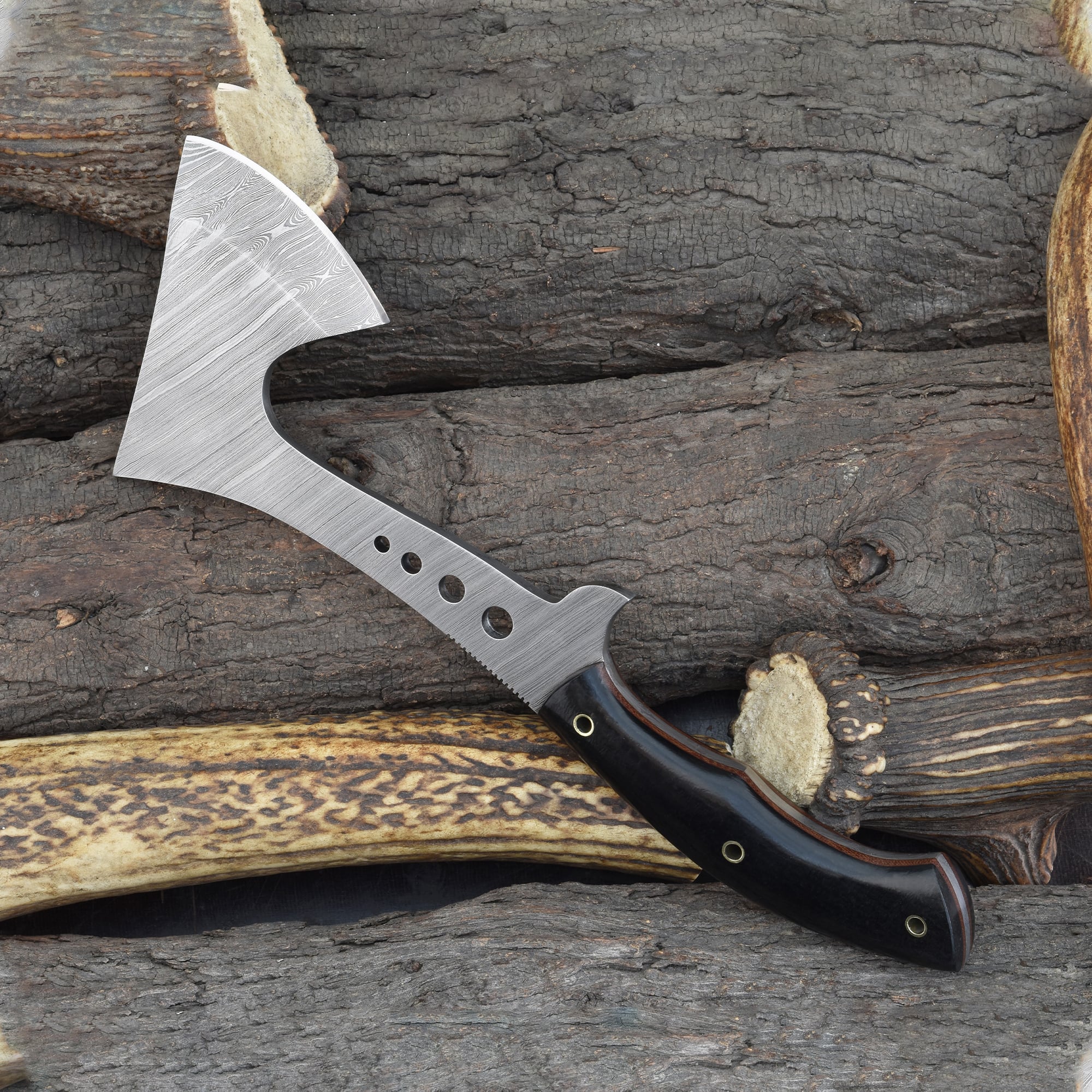Conquer the outdoors with the Knives Ranch Damascus Hatchet—crafted for strength, designed to last.
