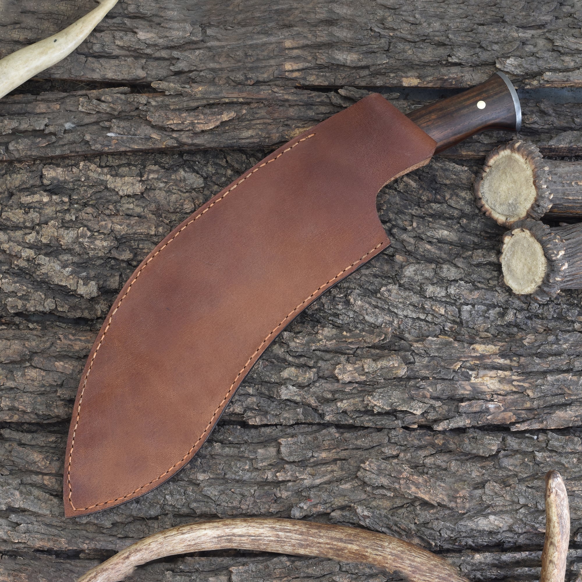 Experience the legendary cutting power of the Knives Ranch Damascus Kukri Knife, designed for heavy-duty performance and stunning craftsmanship. Forged from premium Damascus steel, this kukri delivers superior sharpness, edge retention, and durability, making it ideal for chopping, clearing, and outdoor survival tasks. The full-tang walnut handle with turquoise accents ensures a secure grip while adding an elegant touch, and the Damascus steel bolster and pommel enhance both strength and style.