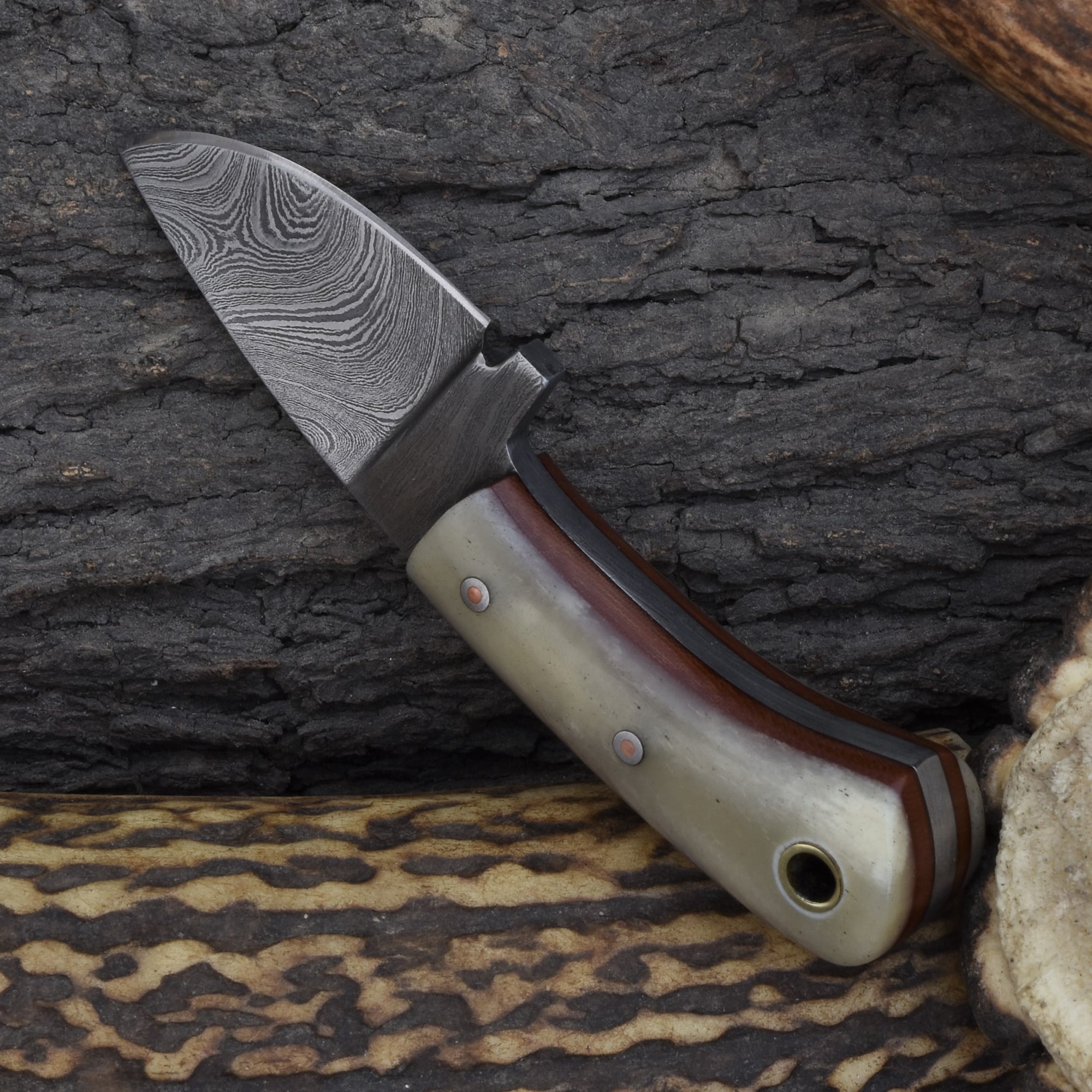 Knives Ranch Premium Damascus Neck Knife with Bone Handle