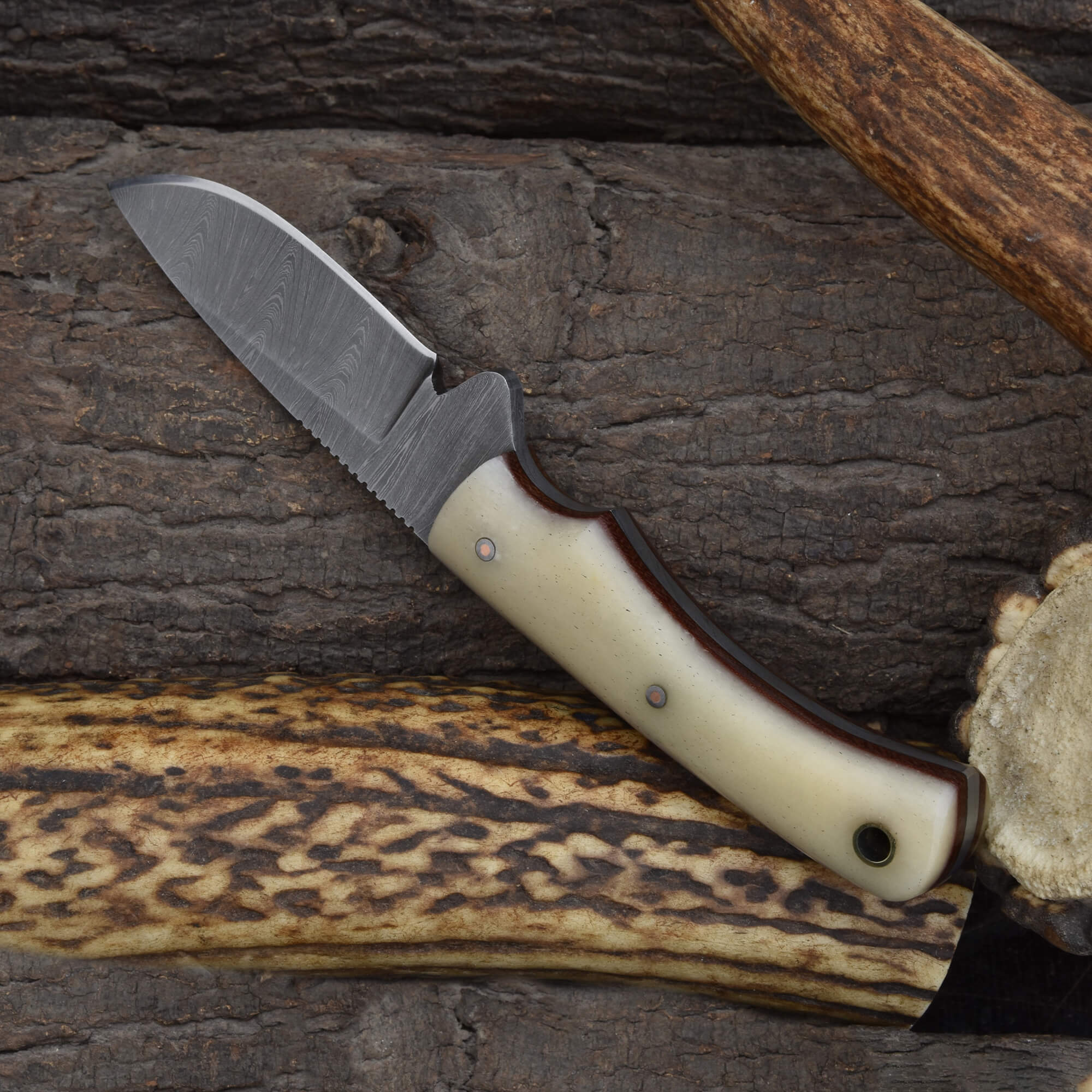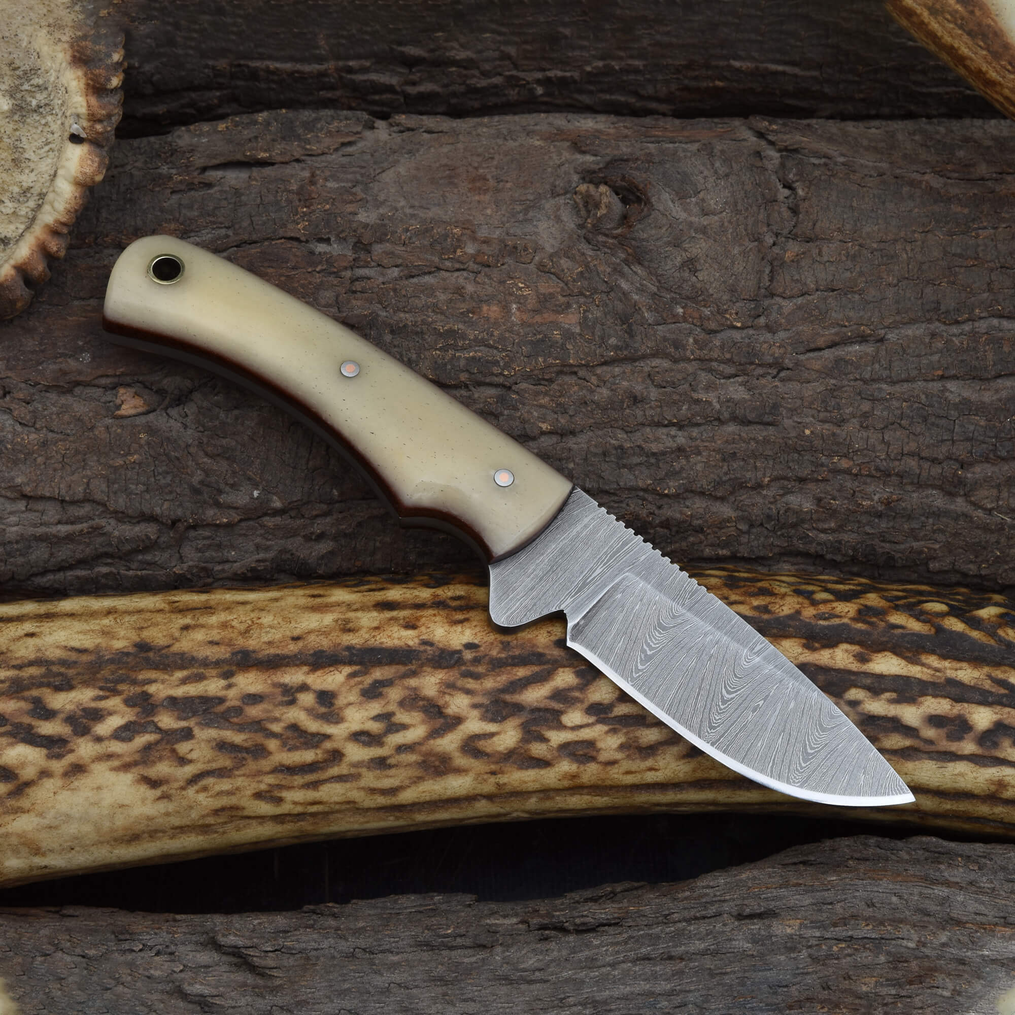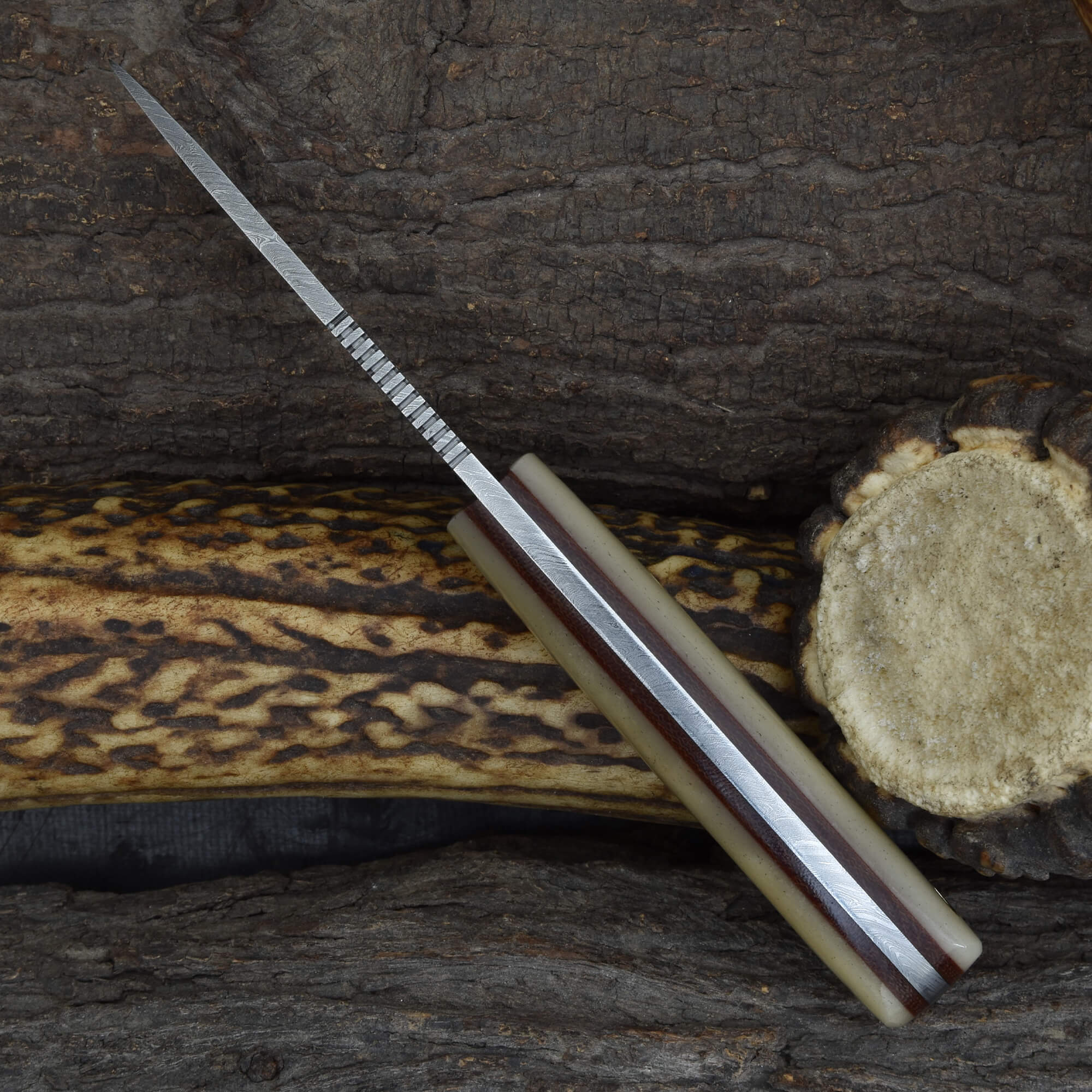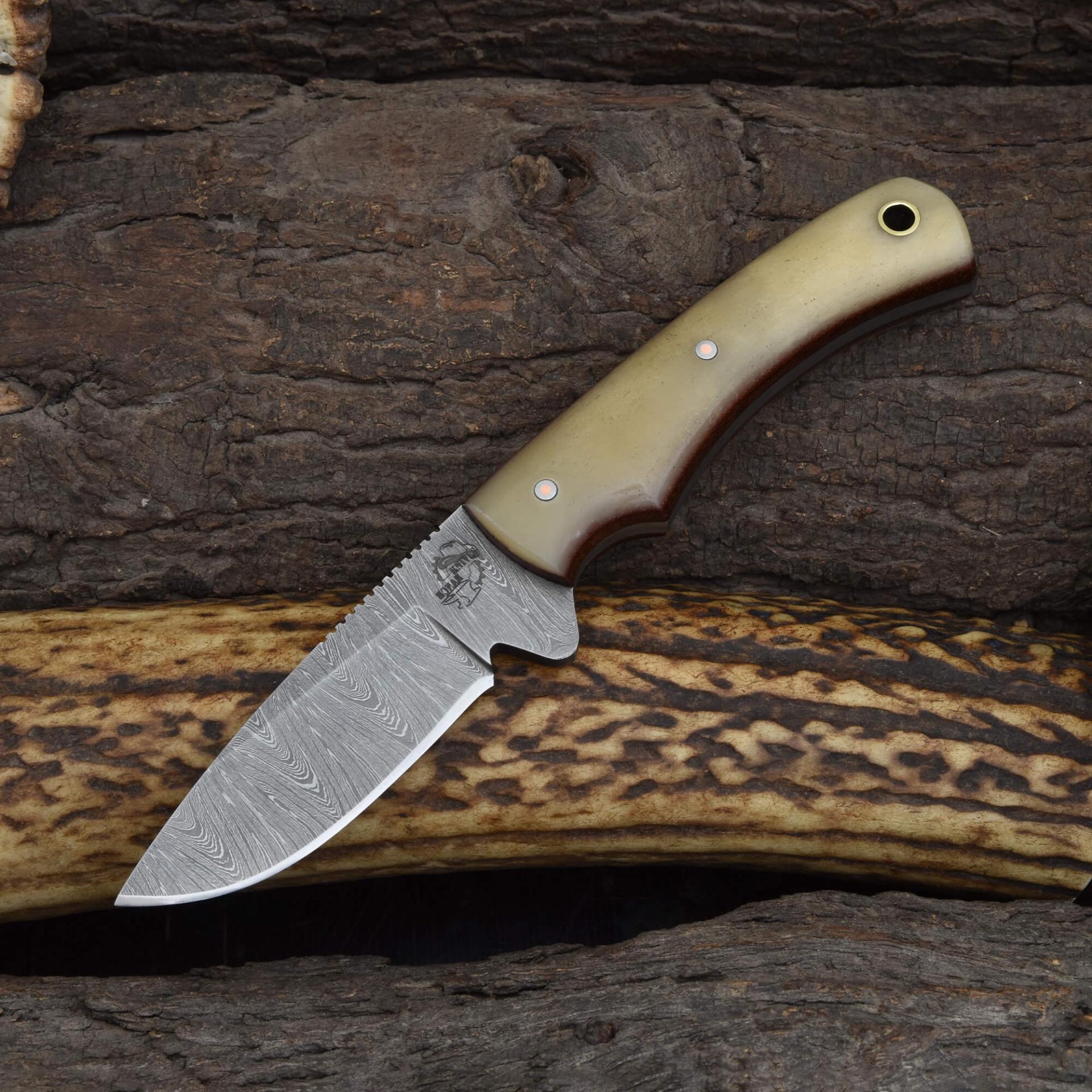 Knives Ranch Premium Damascus EDC Knife with Cow Shin Bone Handle