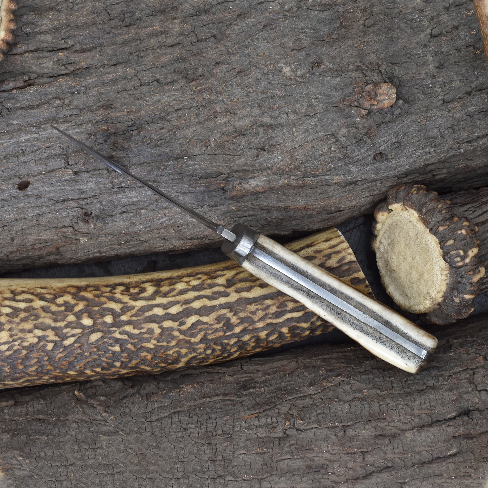 Enhance your hunting gear with the Knives Ranch Damascus gut hook knife, designed for precision and reliability in the field. Perfect as a Knives Ranch Damascus hunting gut hook knife, it excels in skinning and field dressing tasks. For hunters and outdoor enthusiasts, the Knives Ranch Damascus gut hook knife with stag handle combines functionality with timeless style.