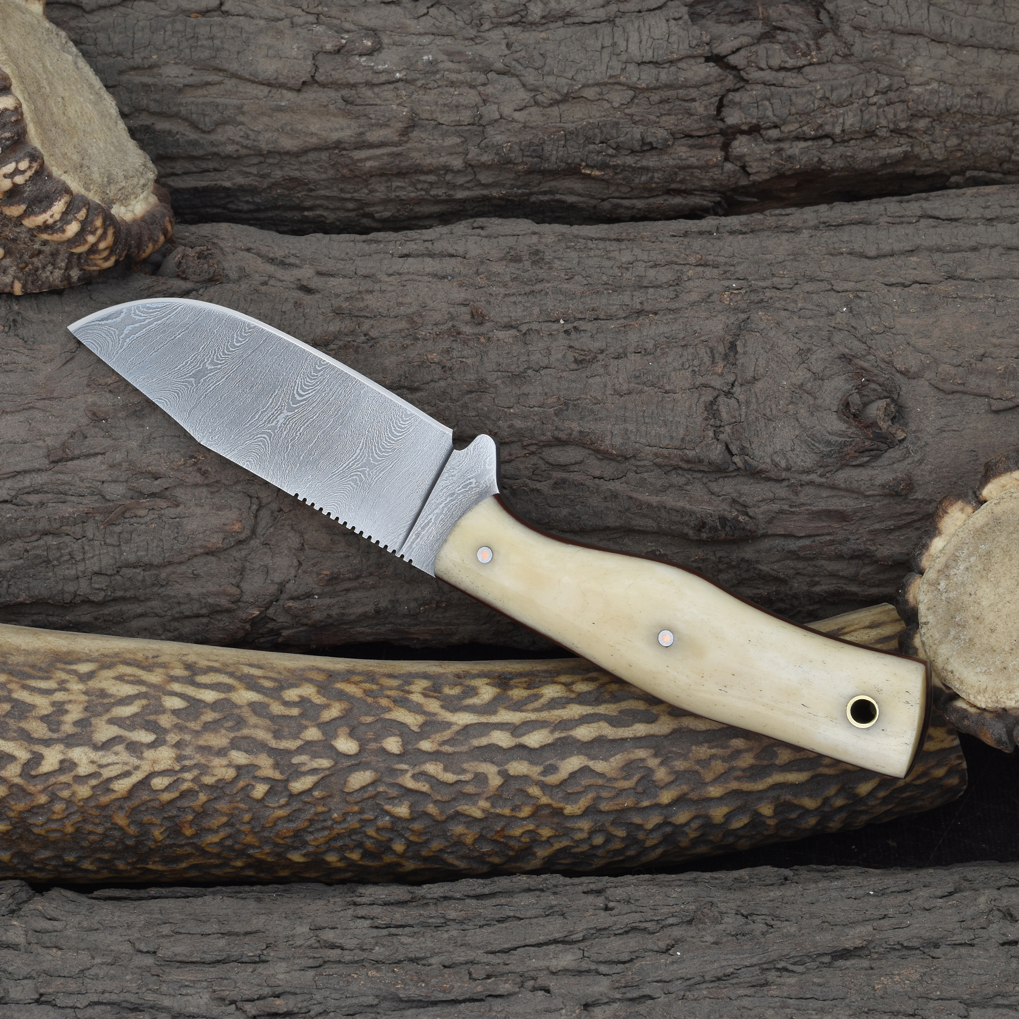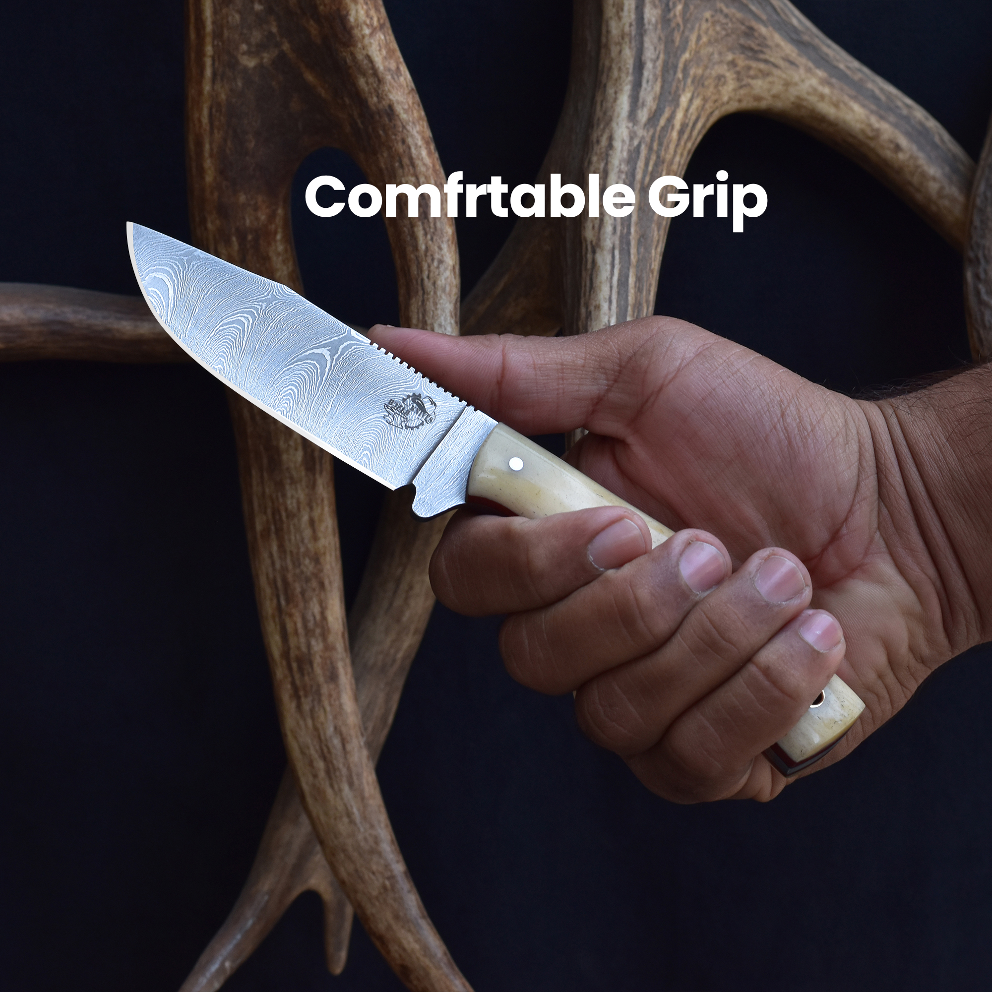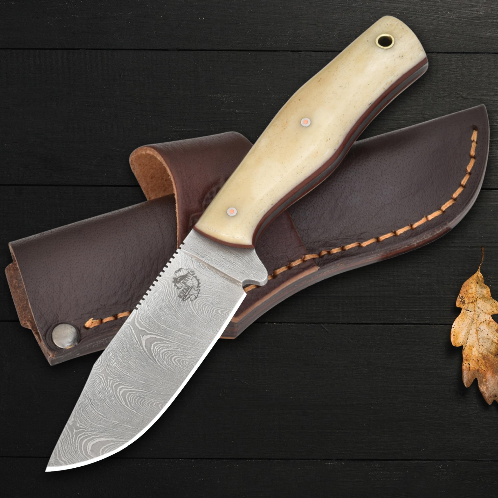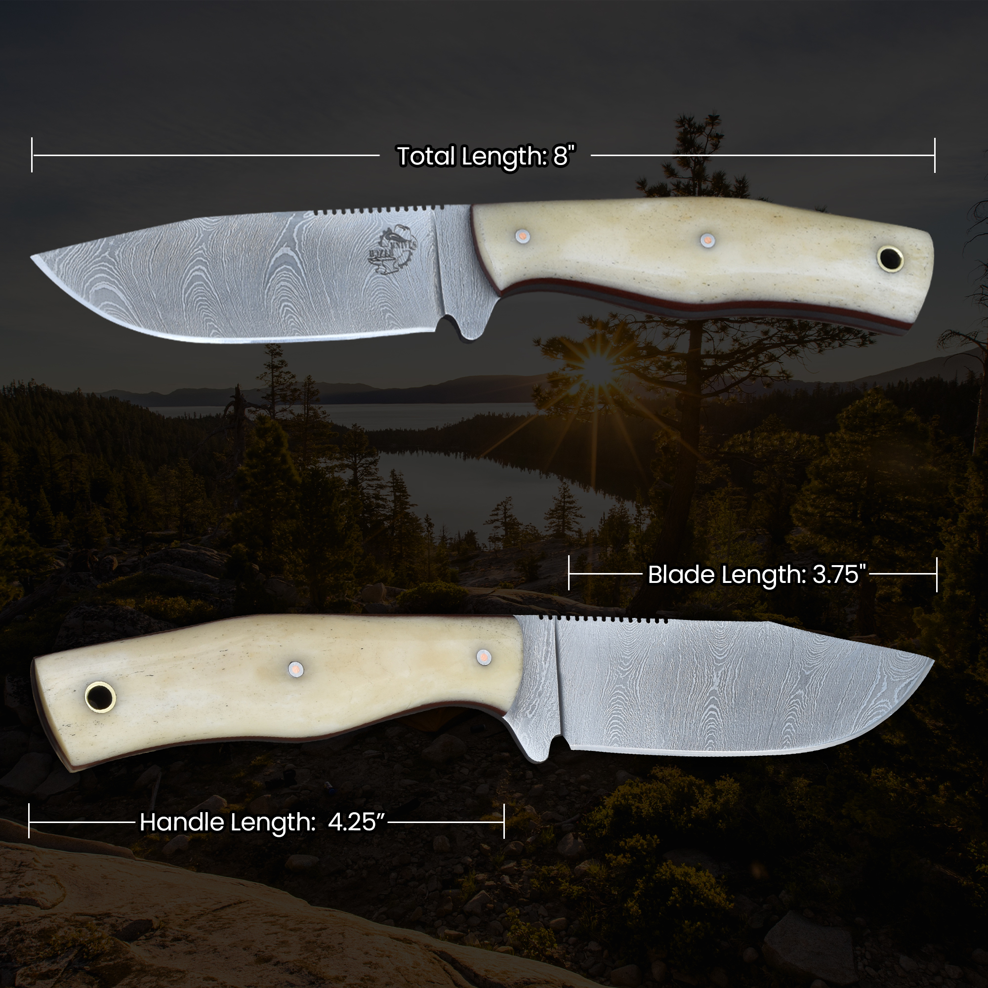 Knives Ranch Signature Damascus Hunting Knife with Bone Handle & Dual Carry Sheath
