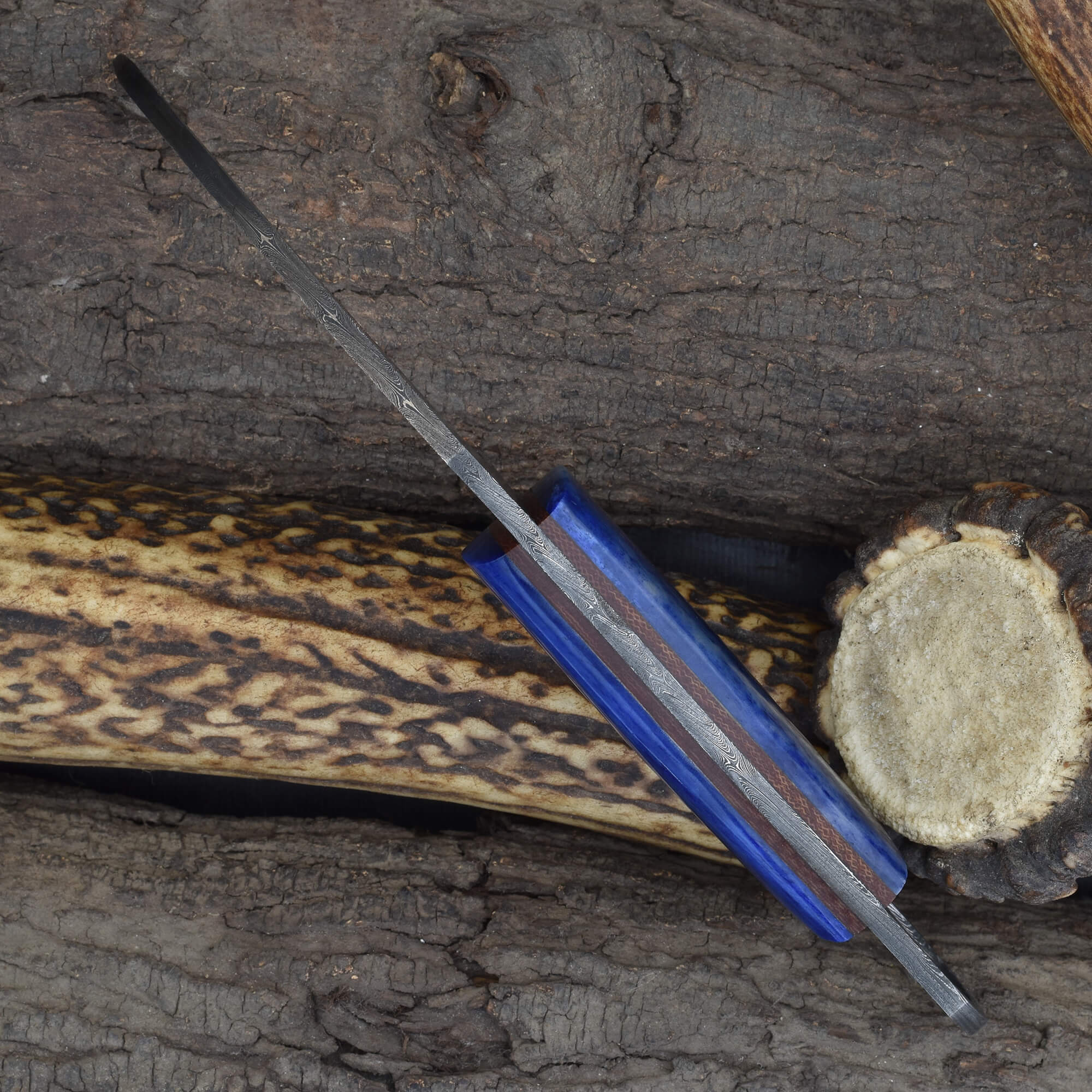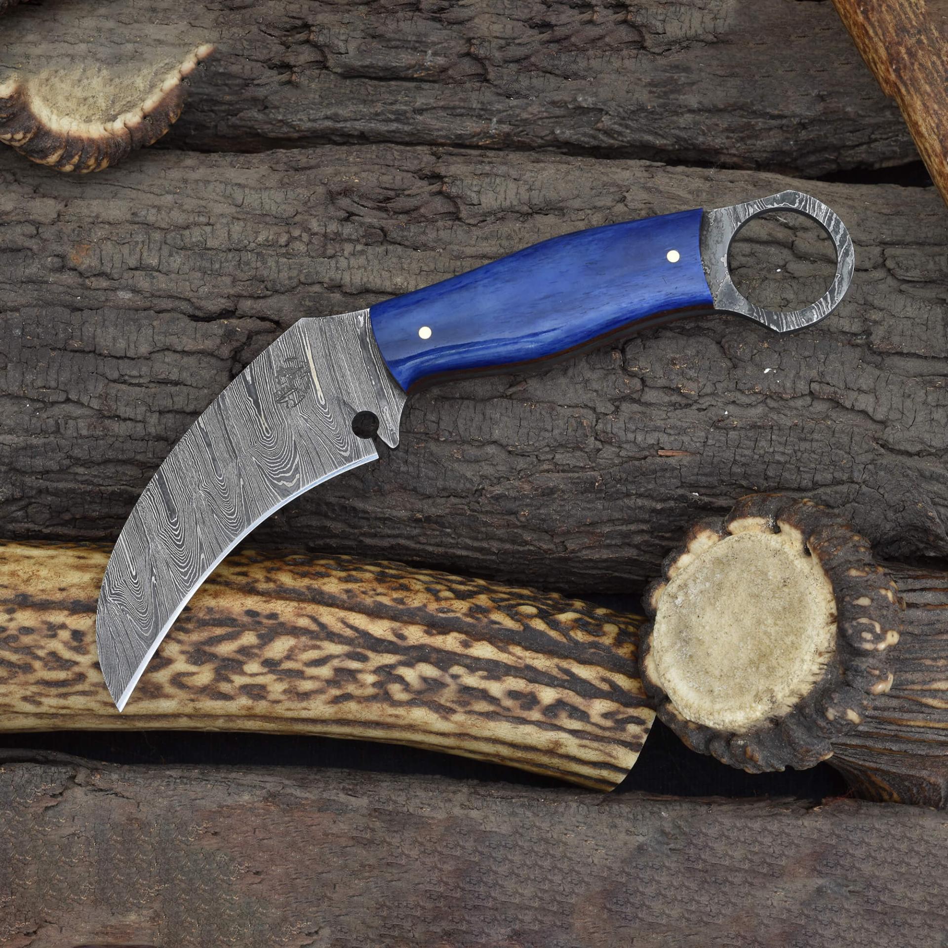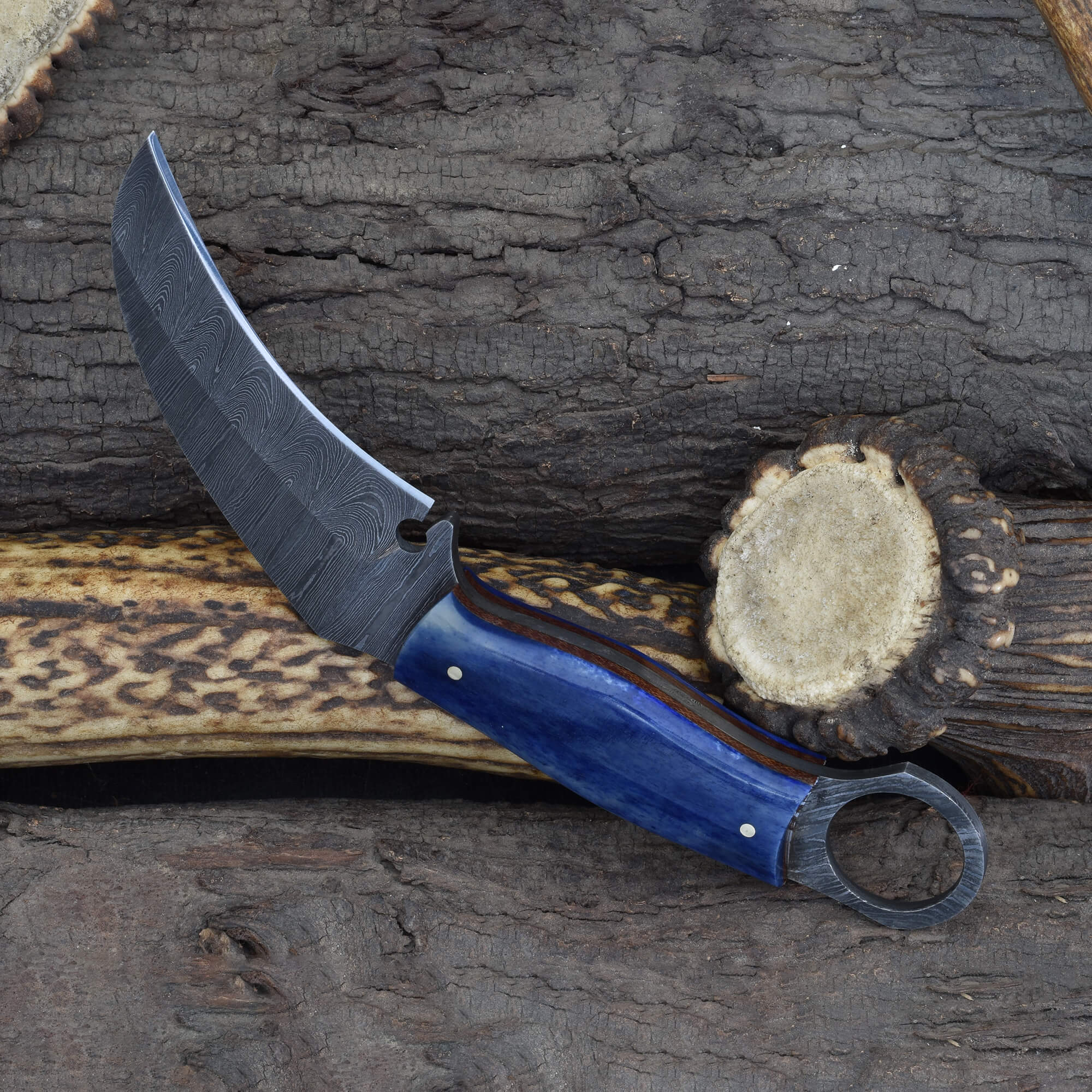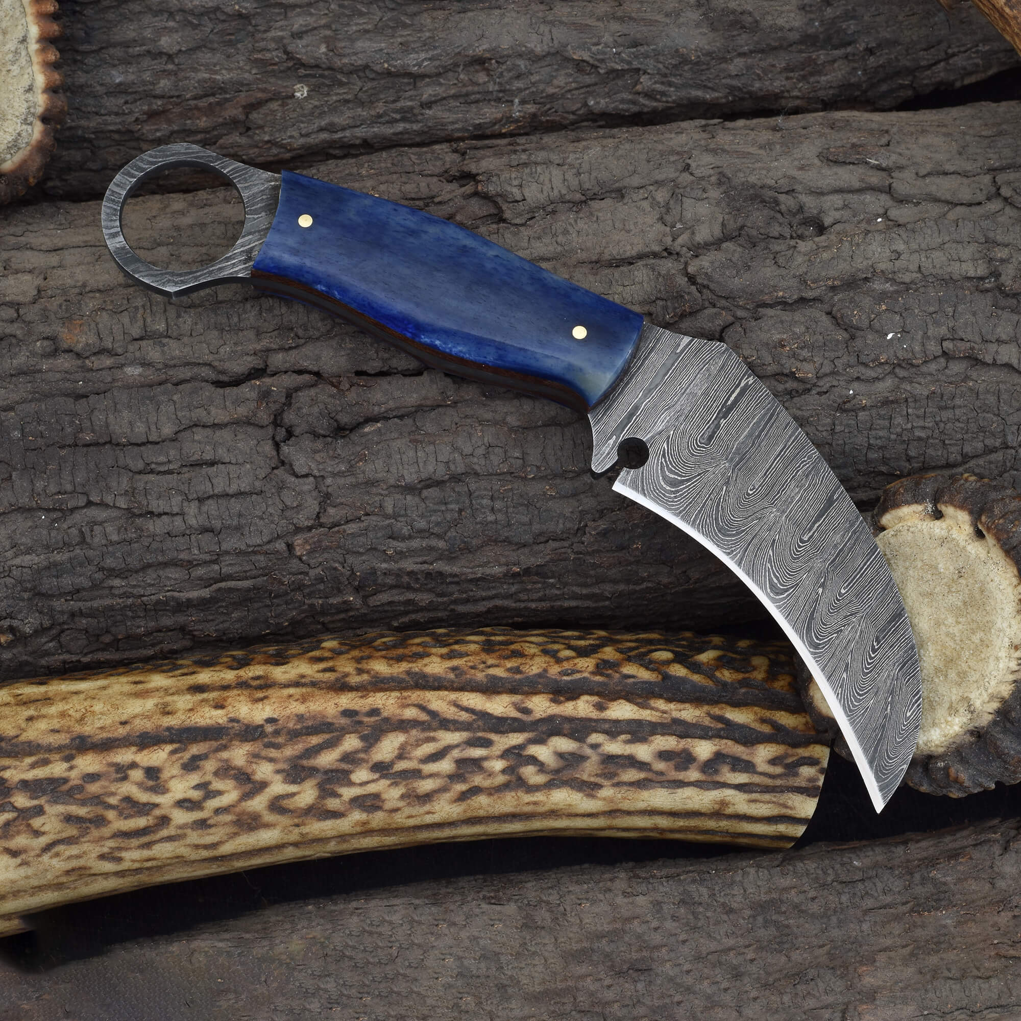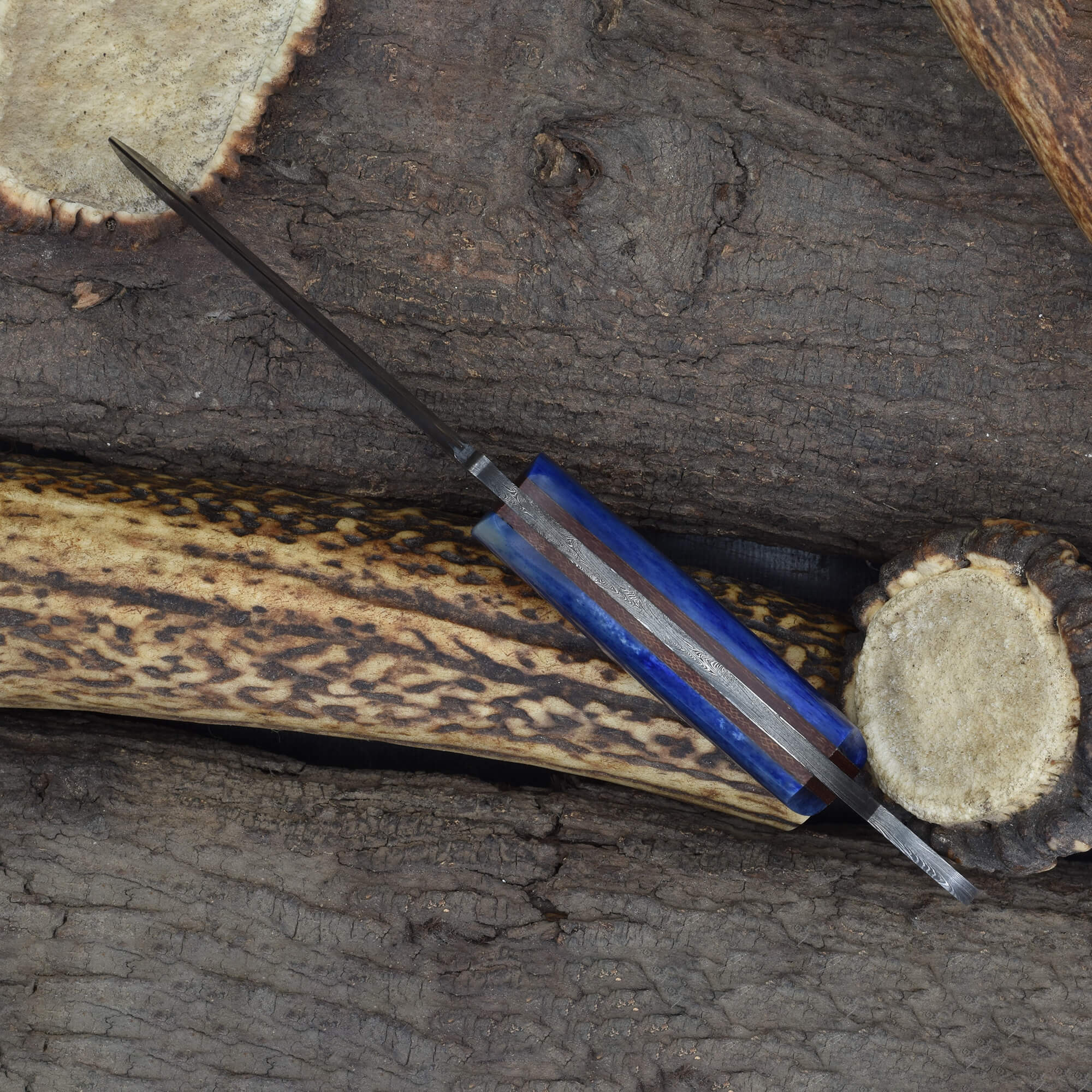Knives Ranch Damascus Tactical Knife with Blue Colored Cattle Bone Handle