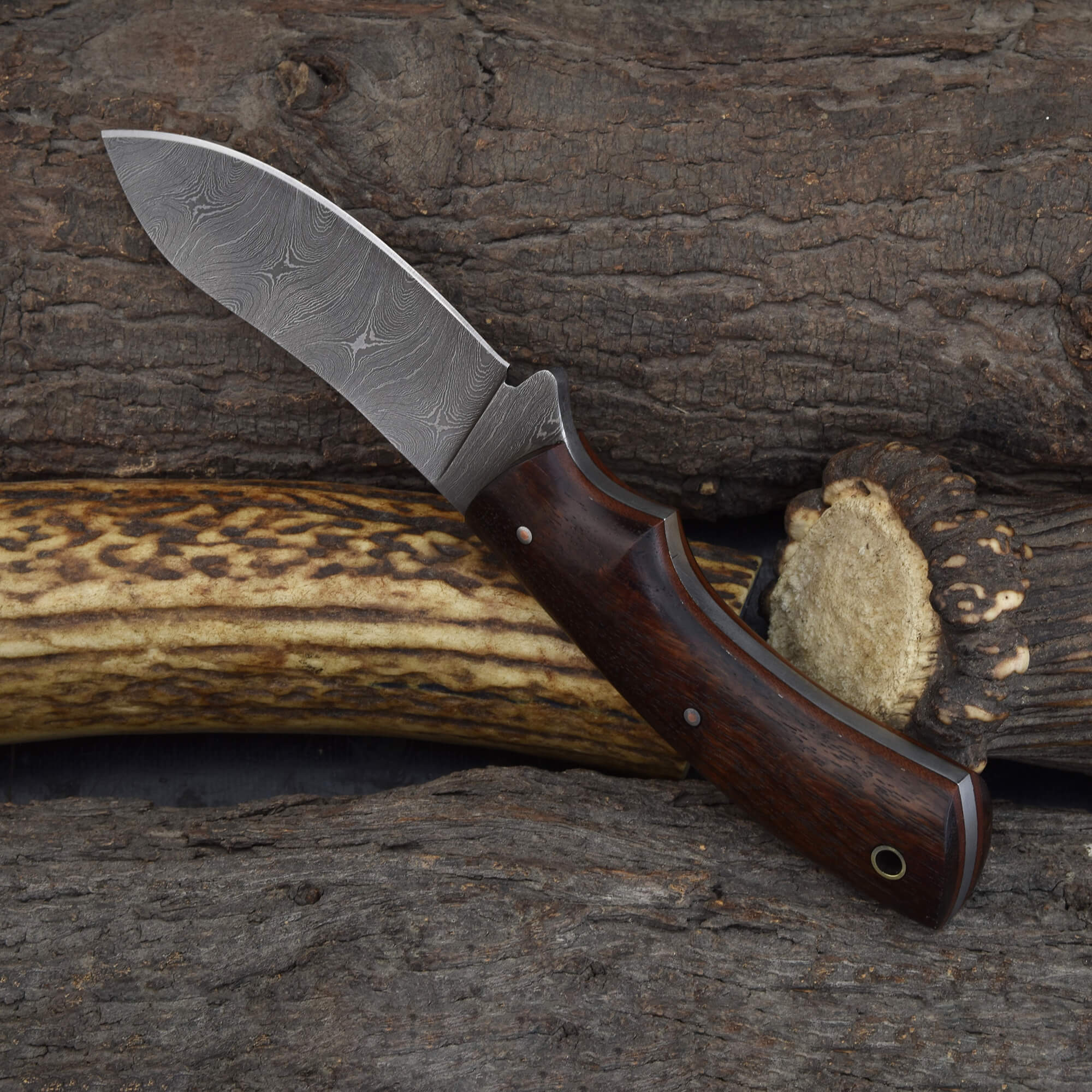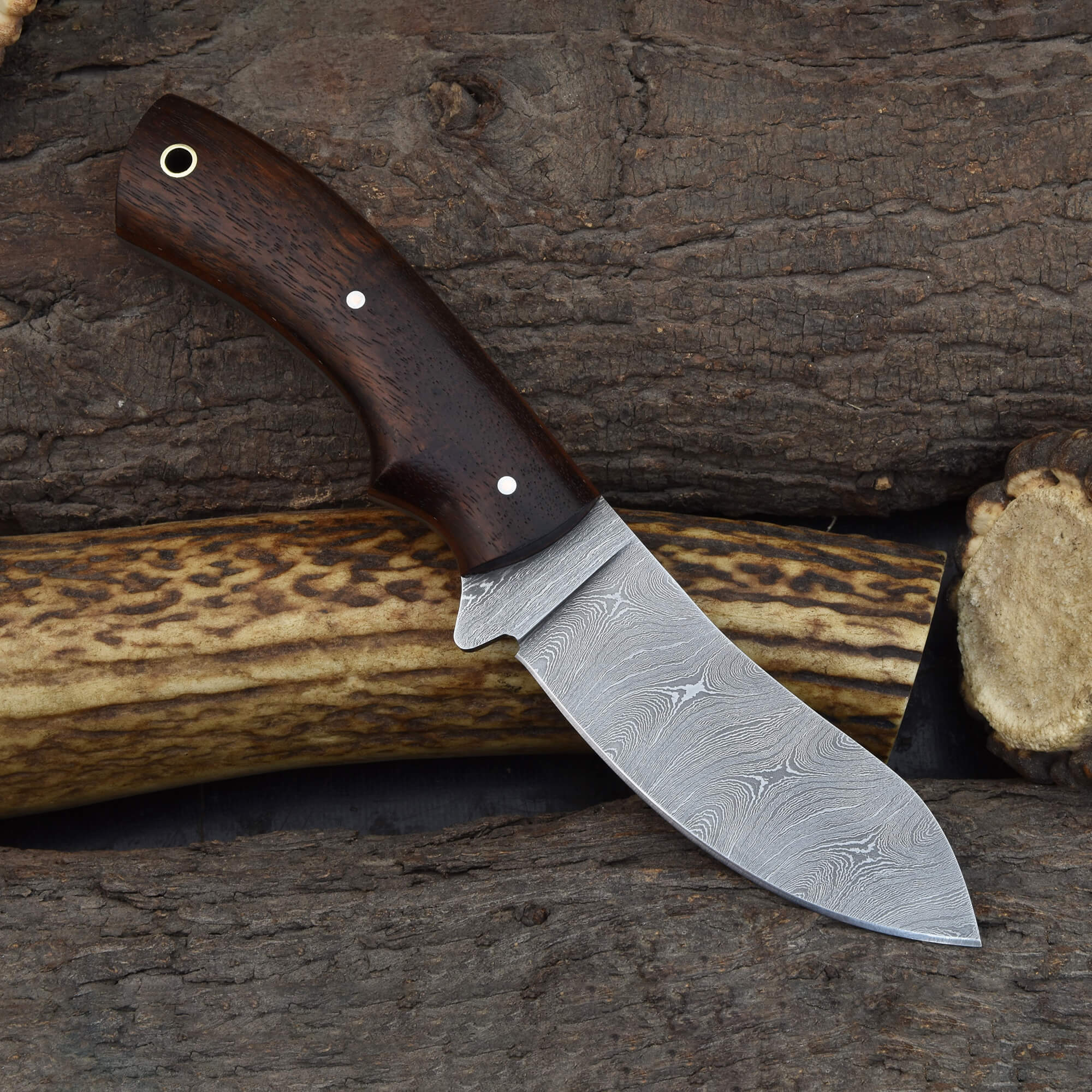 Knives Ranch Damascus Skinning Knife with Rosewood Handle
