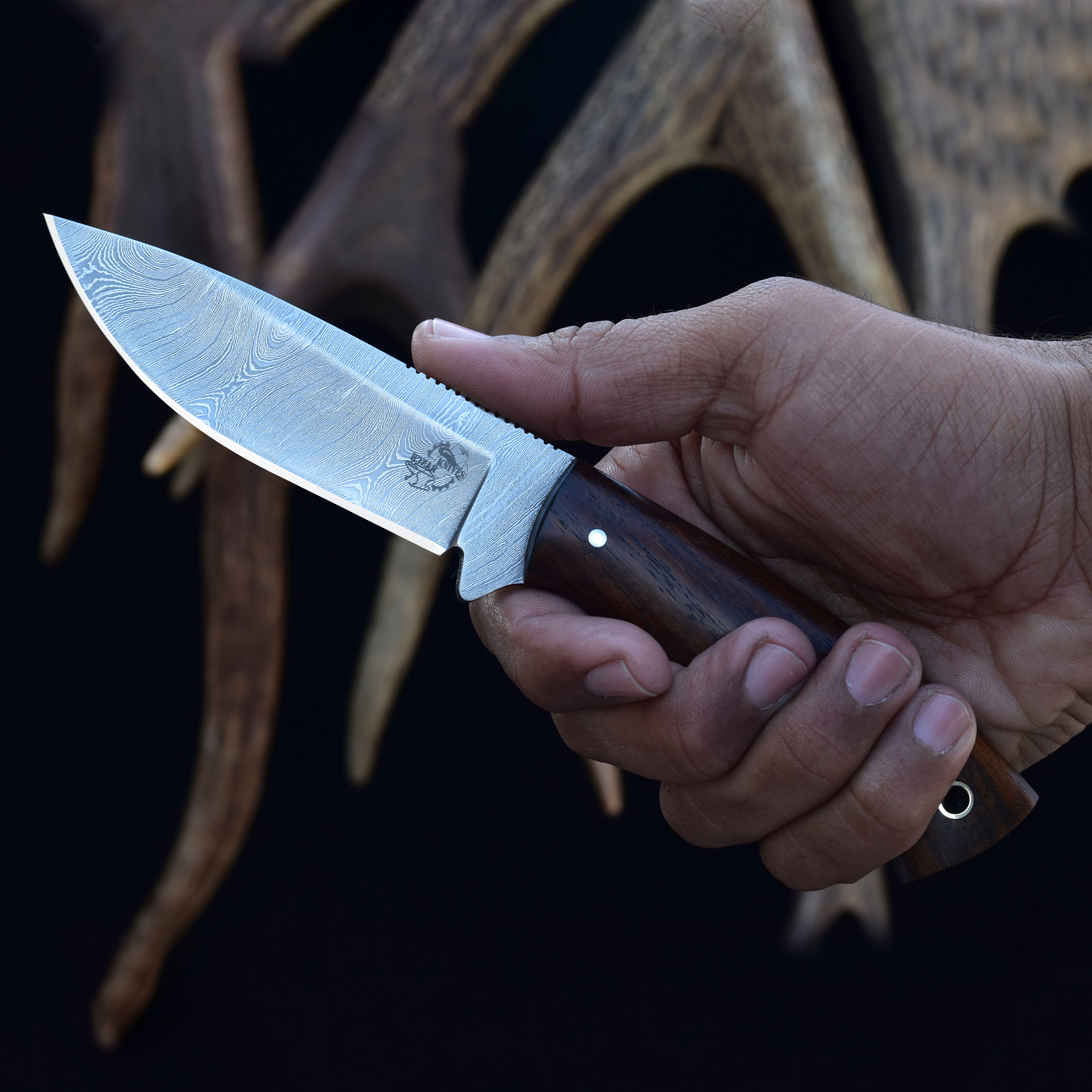 Enhance your outdoor gear with the Knives Ranch Damascus bushcraft knife, designed for durability and precision. Perfect as a Knives Ranch Damascus steel bushcraft knife, it blends functionality with elegant craftsmanship. For those who seek a reliable and stylish blade, this knife with a rosewood handle is an excellent choice.
