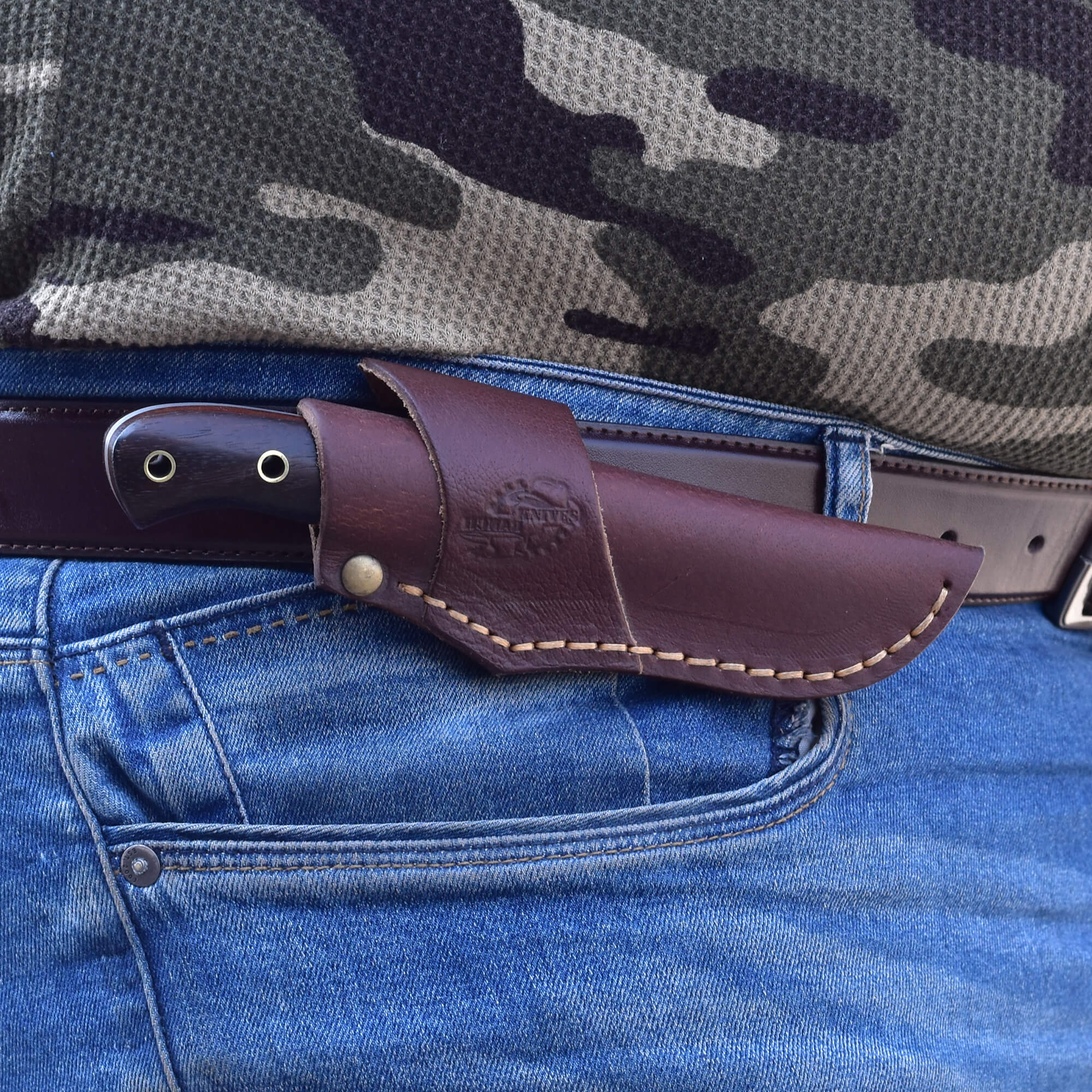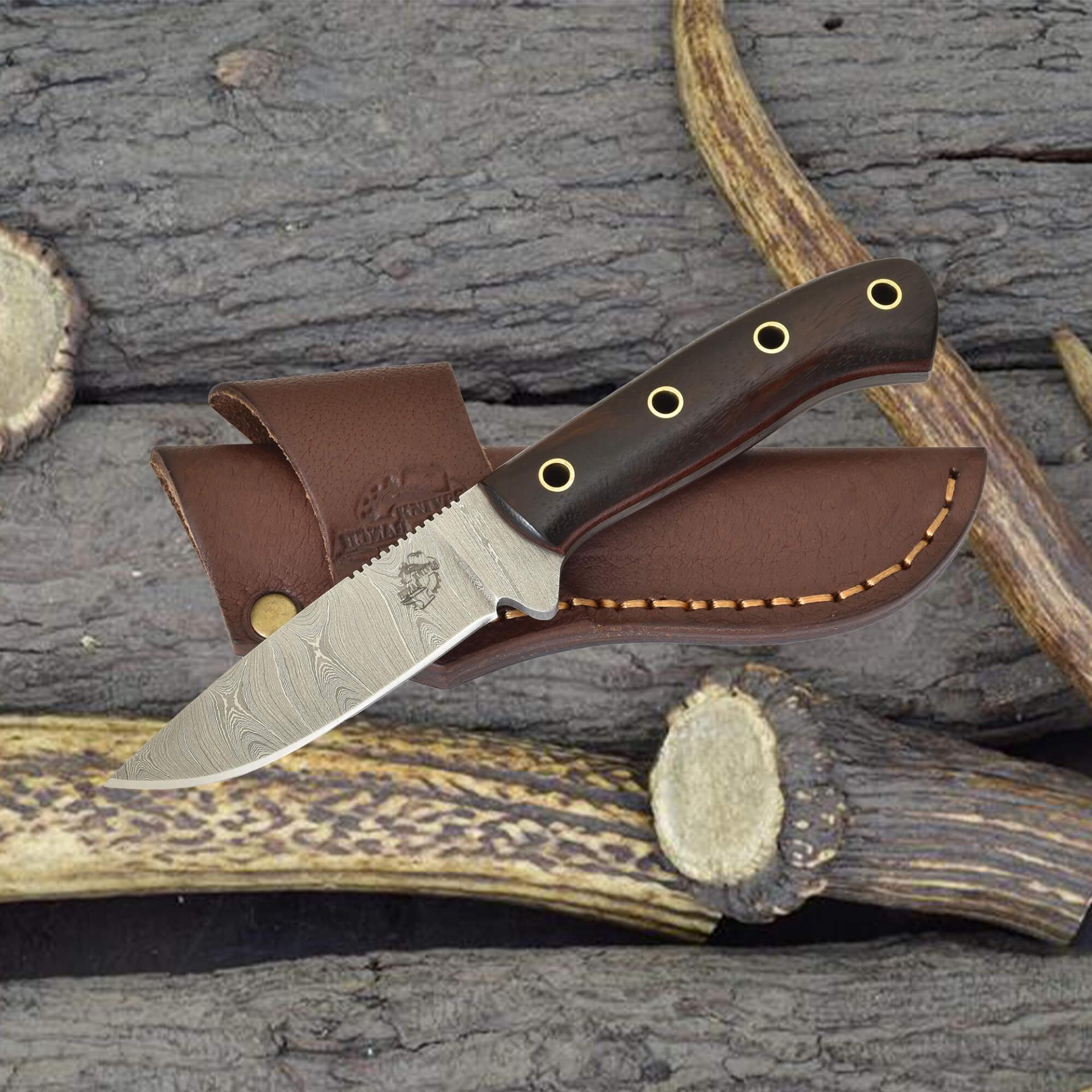 Enhance your daily carry with the Knives Ranch Damascus EDC Knife, featuring a 3.5" blade forged from premium Damascus steel for exceptional sharpness and strength. Designed for versatility, this compact knife excels at everyday tasks while offering lasting durability. The rosewood handle with fiber liner ensures a secure, comfortable grip, and the Vegetable Tanned Leather sheath allows a horizontal belt loop for convenient and flexible carry.