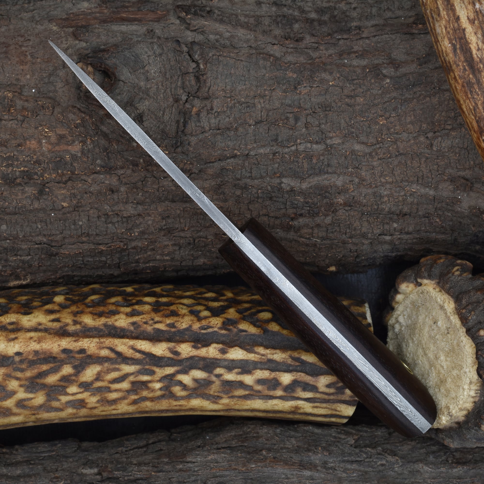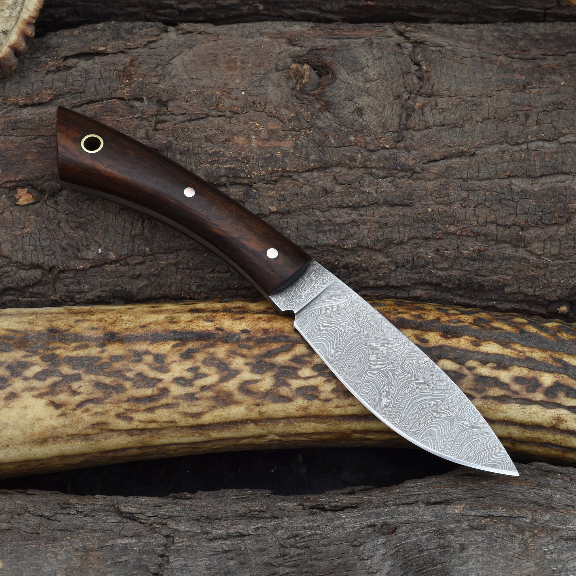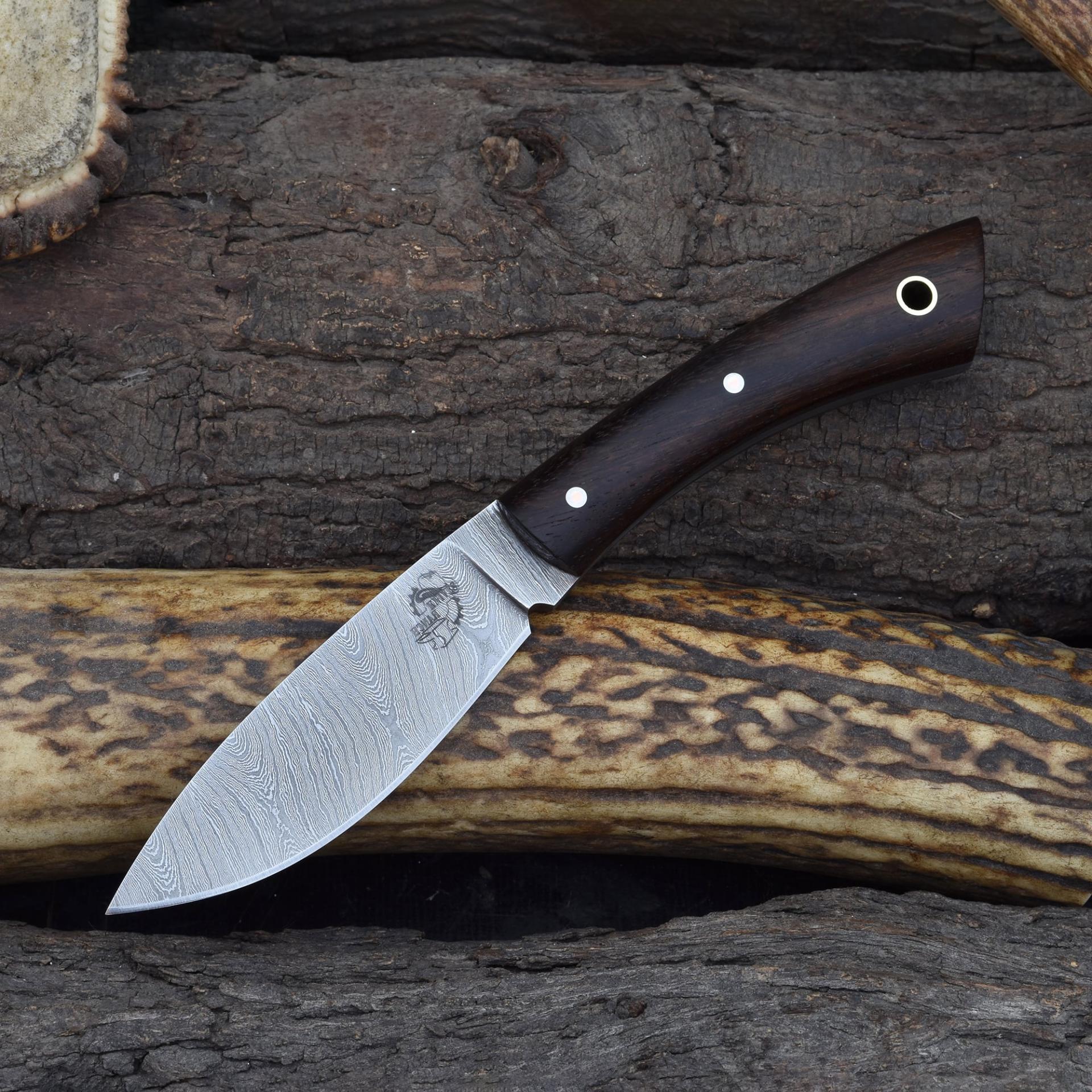 Enhance your hunting gear with the Knives Ranch Damascus skinning knife, designed for those who demand craftsmanship and reliability. Combining classic materials and expert forging, this knife is the perfect companion for any outdoor enthusiast.