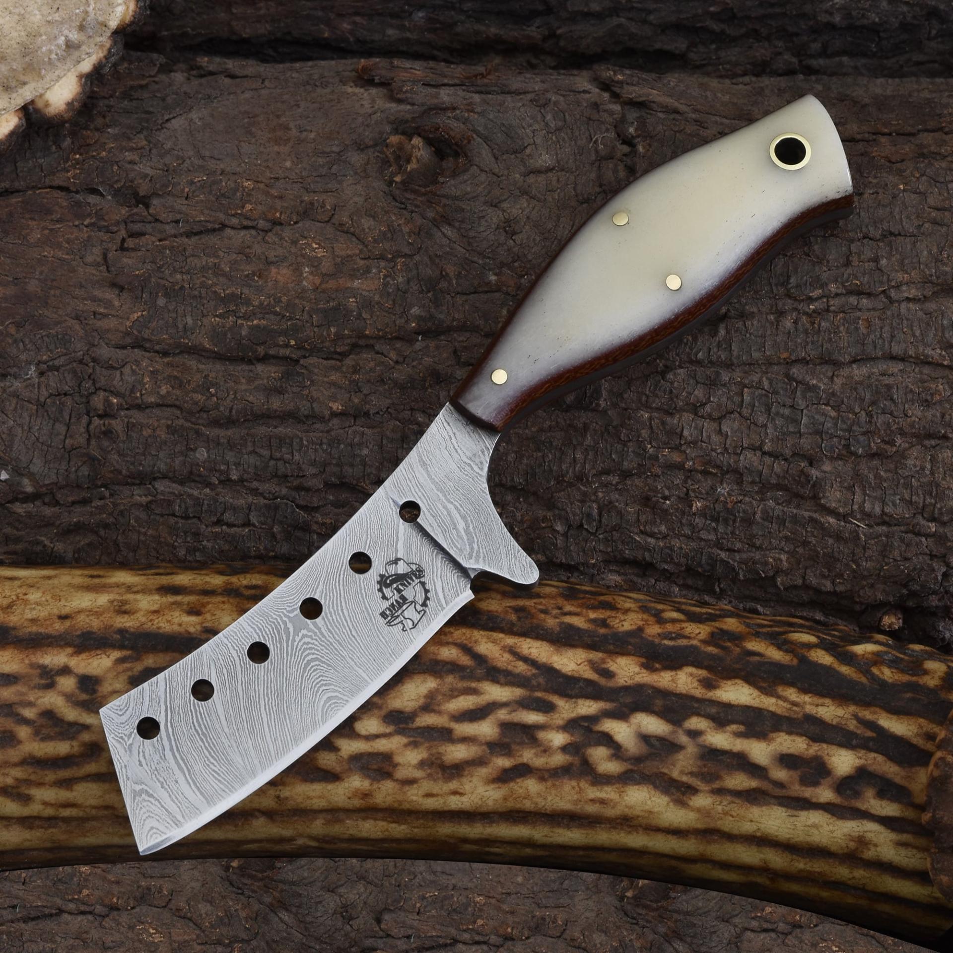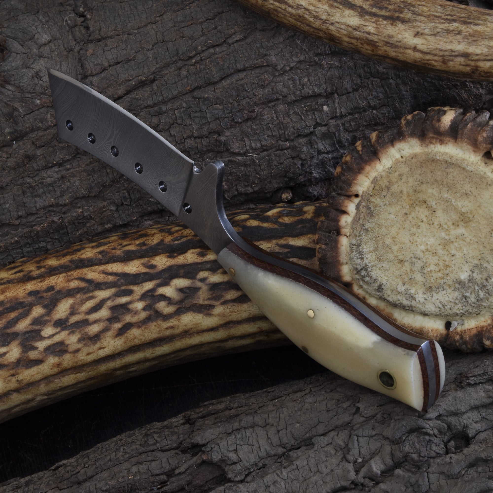 Knives Ranch Damascus EDC Knife with Bone Handle and Dual Carry Sheath