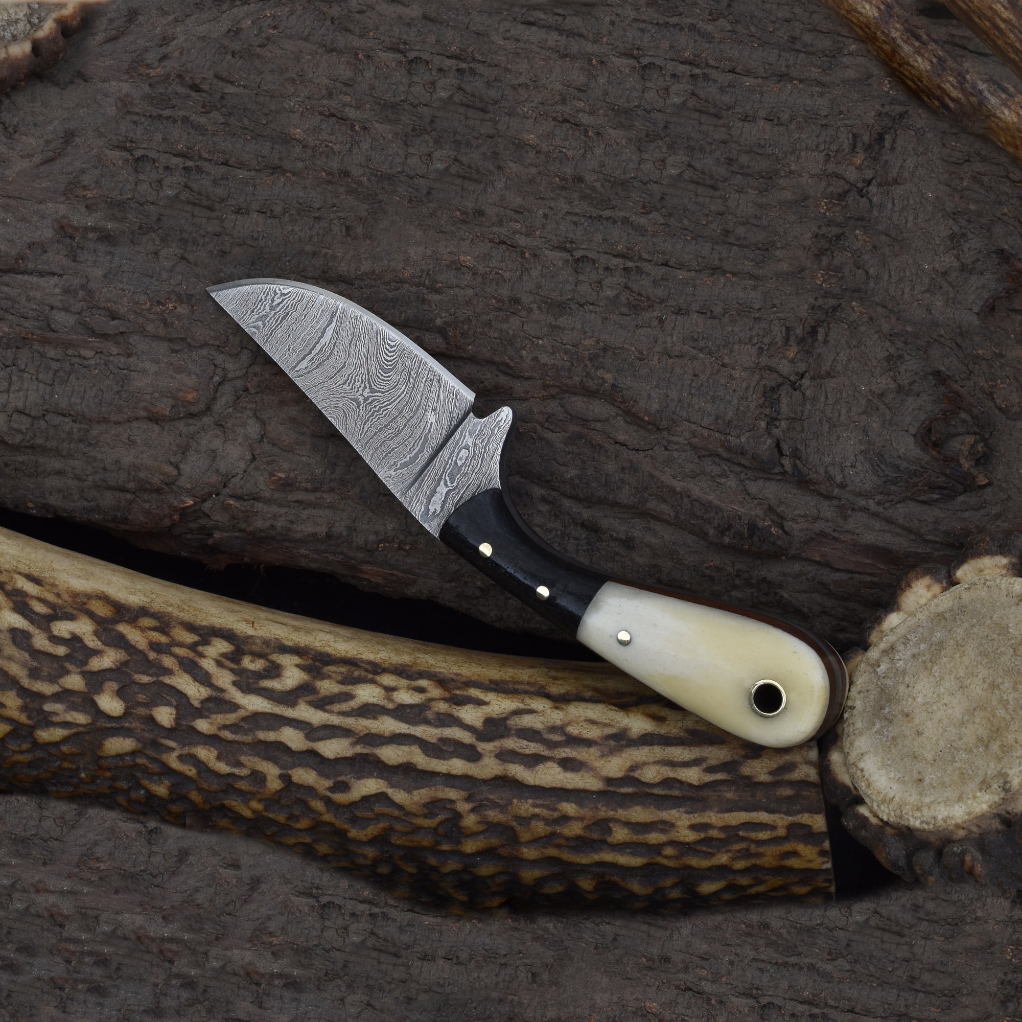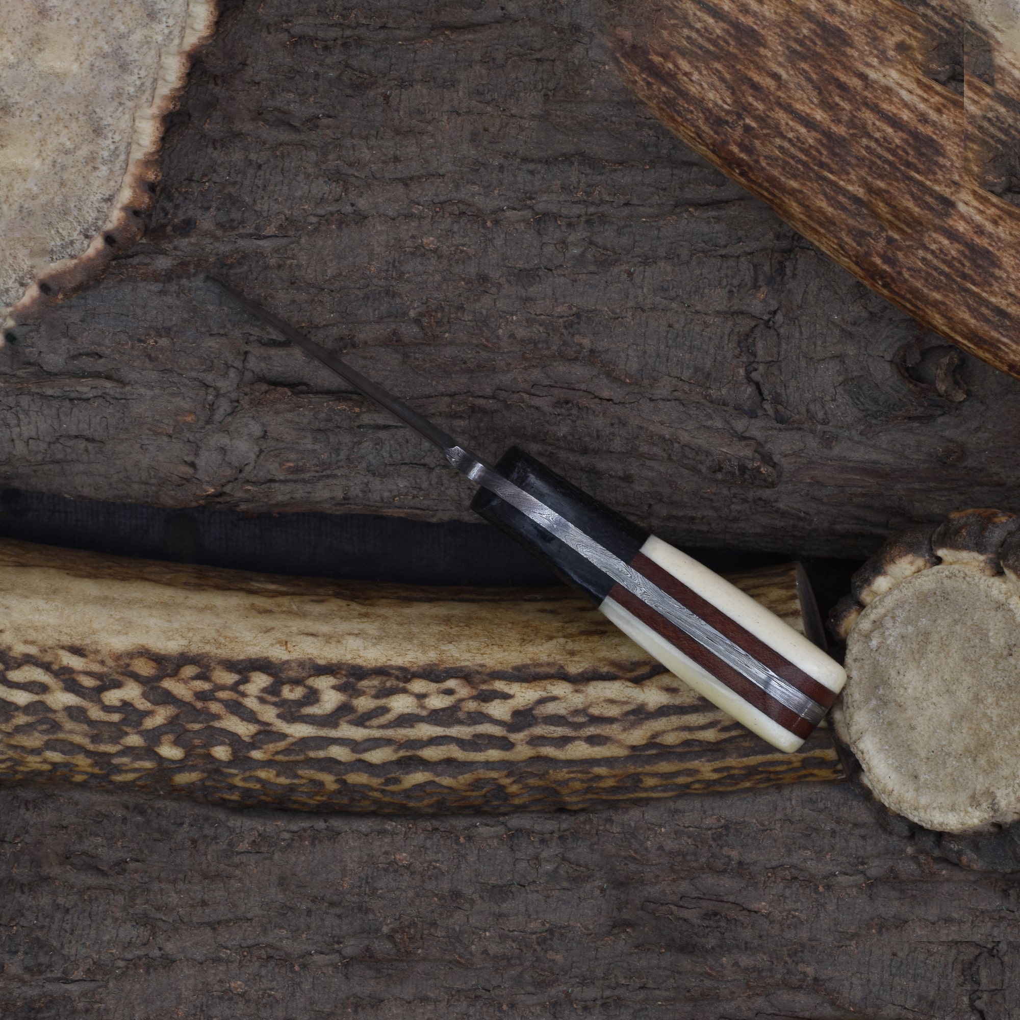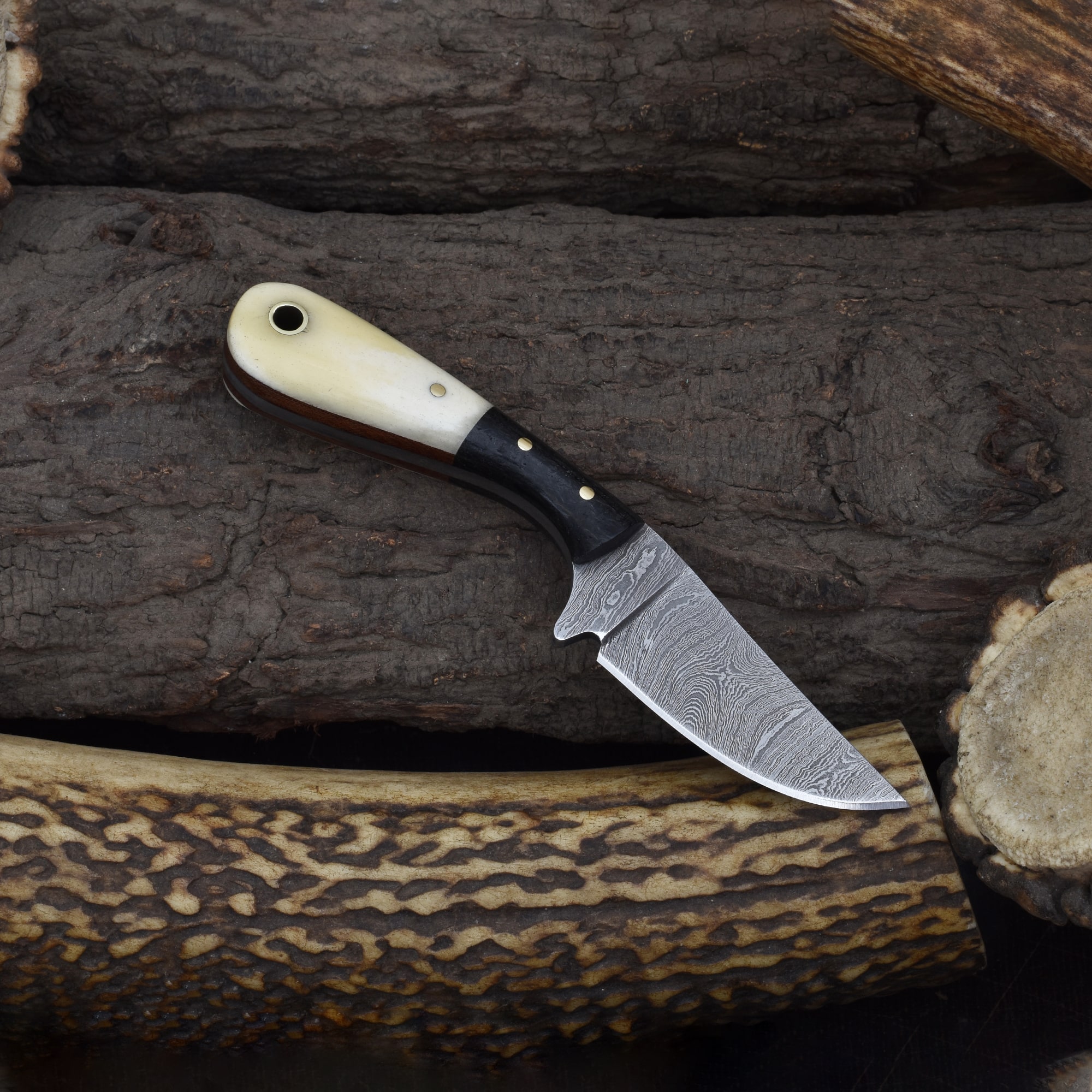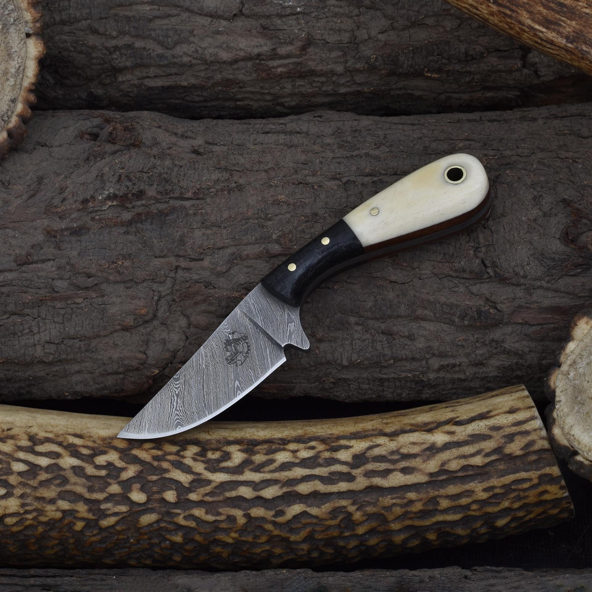Knives Ranch Damascus Neck Knife with Bone Handle and Fiber Liner