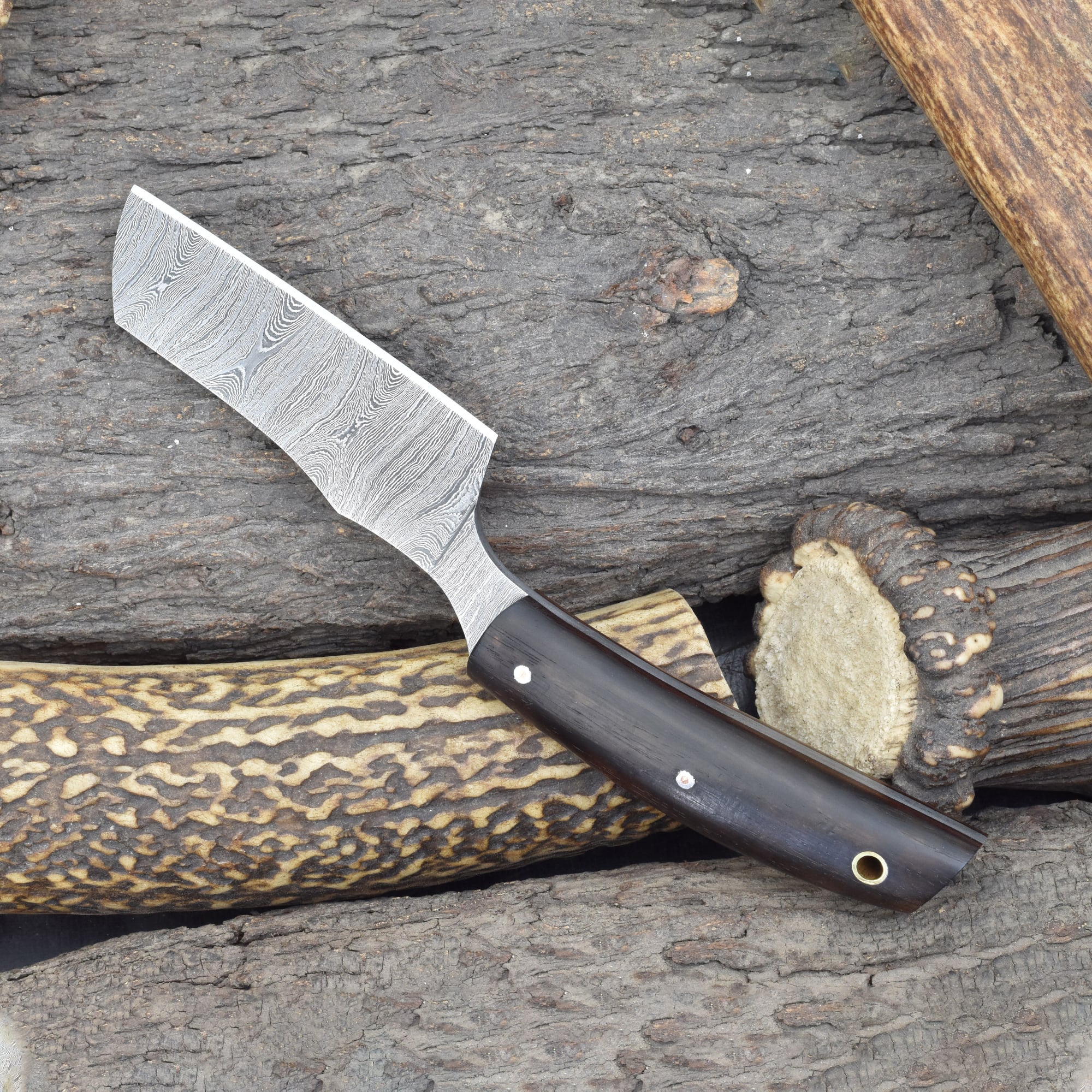 The handle, made from stabilized rosewood with a fiber liner, provides both comfort and durability, while the Damascus steel blade showcases unmatched sharpness and unique patterns. Complete with a handcrafted Vegetable Tanned Leather sheath featuring a vertical belt loop, this knife is designed for practical carry and long-lasting performance. Perfect for hunters, outdoorsmen, and collectors who appreciate fine craftsmanship.