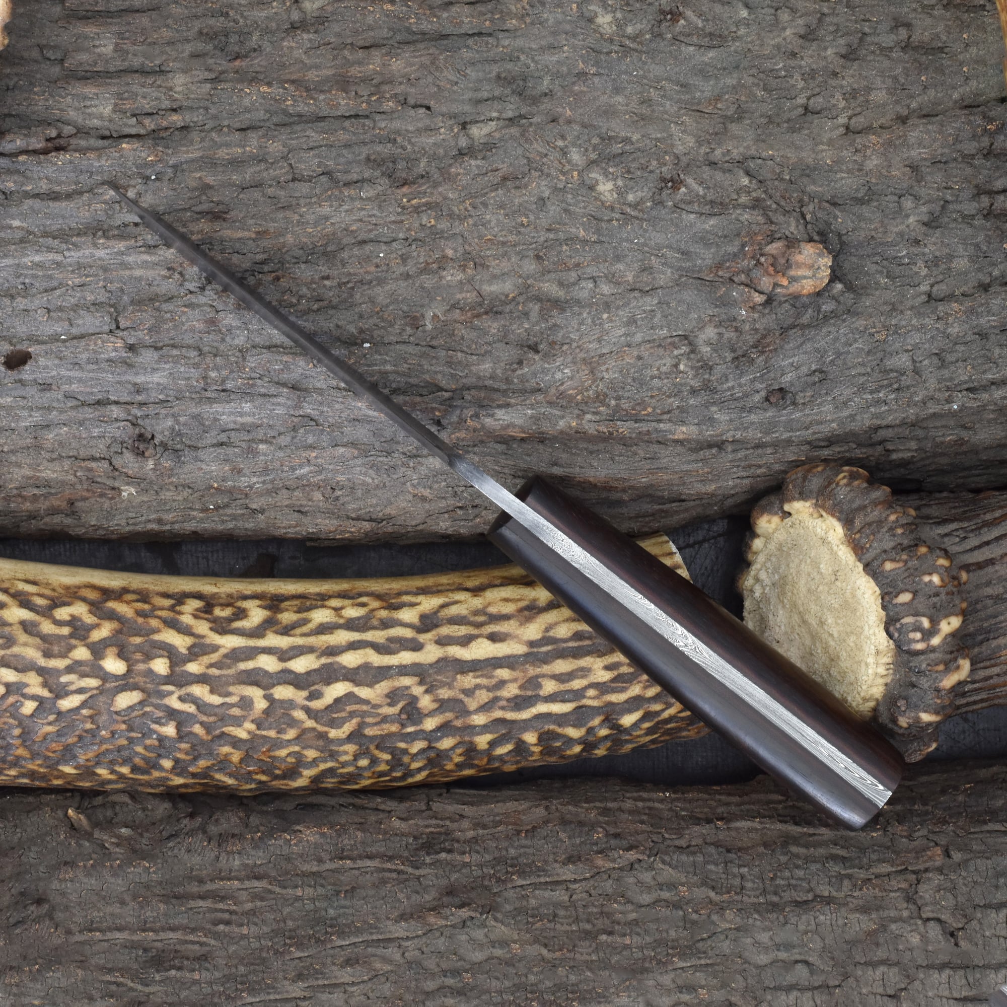Compact yet powerful, this Knives Ranch Damascus hunting knife is crafted for precision, durability, and timeless style. Featuring a 3-1/4" cutting edge and an overall length of 7-1/2", it delivers reliable performance for field use, outdoor adventures, and everyday tasks.