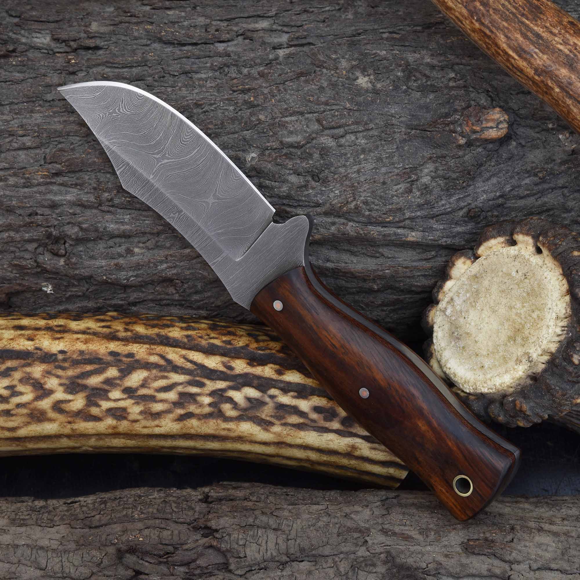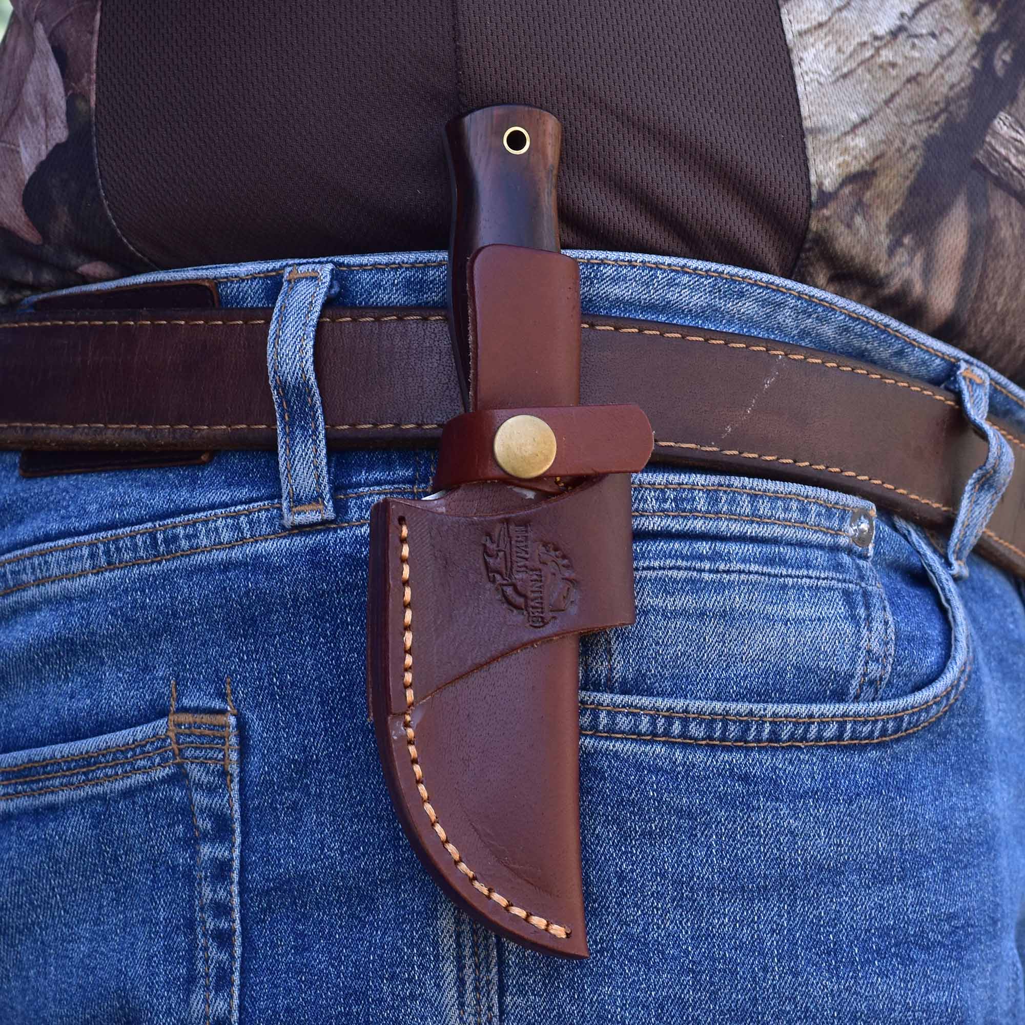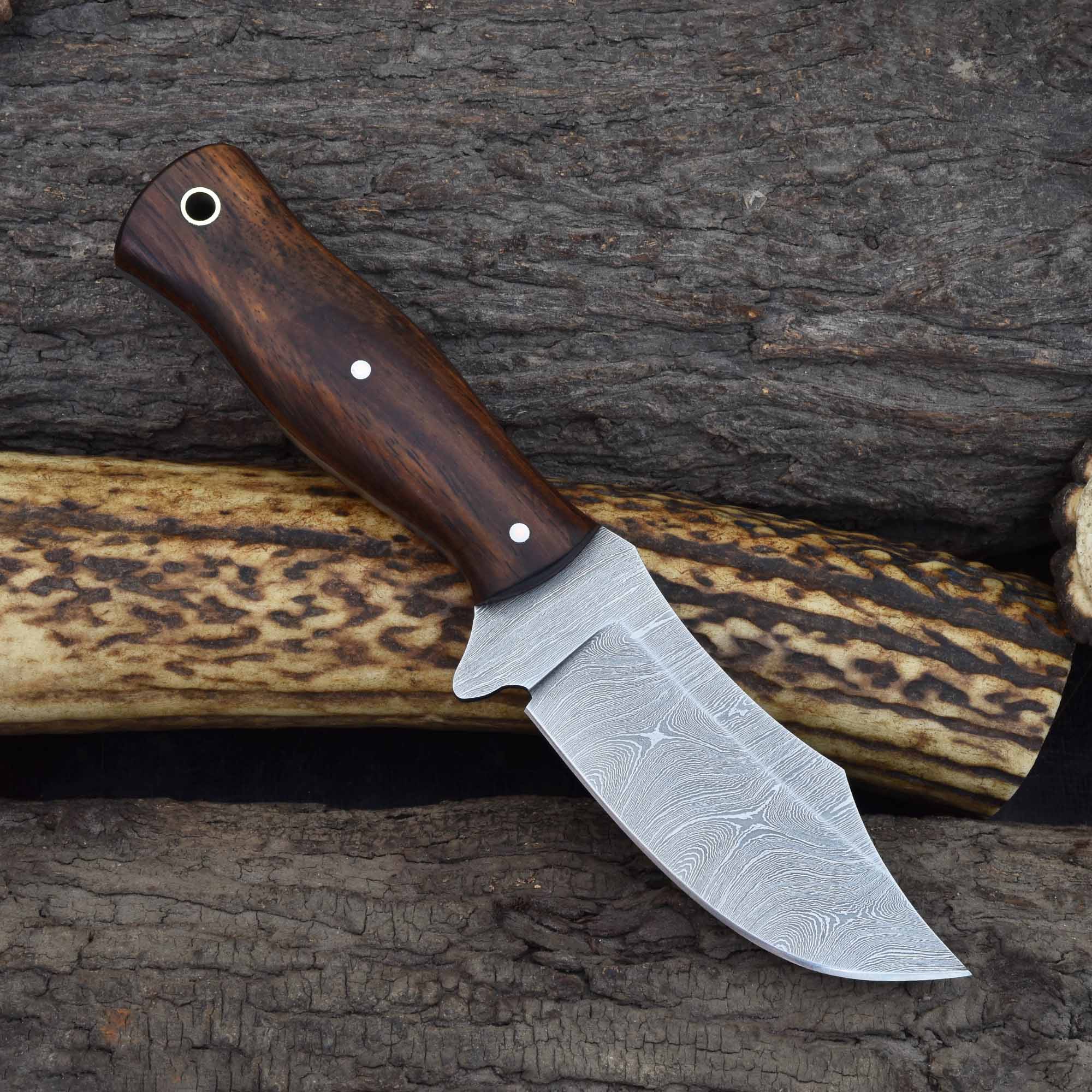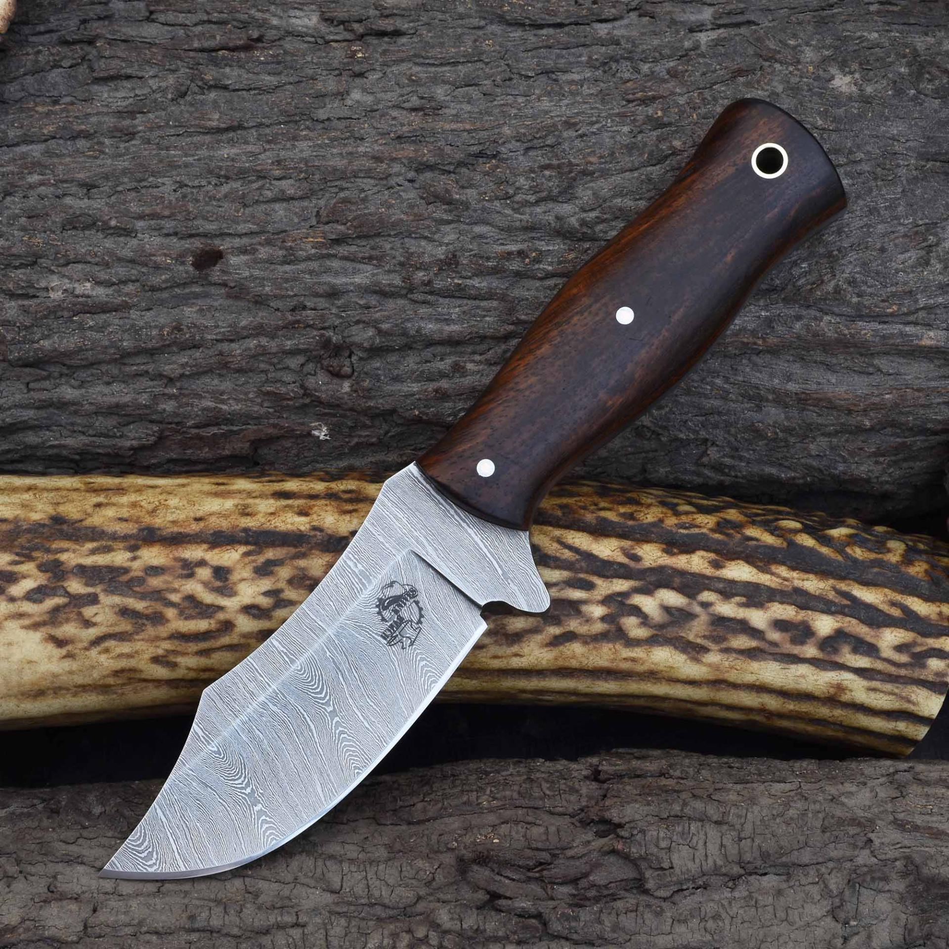 Knives Ranch Damascus Hunting Knife with Stabilized Rosewood Handle and Dual Carry Sheath
