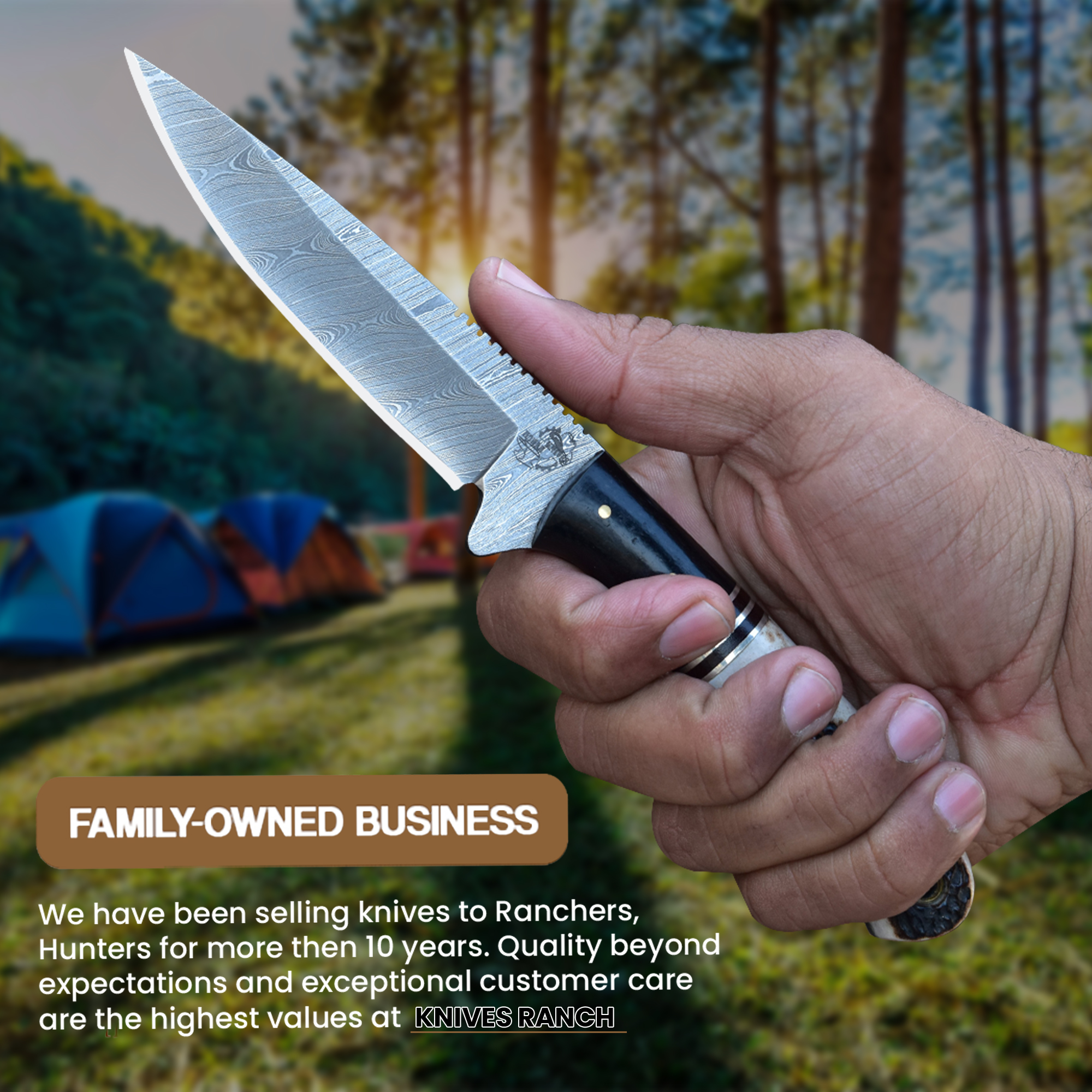 Knives Ranch Durable Damascus Steel Knife with Bone Handle