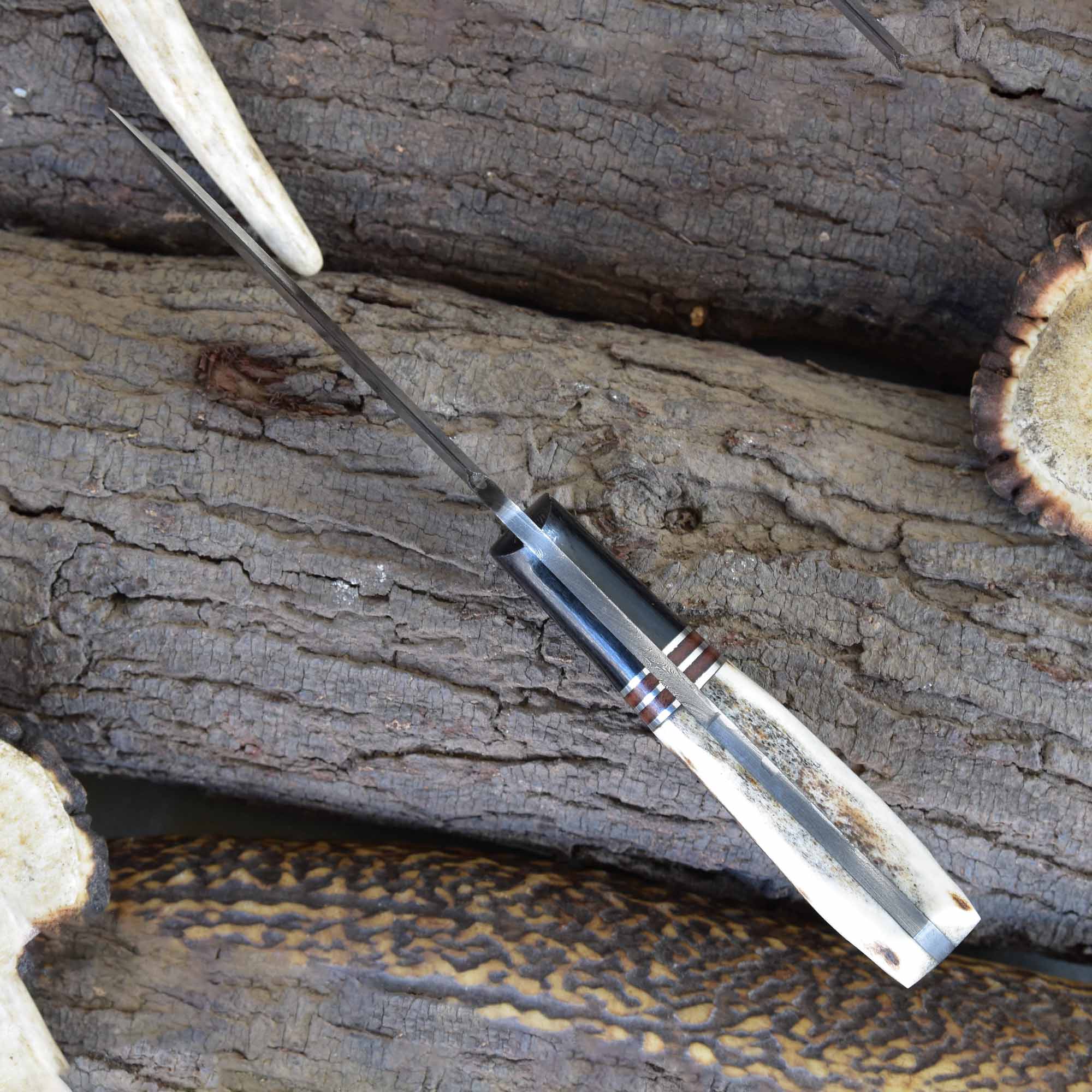 A go-to choice for any serious hunter, this knife is ideal as a Damascus field knife with antler handle, a reliable custom skinning blade for game processing, and a standout Micarta and antler fixed blade for rugged terrain.