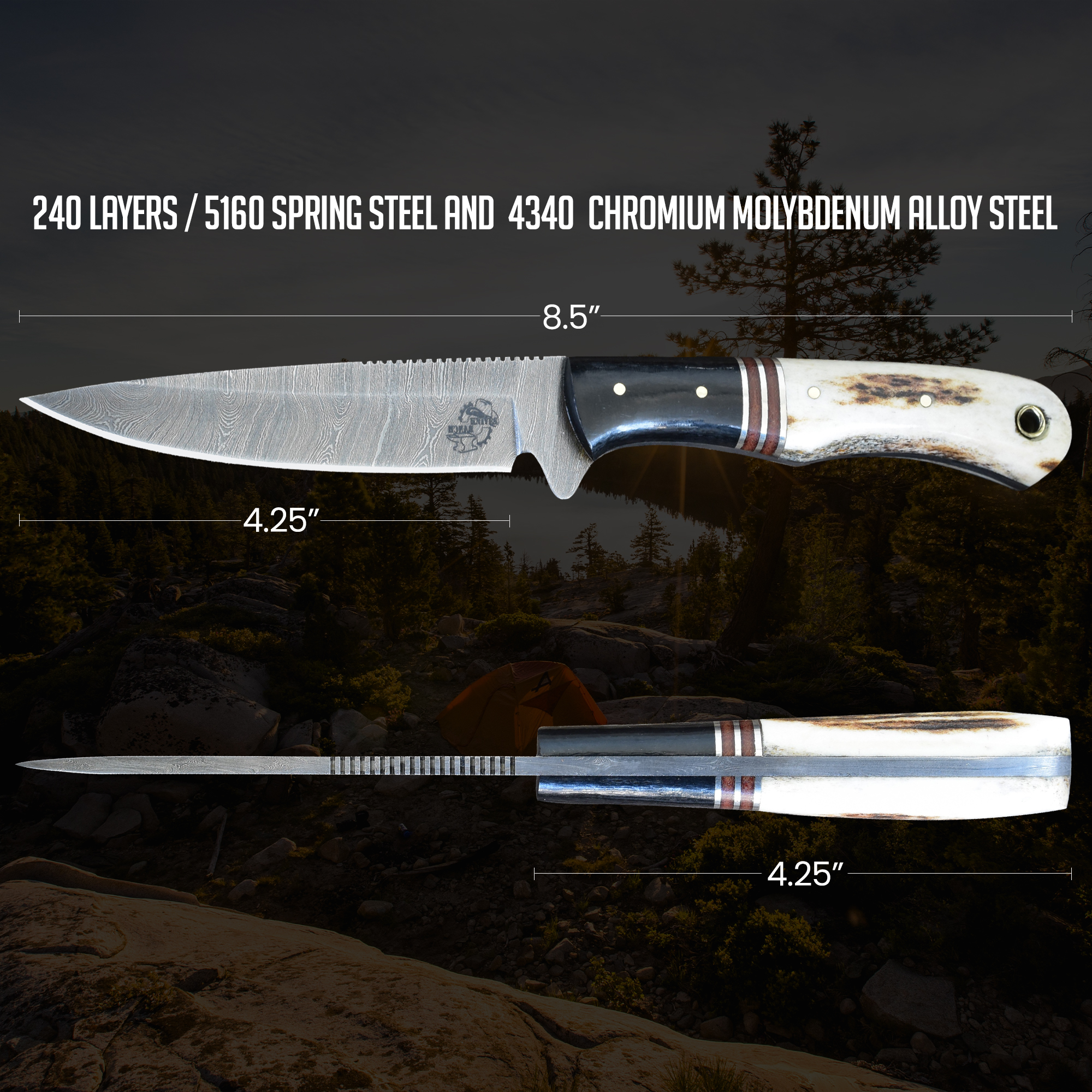 | Blade Steel | 240 Layers Forged Carbon Steel Damascus (5160/4340) |