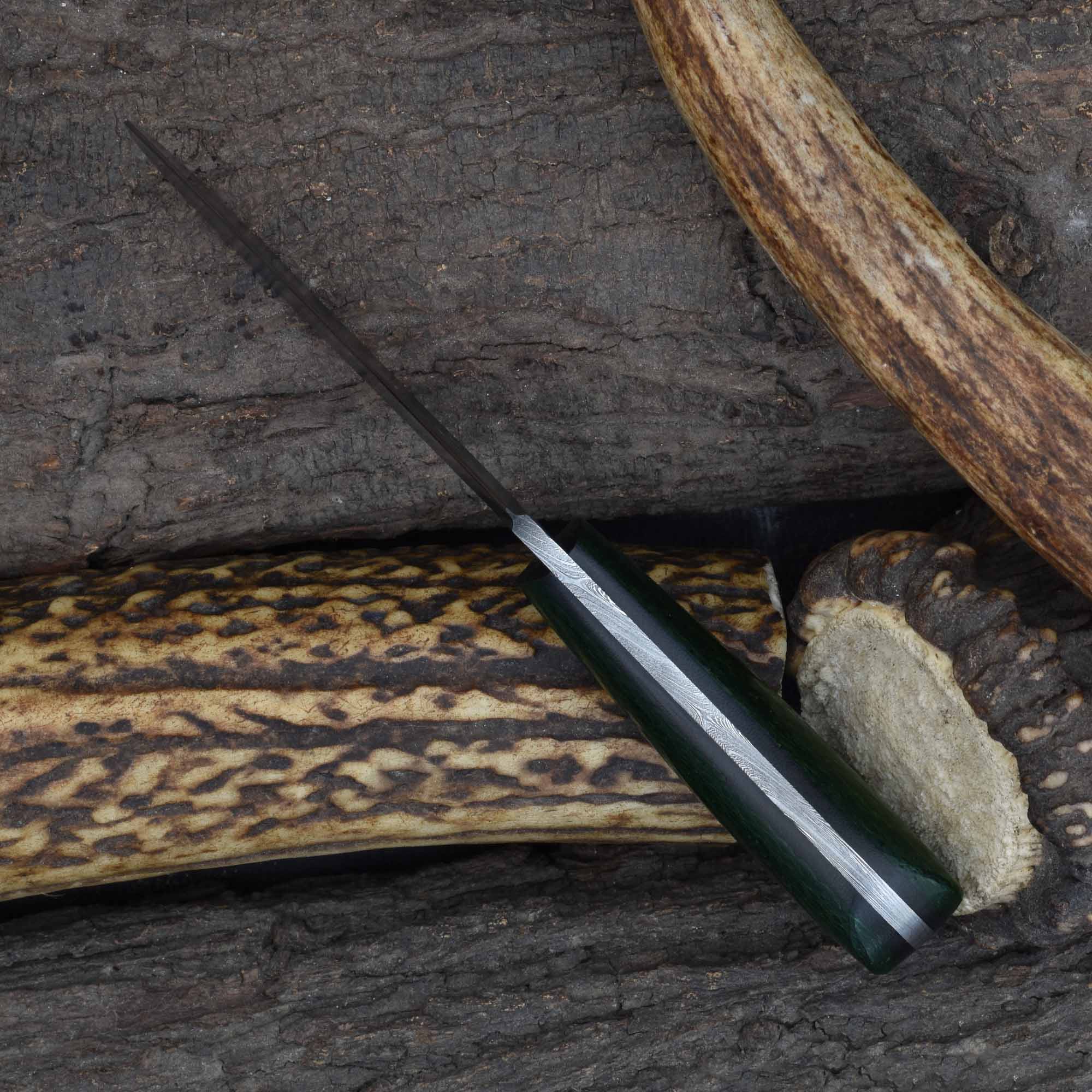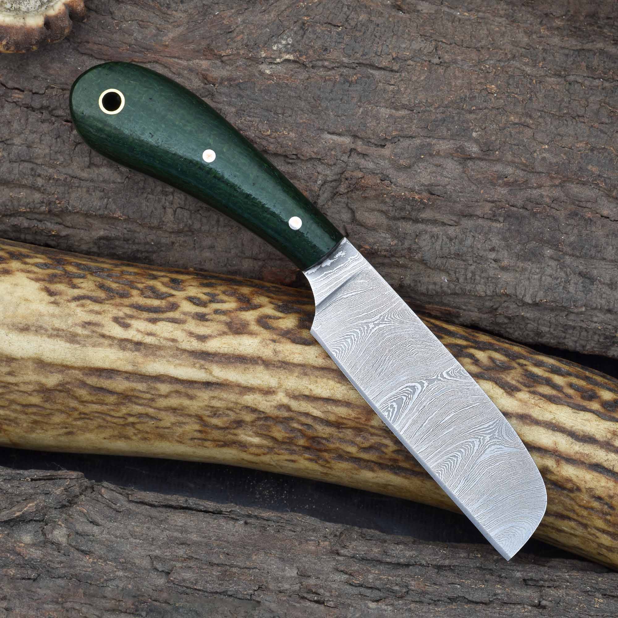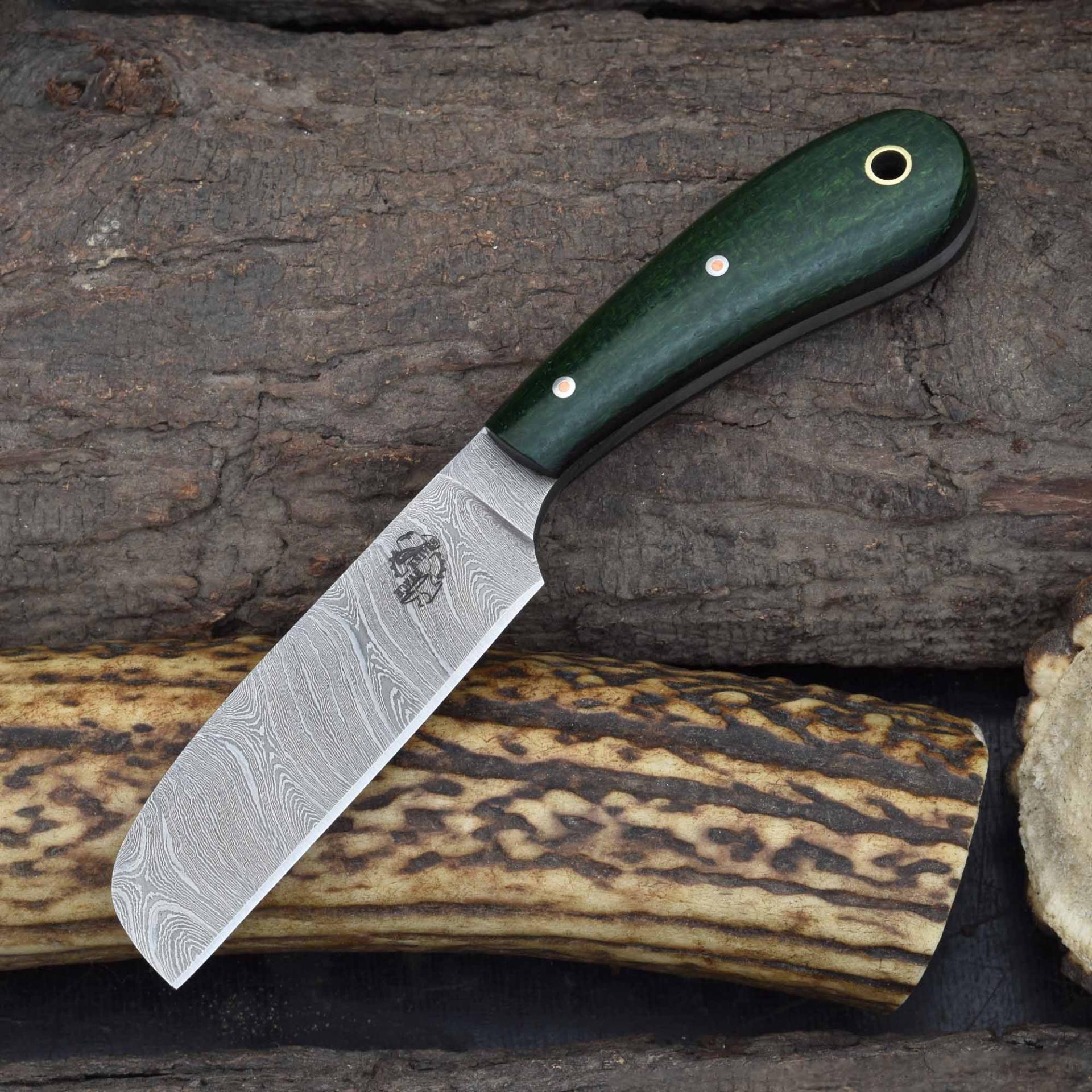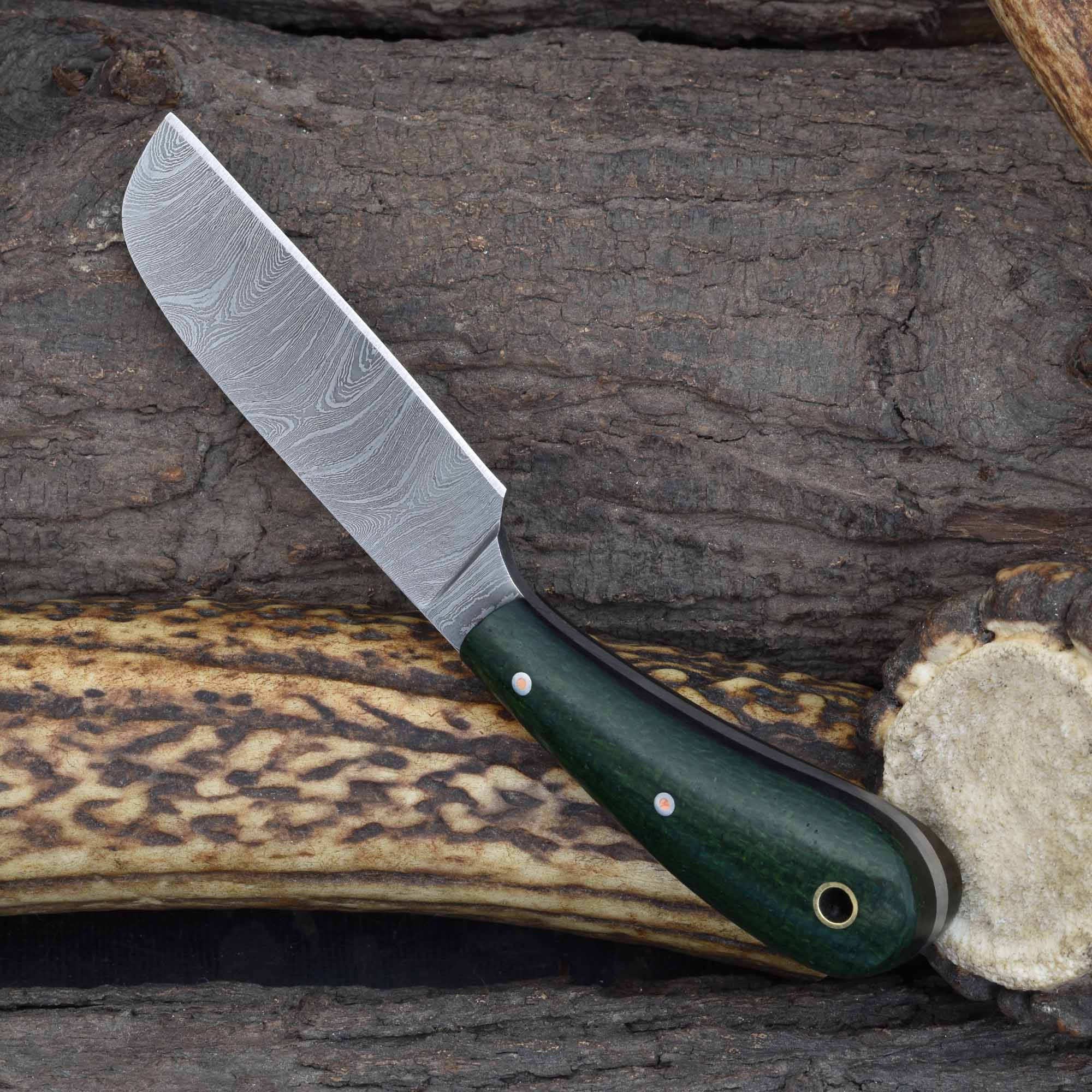 Enhance your tool collection with this kale green Micarta fixed blade for livestock management, a reliable Damascus steel veterinary knife, and a rugged field castration knife for demanding outdoor tasks.