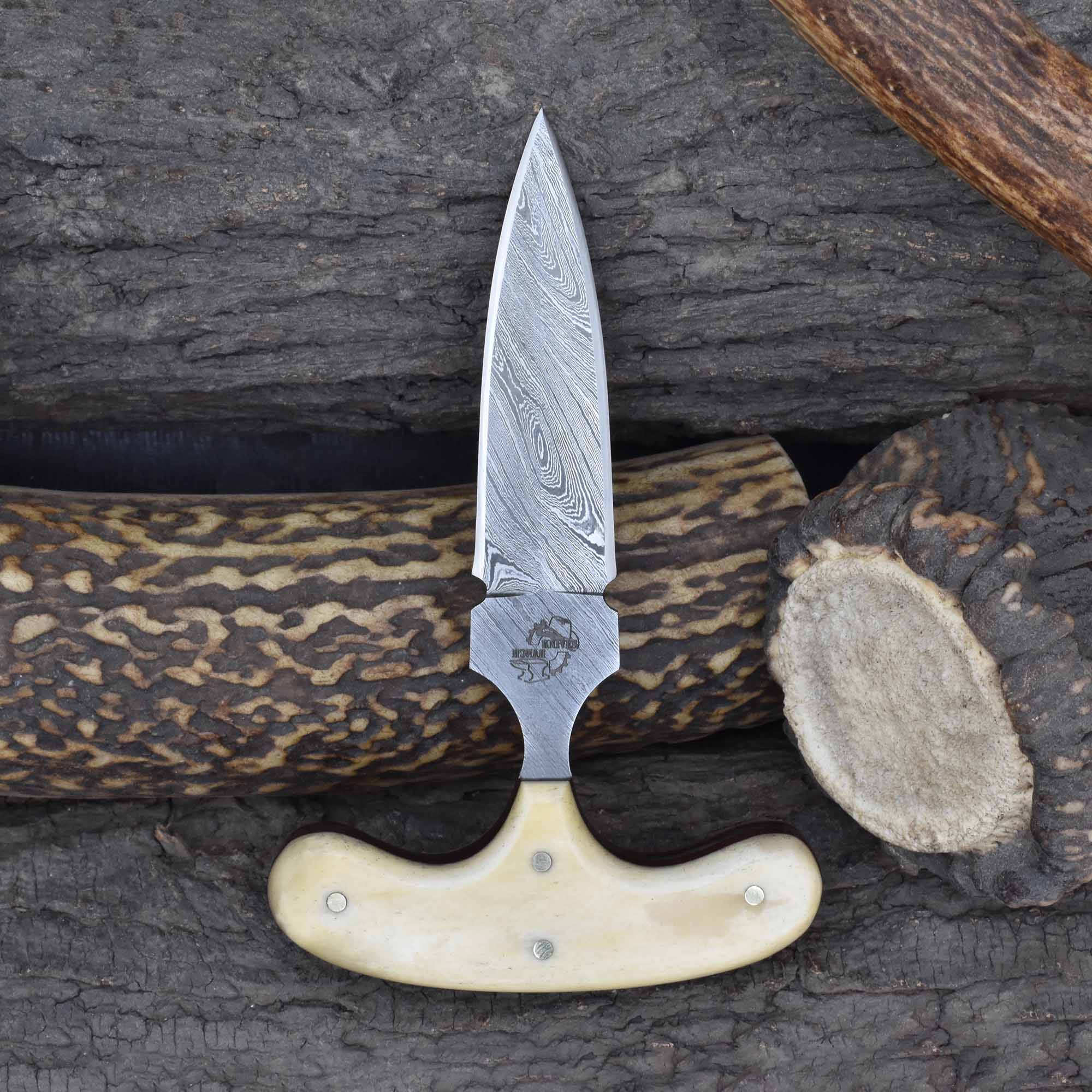 Knives Ranch Damascus Steel Push Dagger with Polished Cattle Bone Handle