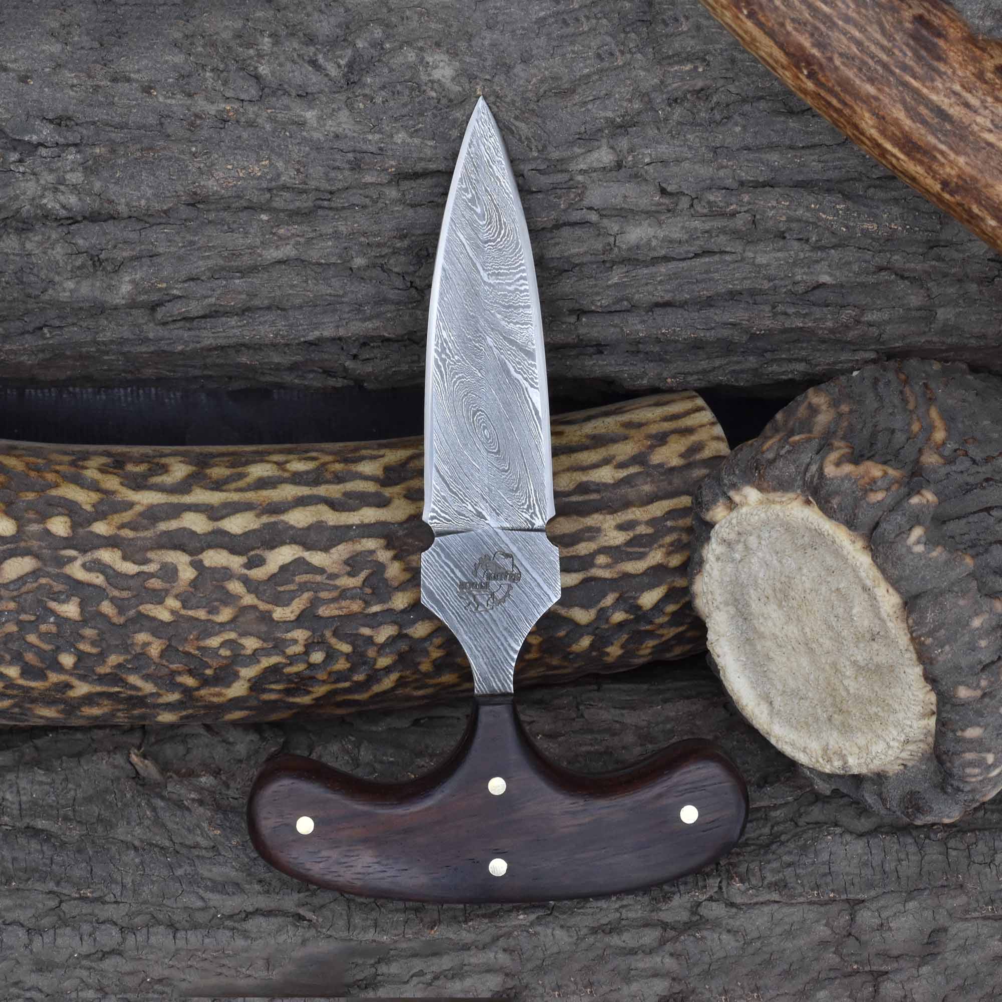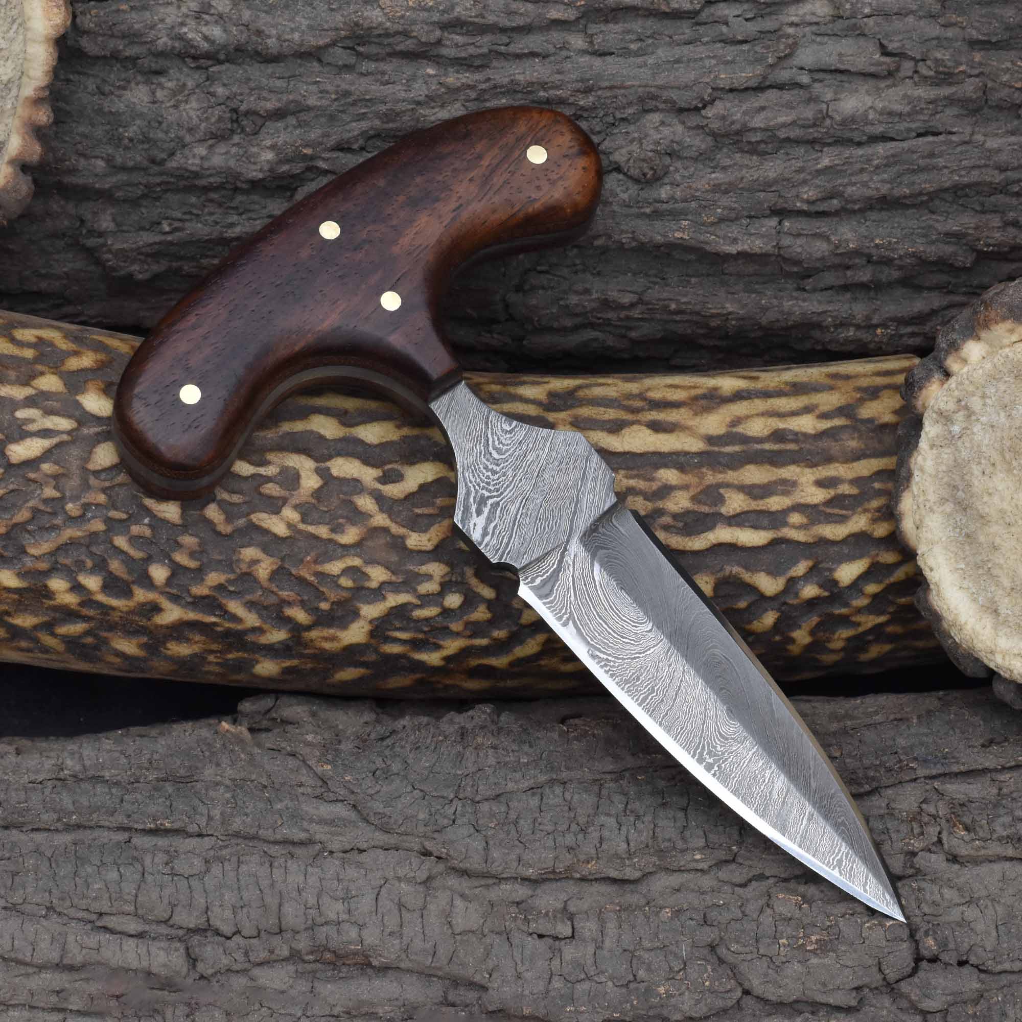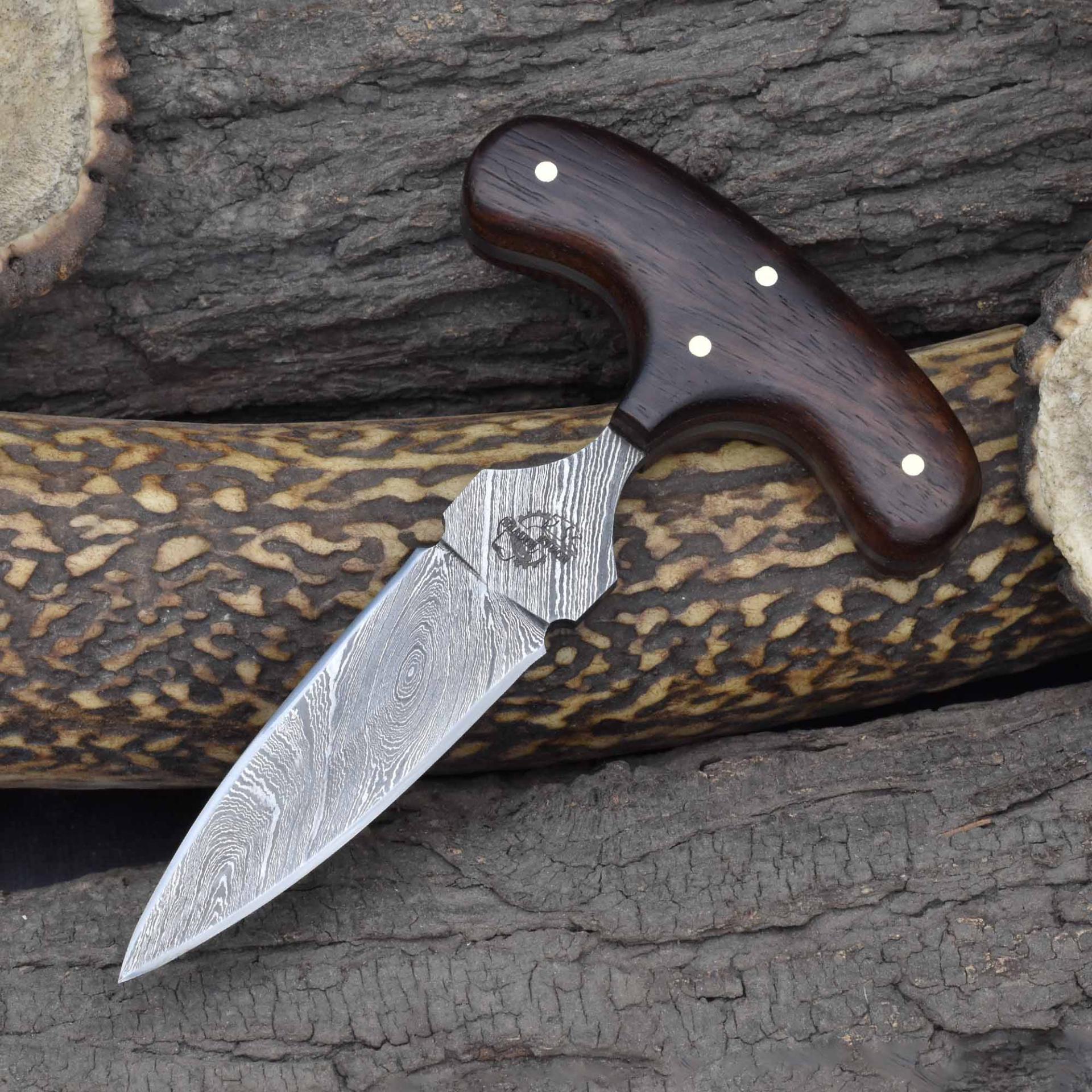 Perfect for self-defense and collectors, this push dagger is a durable fixed blade tactical weapon with Damascus steel, a refined rosewood grip double-edged dagger, and a versatile compact blade for discreet carry and protection.