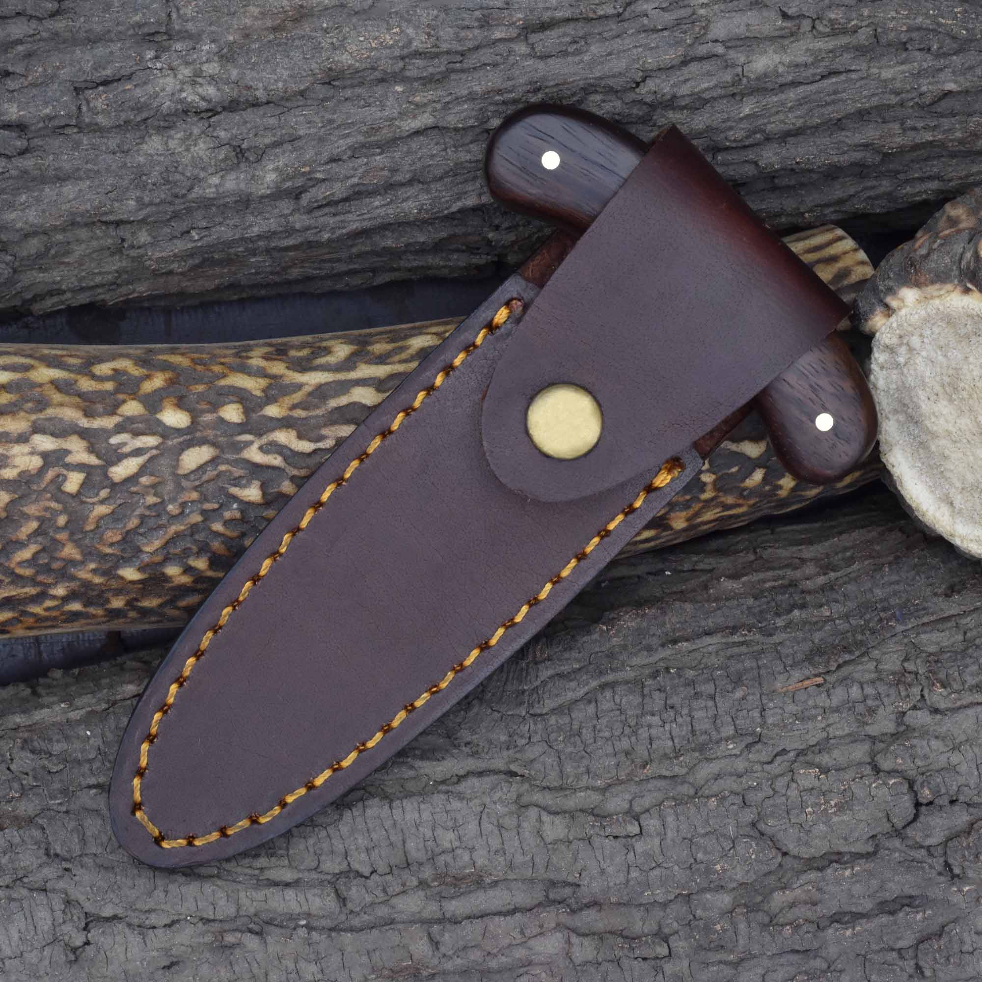 Knives Ranch Compact Damascus Steel Knife with Rosewood Handle