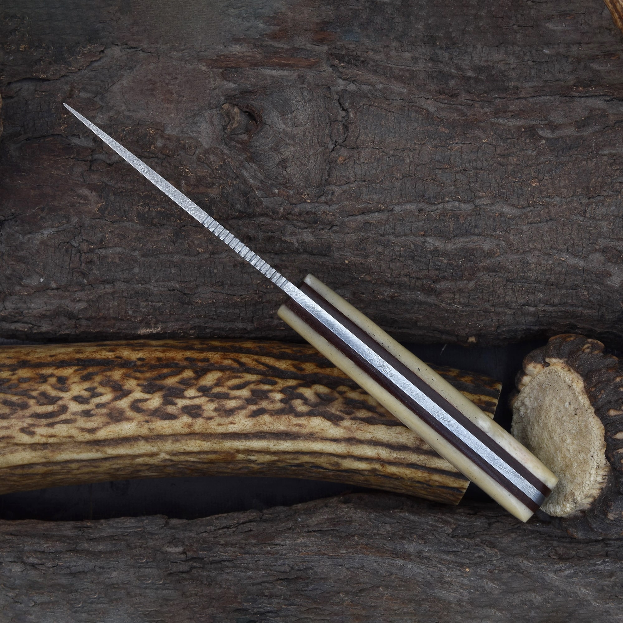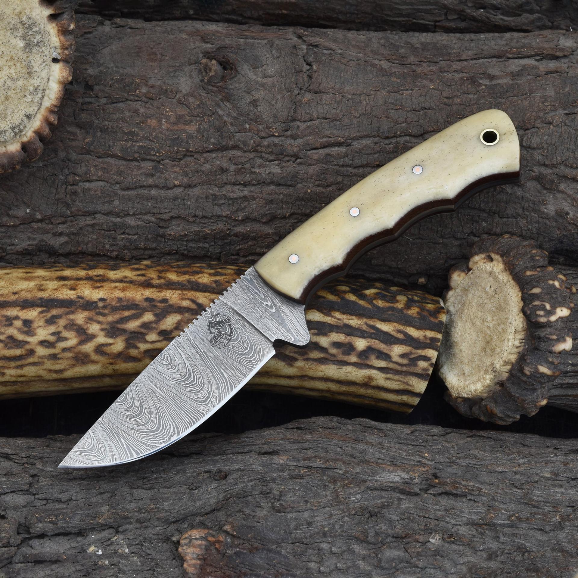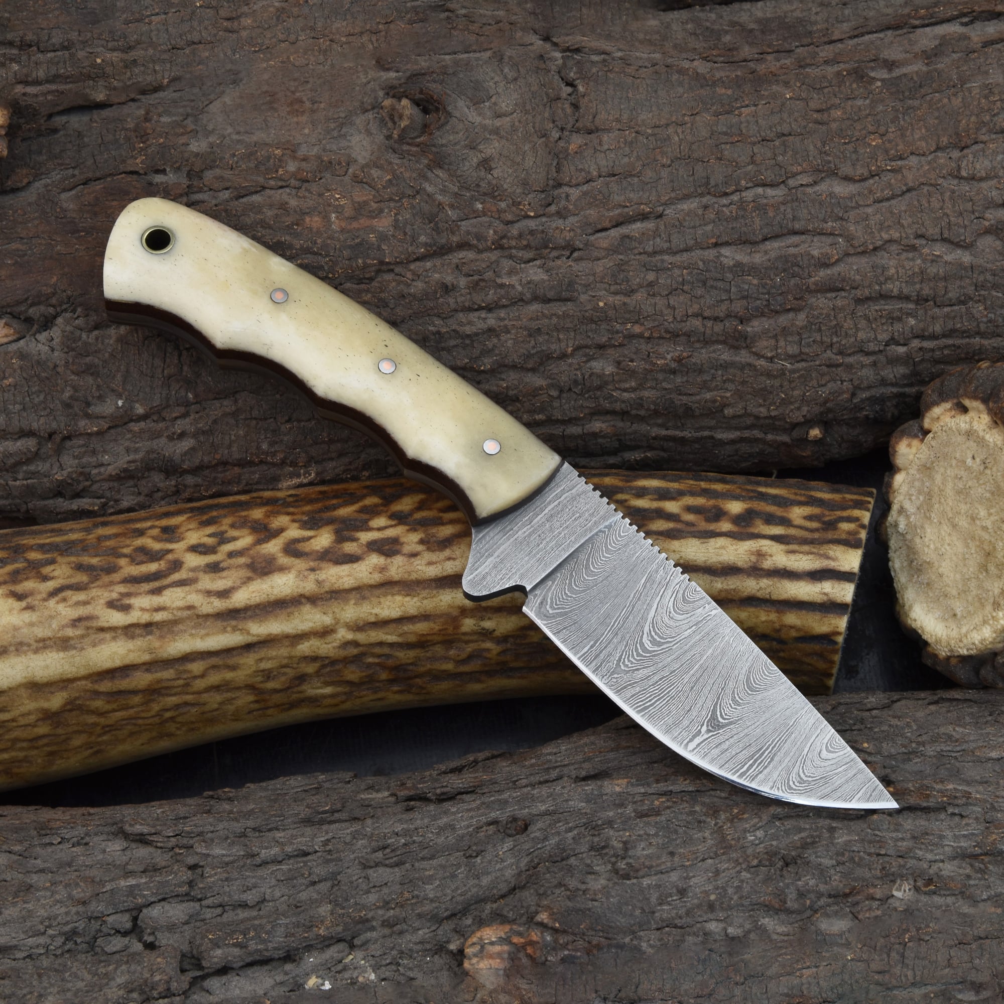Perfect for any kit, this knife serves as a bone-handled fixed blade for skinning, a reliable Damascus outdoor utility knife, and a rugged hunting companion for field dressing tasks.